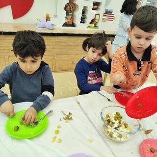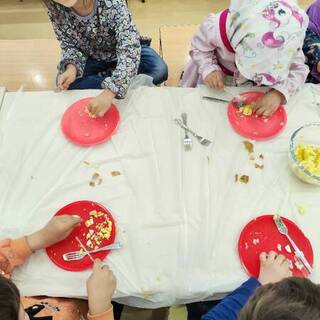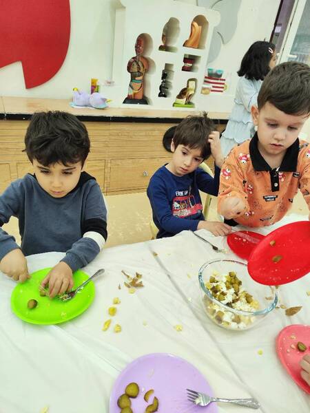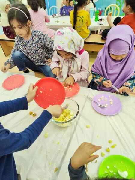 بعد تخممرغ آبپز دادیم بهشون تا با چاقو خردش کنن 🥚