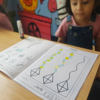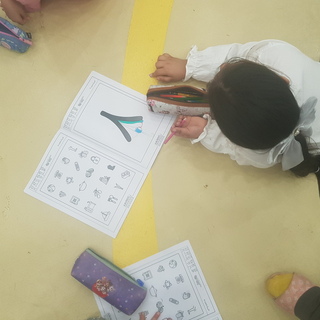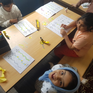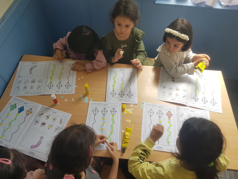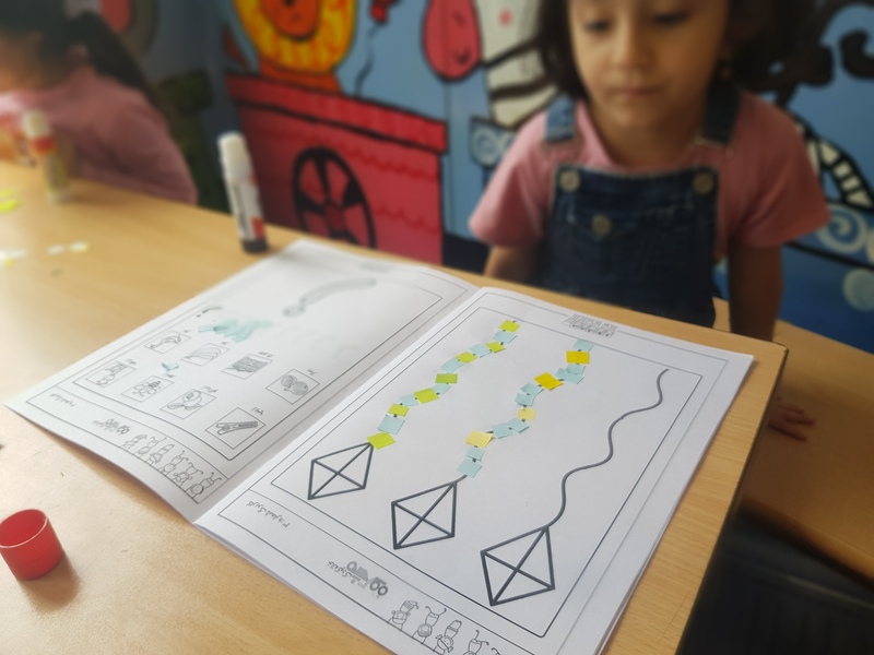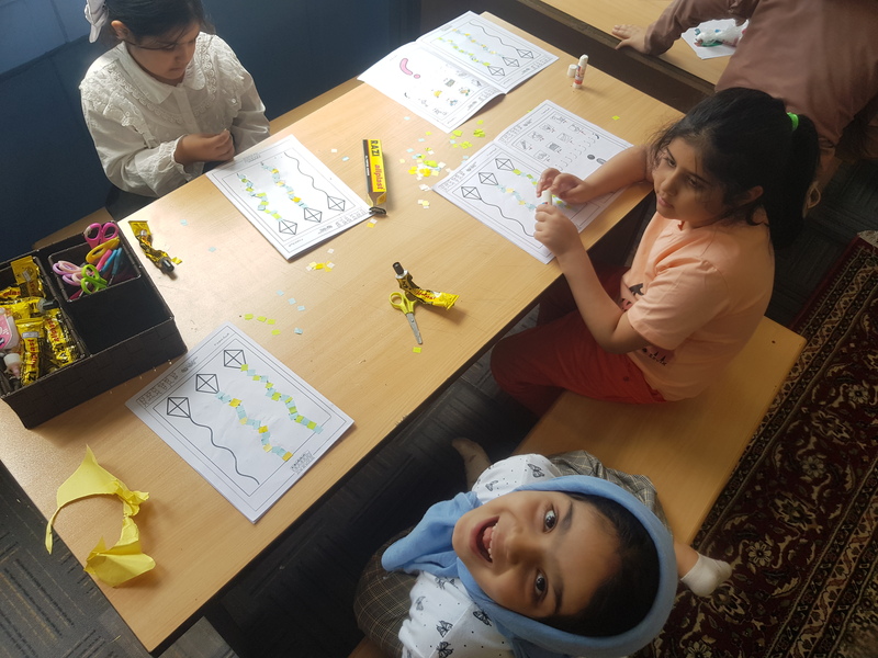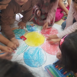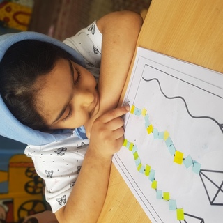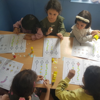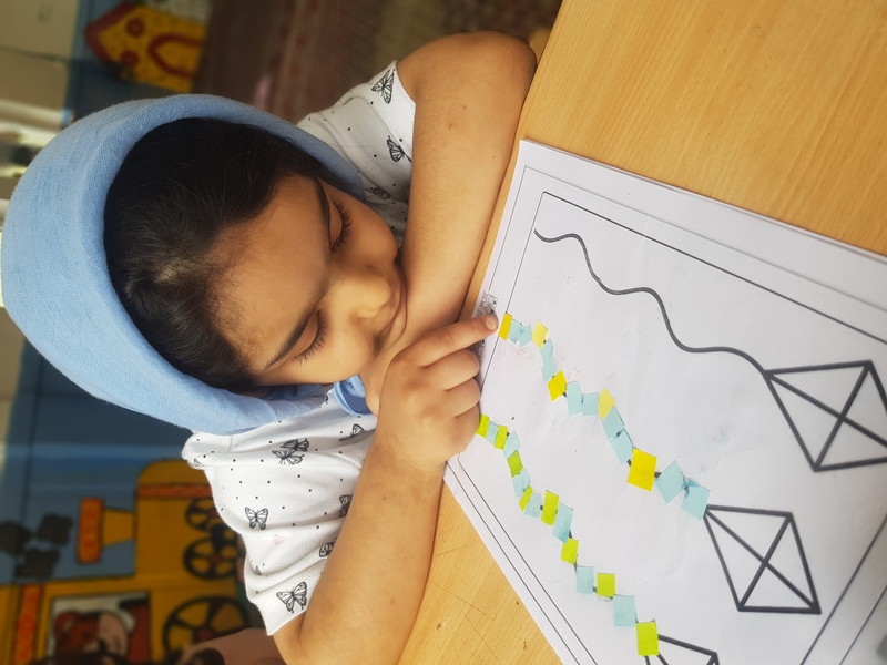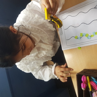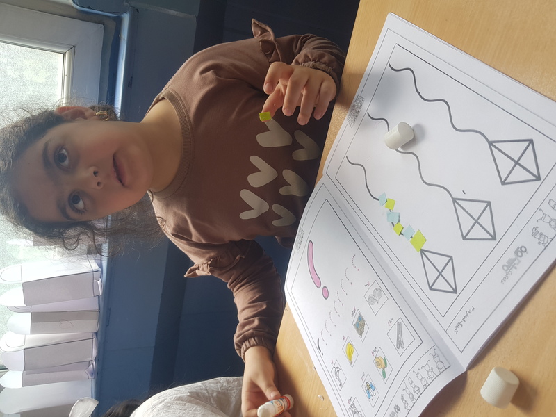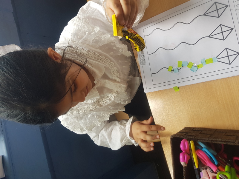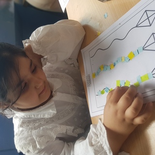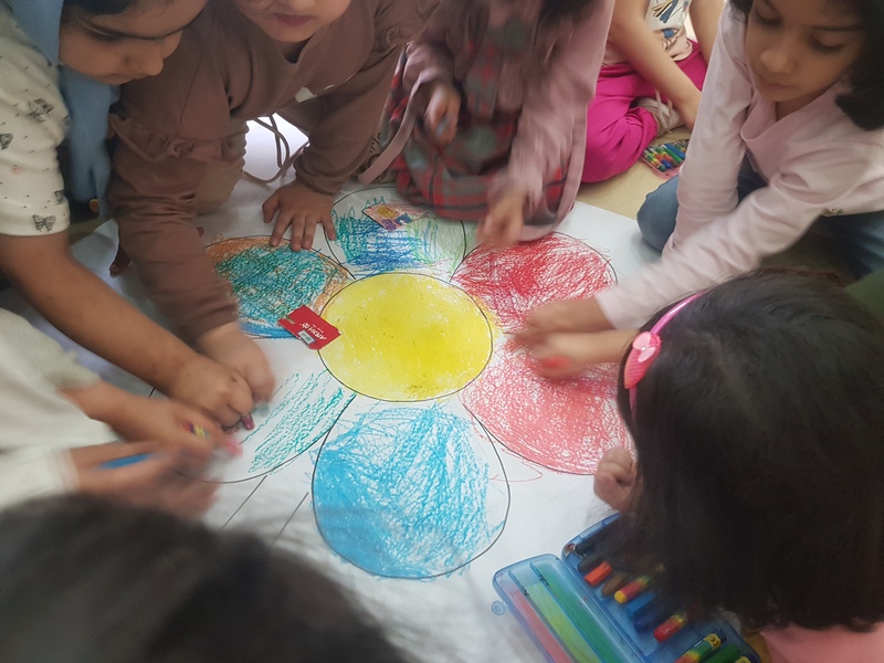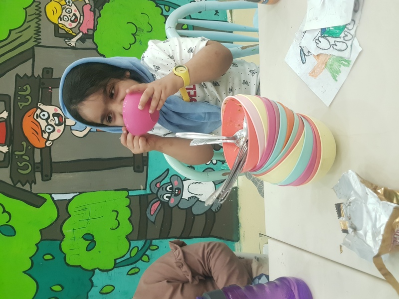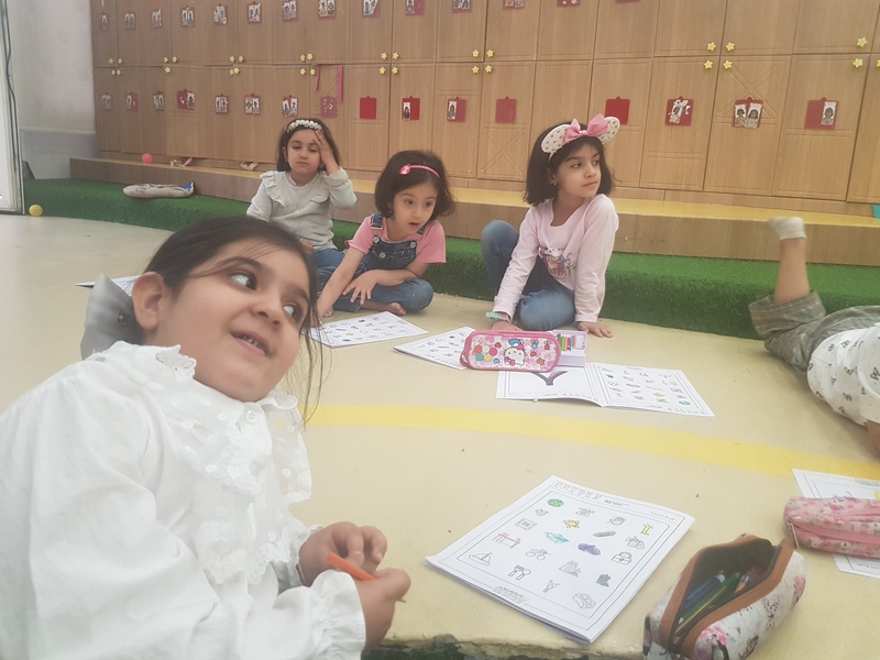 ابتدا با بازی ریتمیک ترتیب و توالی صوتی را تمرین کردیم سپس با استفاده از خرده کاغذ ، کلاژ ترتیب رنگ ها را انجام دادیم.