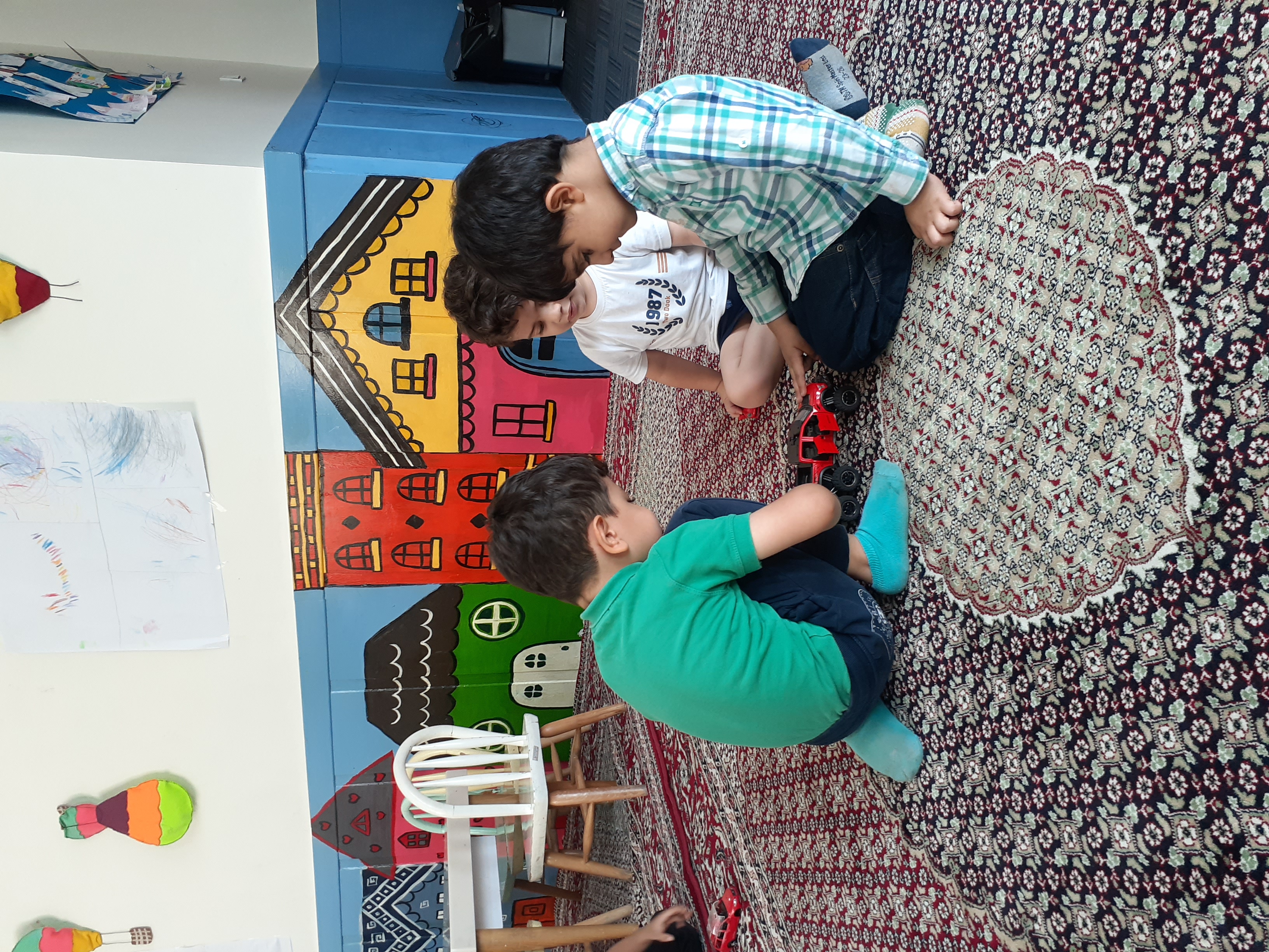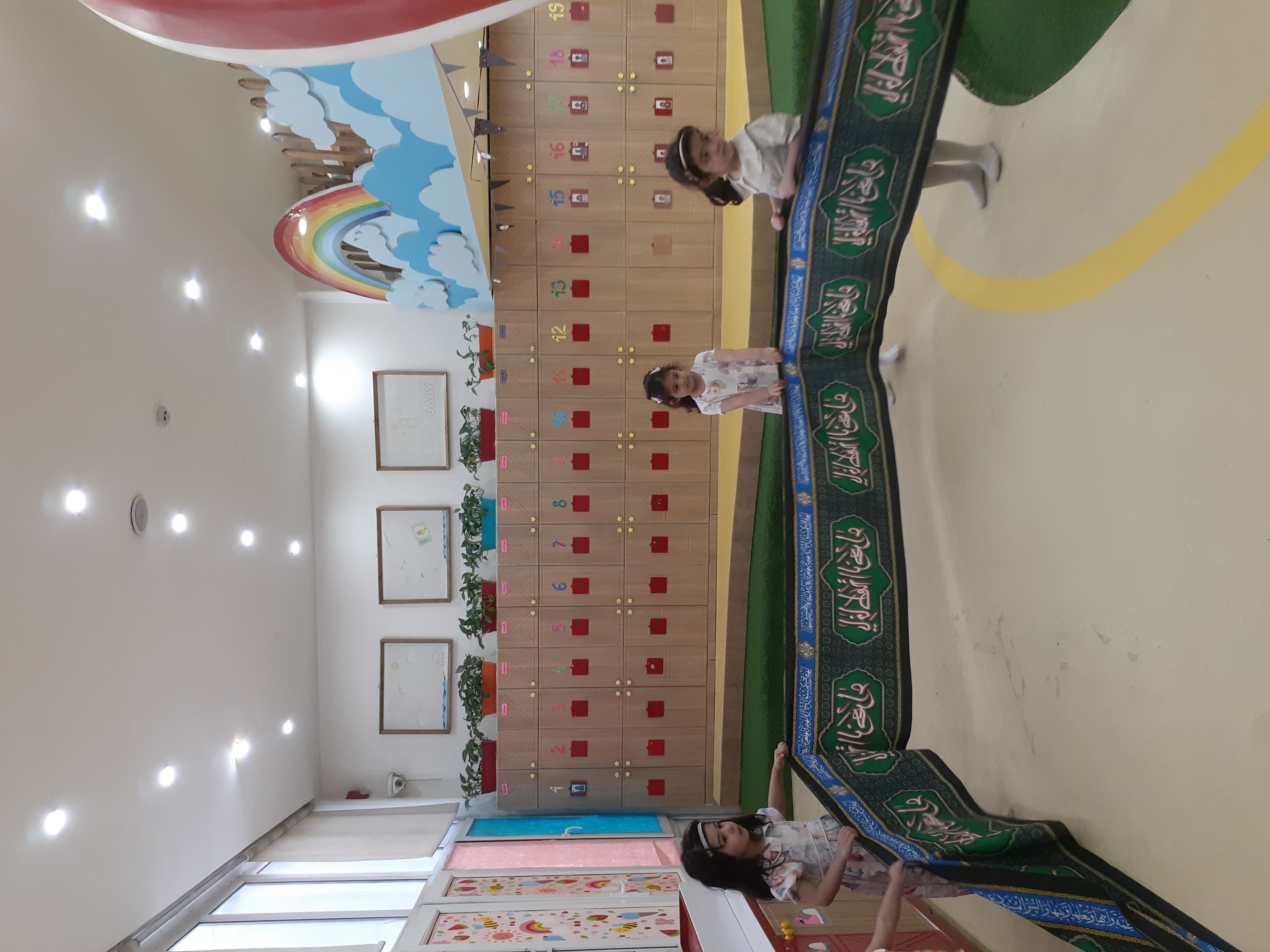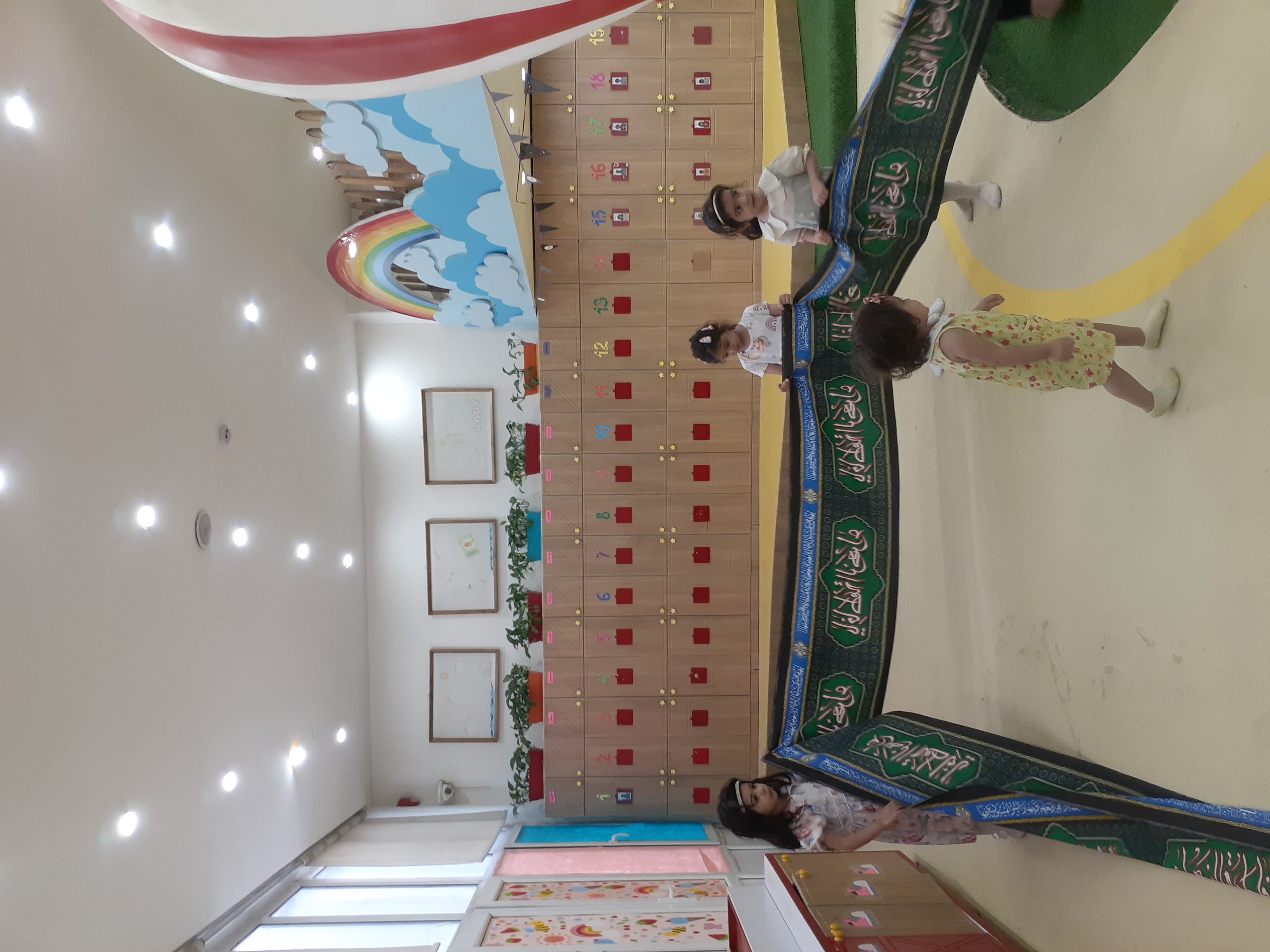 کلاس پرورشی داشتیم ( خاله الهه در مورد تموم شدن ماه محرم و ماه صفر صحبت کردند و با کمک بچه ها سیاهی امام حسین علیه السلام رو که به دیوارهای خانه کودک زده بودند رو برداشتند.)