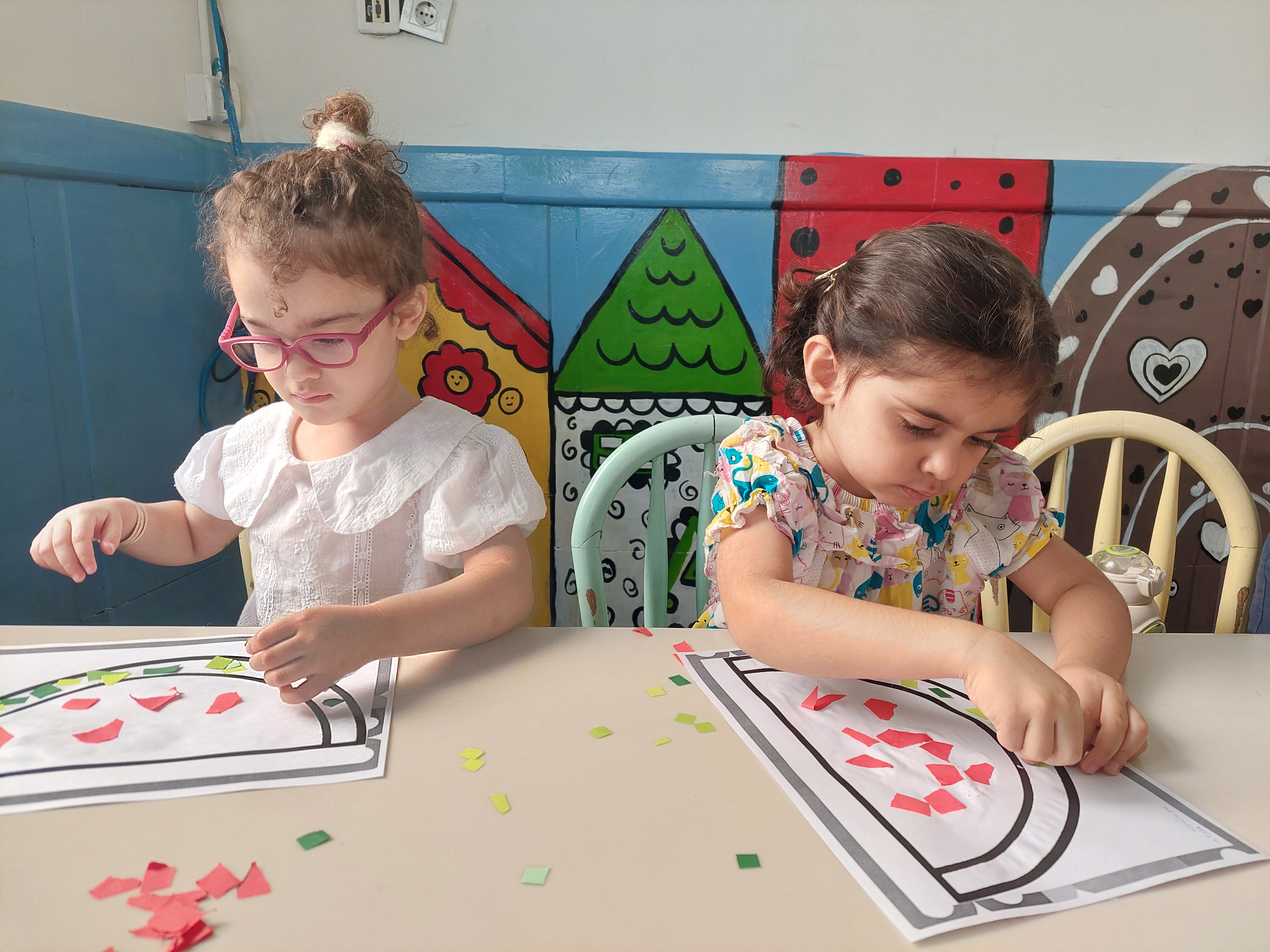 بعد اومدیم کلاس ابتدا با لگوها بازی کردیم سپس رفتیم سراغ فعالیت کلاژمون که کلاژ هندوانه بود🍉