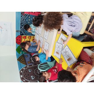 بعد رفتیم کلاس مهندسان کوچک و درمورد اشکال هندسی صحبت شد و کاربرگ مربوطه انجام شد🔺🟪🔵