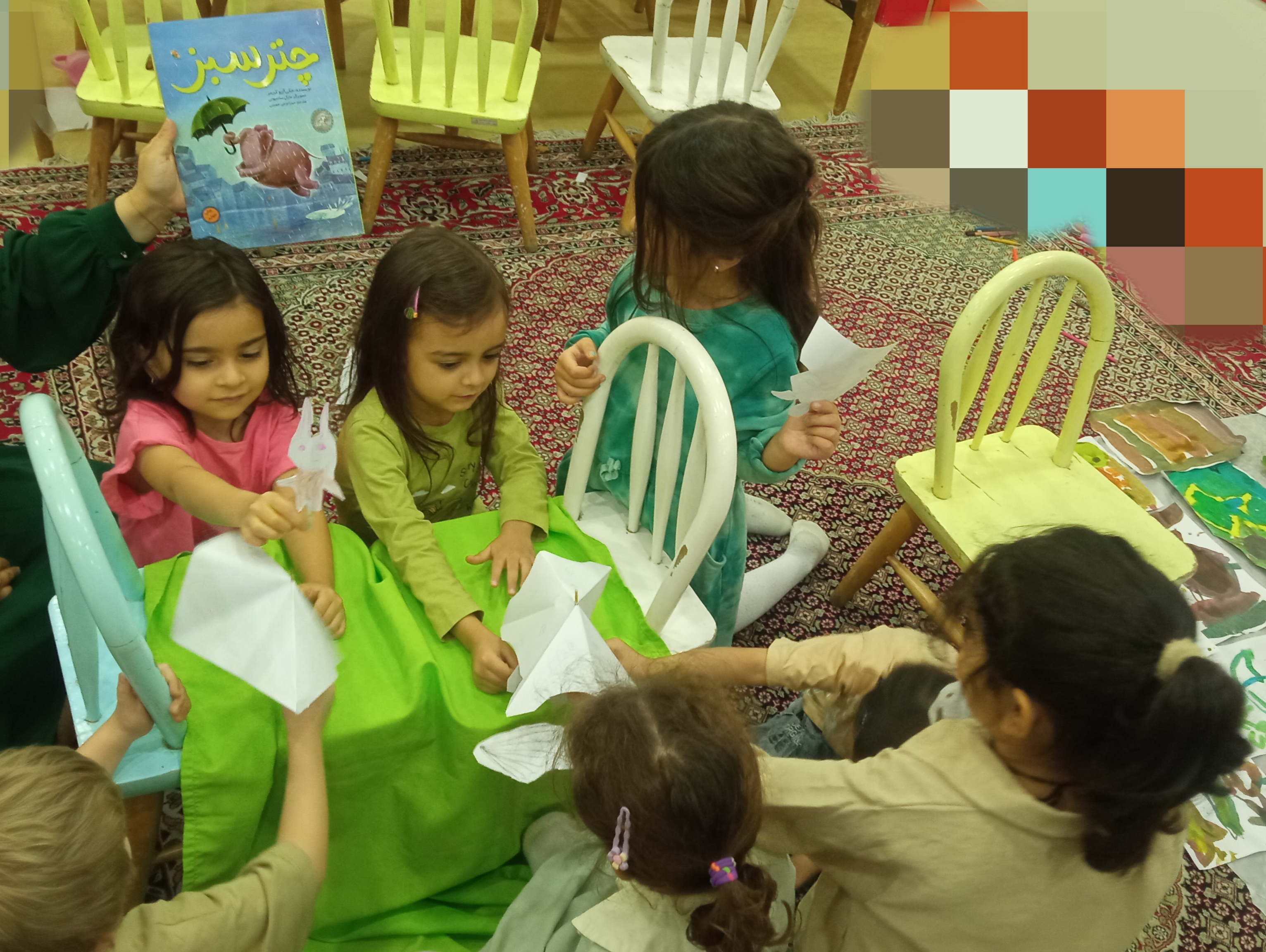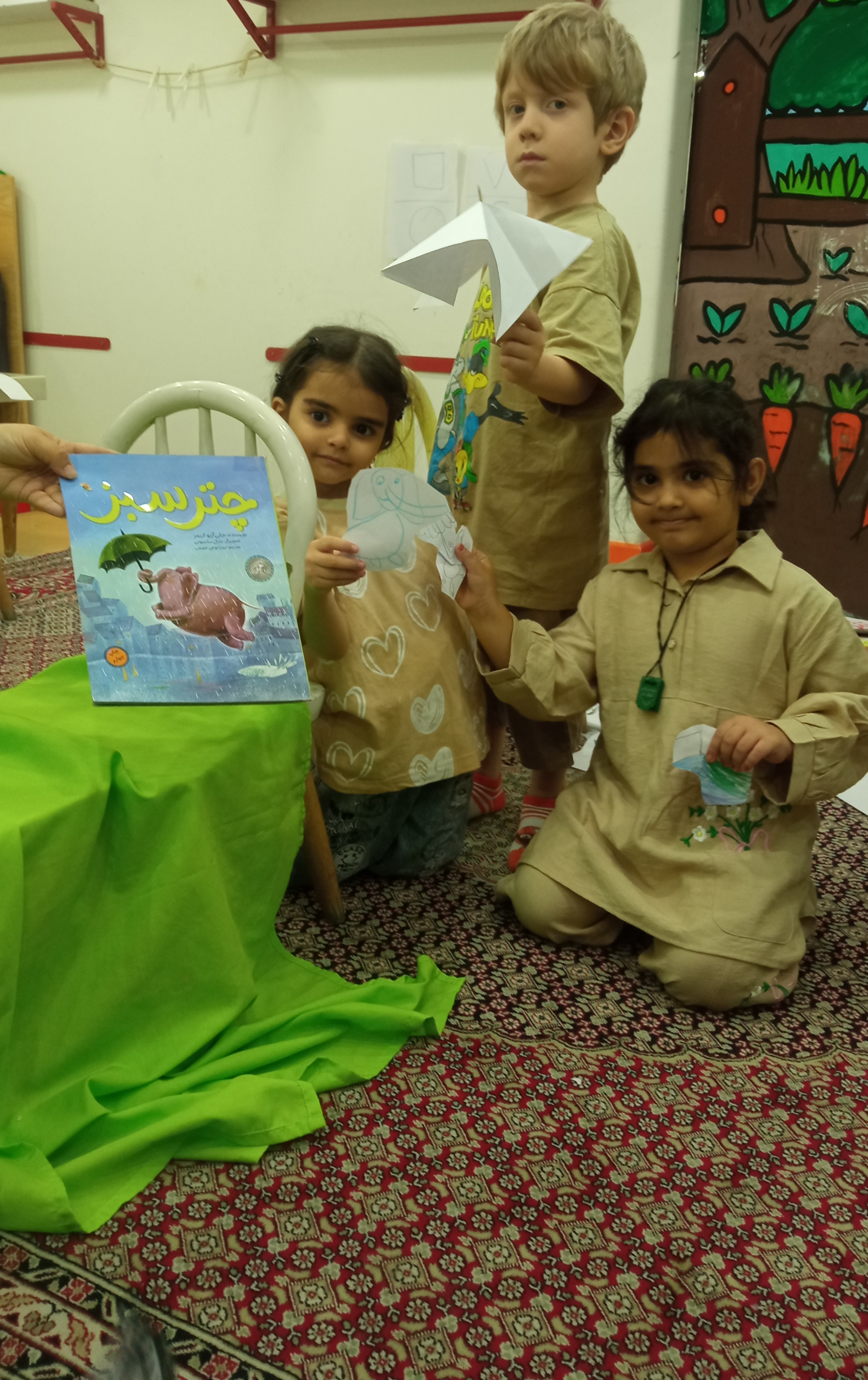 بعد از اینکه قصه چتر سبز رو شنیدن رفتن که با مربی کاردستیش رو بسازن و یه نمایش بامزه با مربیشون انجام بدند😃😁