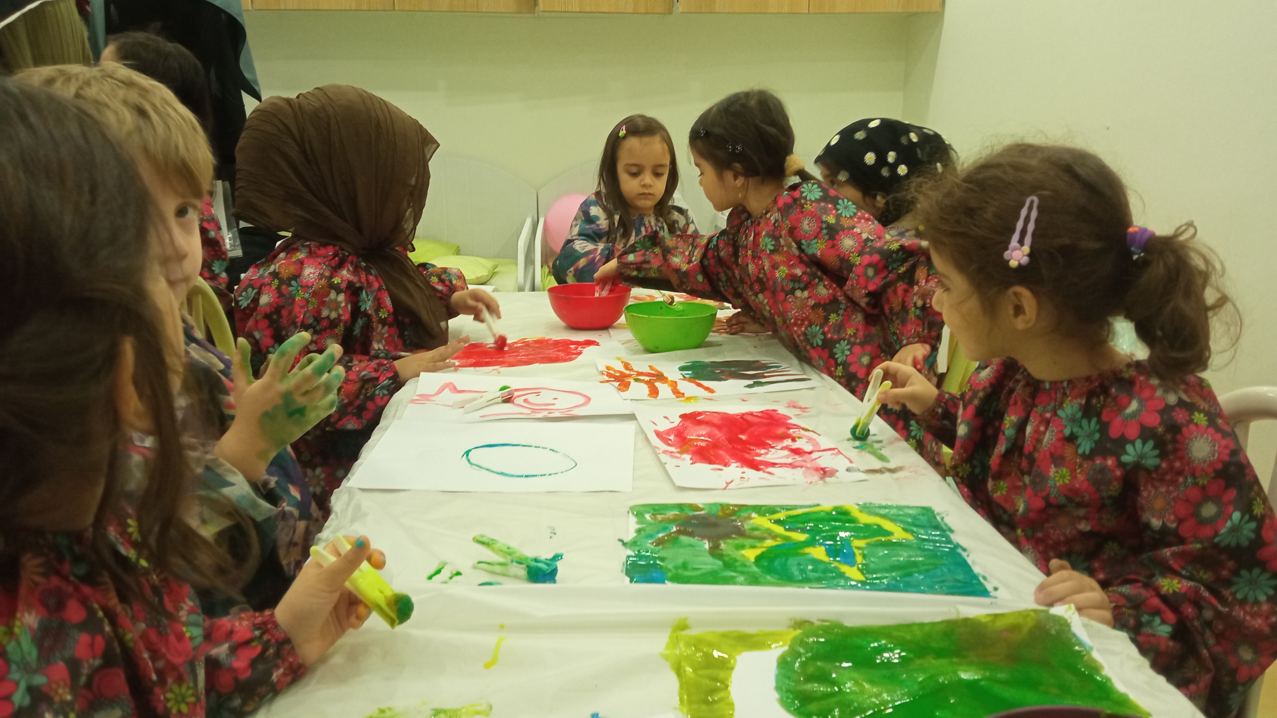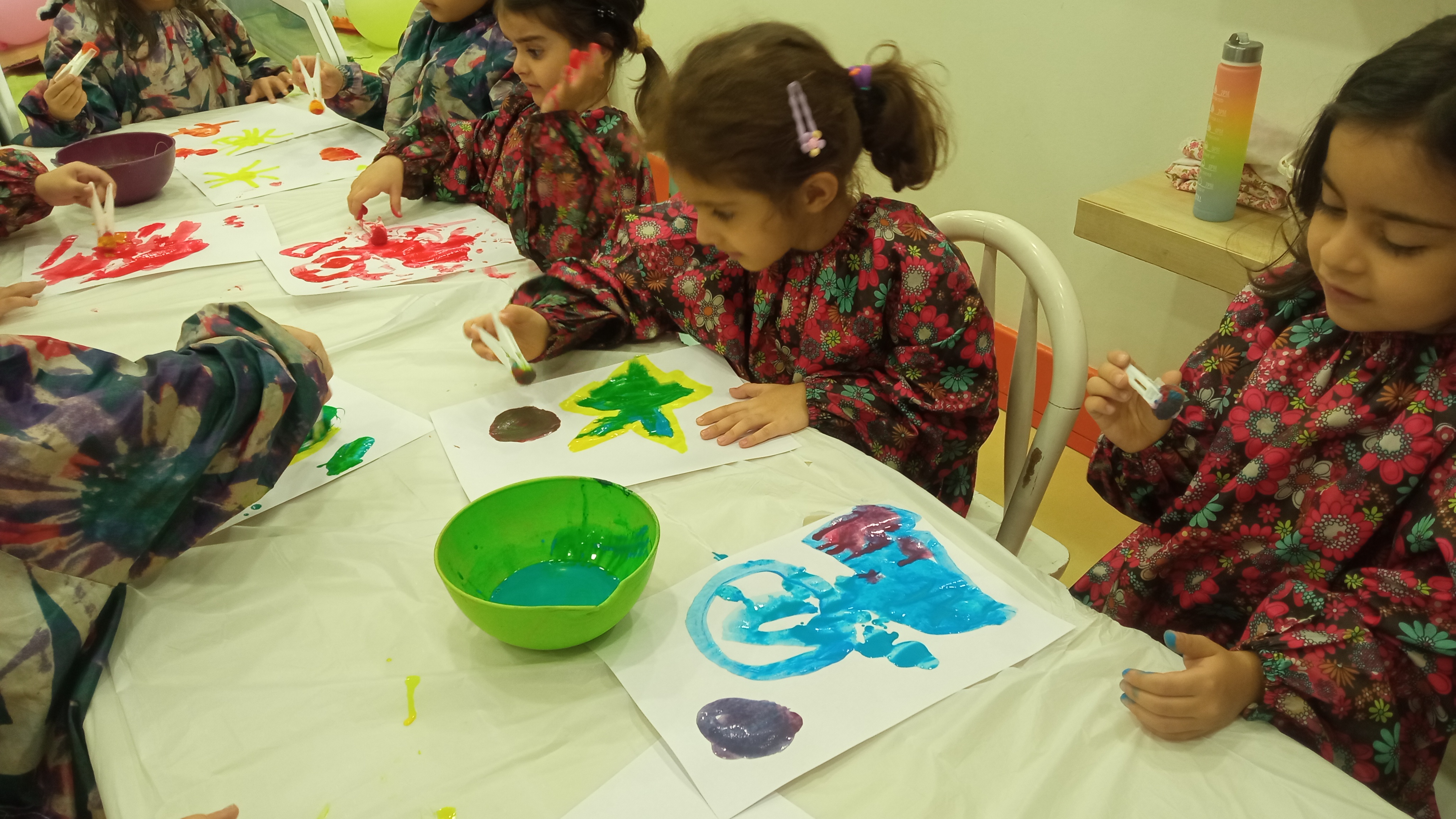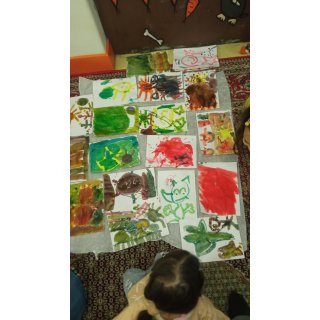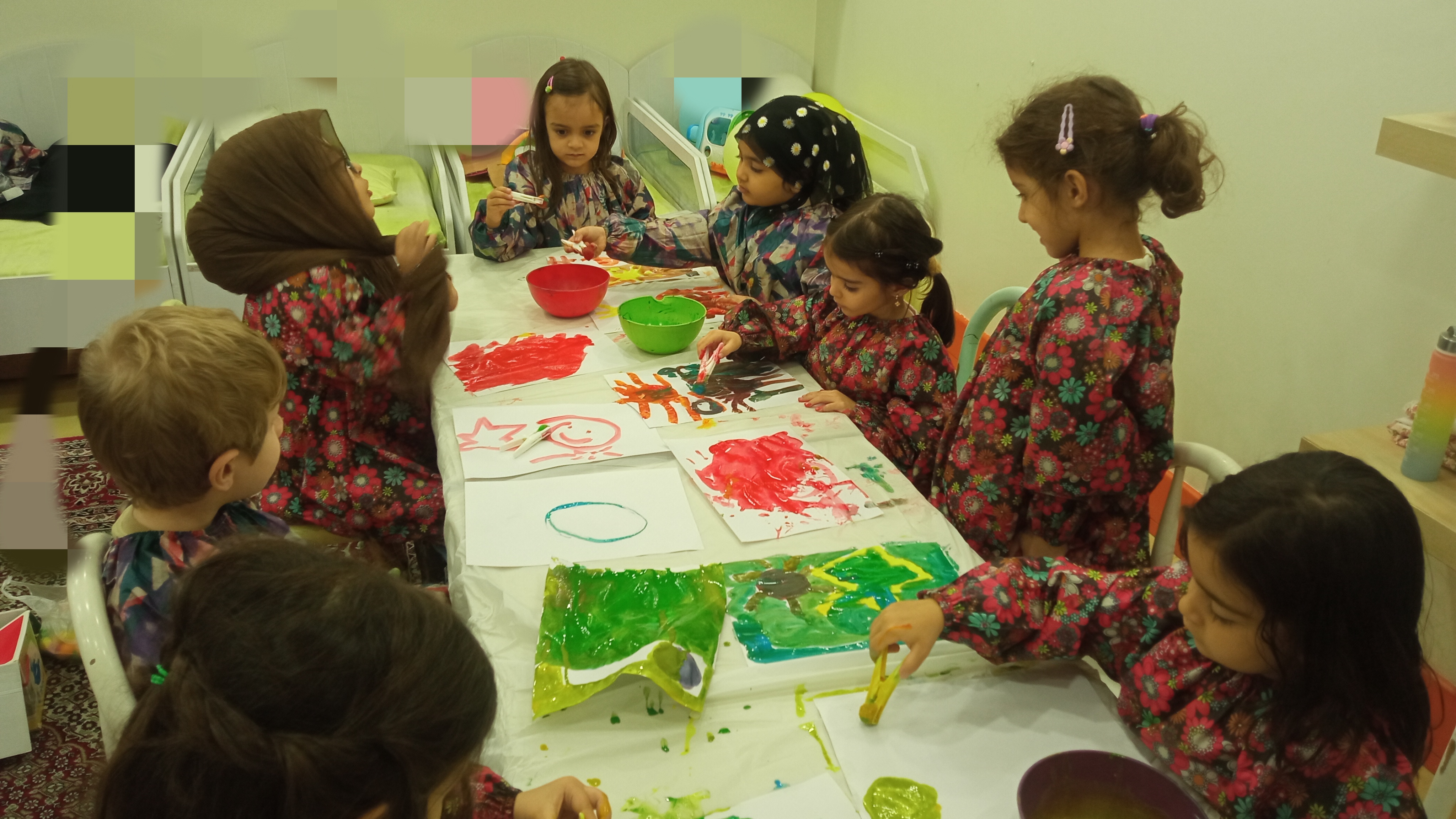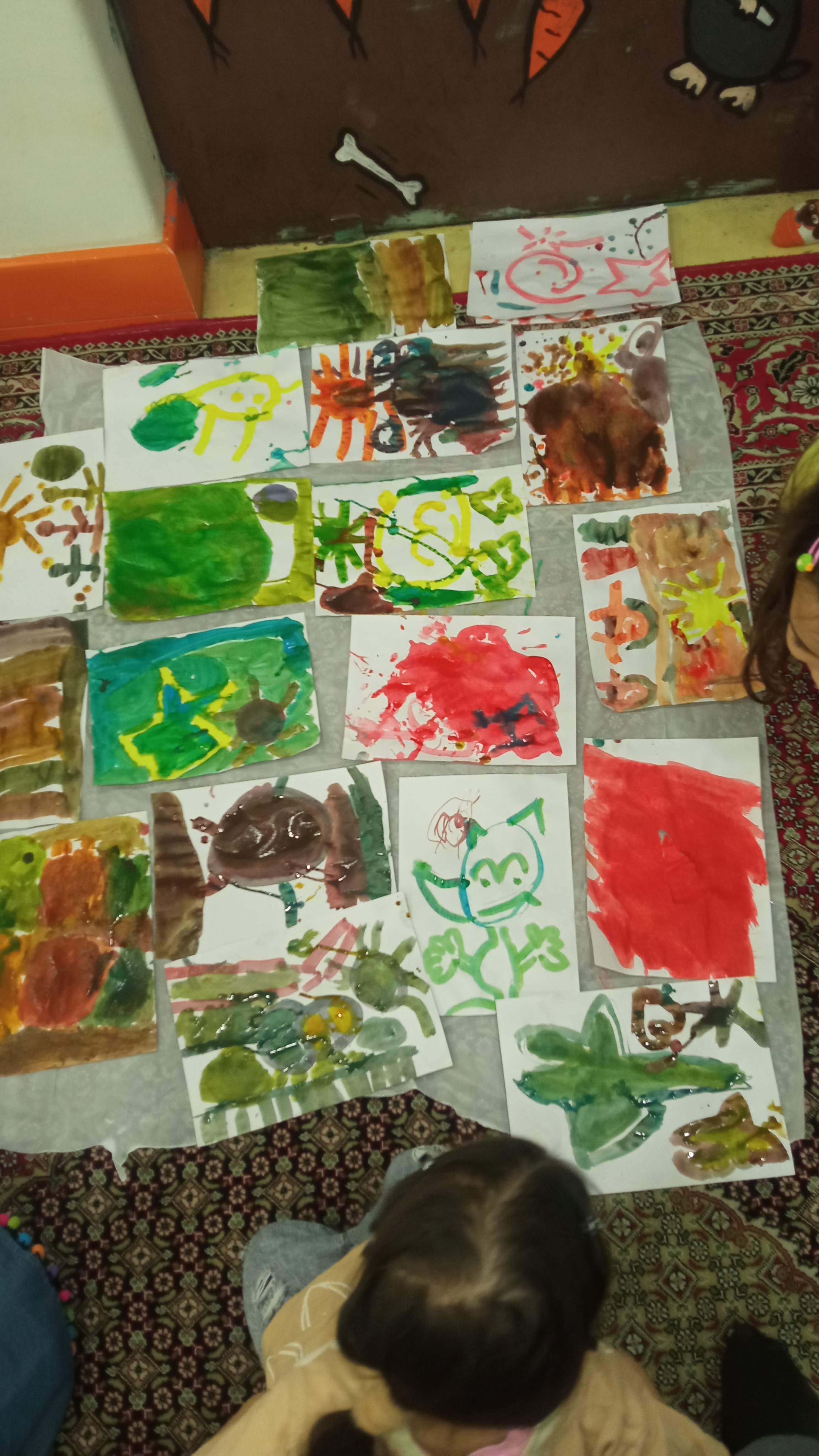 بچه ها بعد از خوردن صبحانه و یه صبحگاه شاد رفتن رنگ بازی و شاهکار خلق کردند😍😍