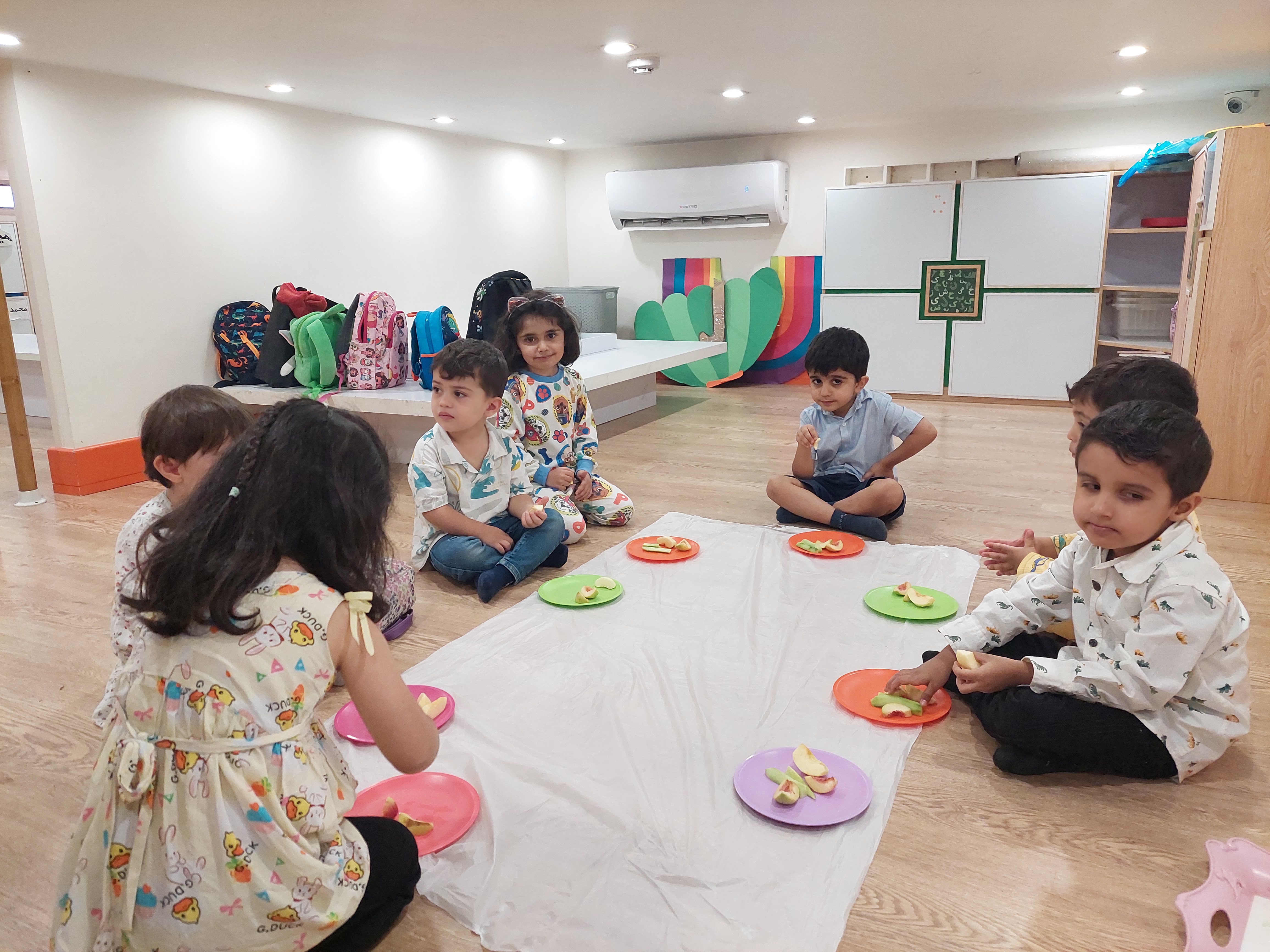 لاله هامون دیگه خسته شده بودند که باید کمی انرژی میگرفتن، پس رفتیم میان وعده که میوه بود میل کردیم🍑🍎🥒