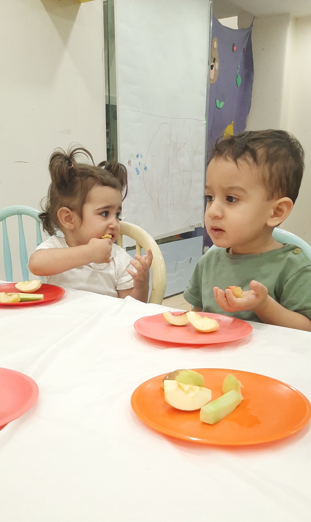 حالا میان وعده های خوشمزمون میوه های خوشمزه سیب و خیار و .. رو نوش جان میکنیم تا قوت به تنمون برگرده🥒🍎🍏