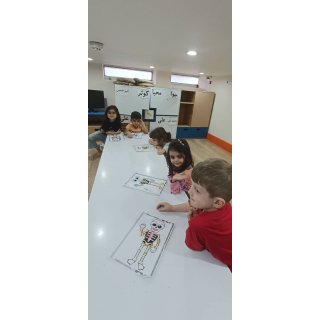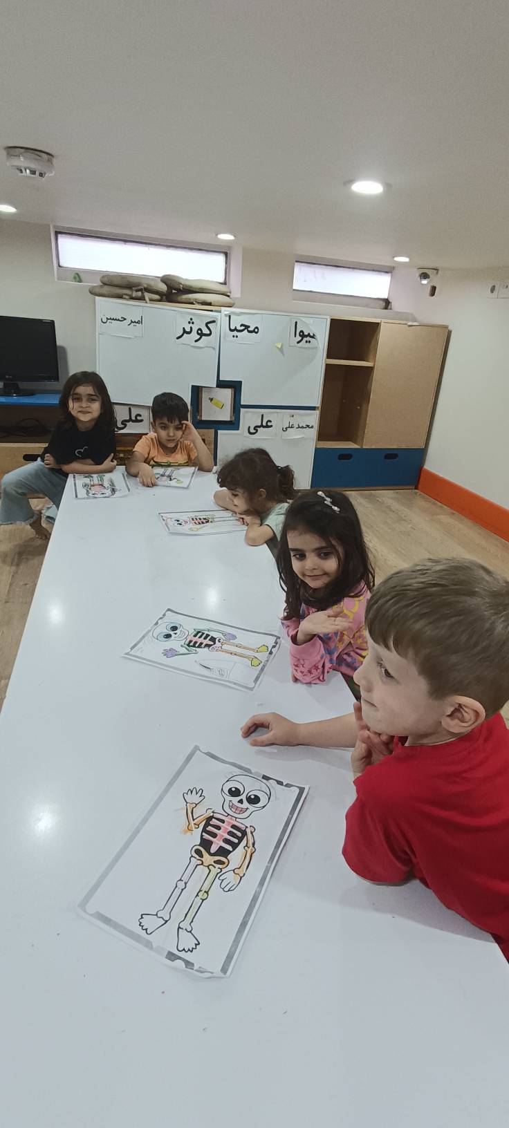 بچه ها اول یه ویدیو در رابطه با استخوان ها دیدند و با اونها آشنا شدند و بعد رفتیم که کاردستی مربوط به استخوان هارو درست کنیم😍