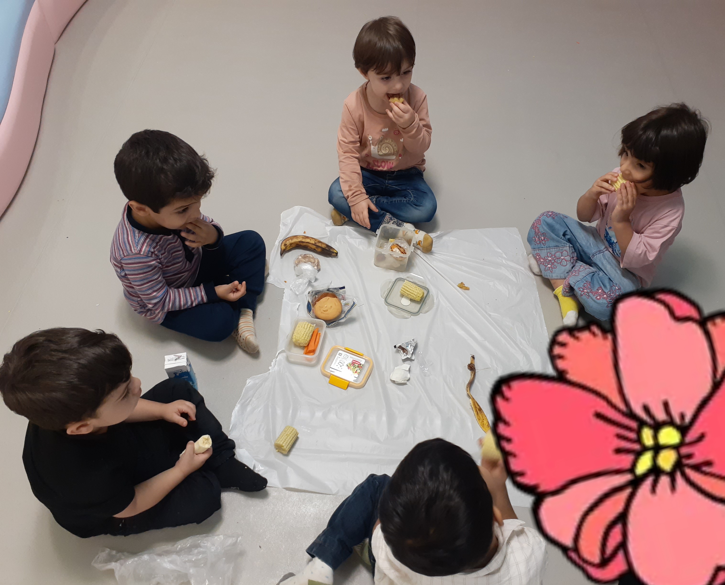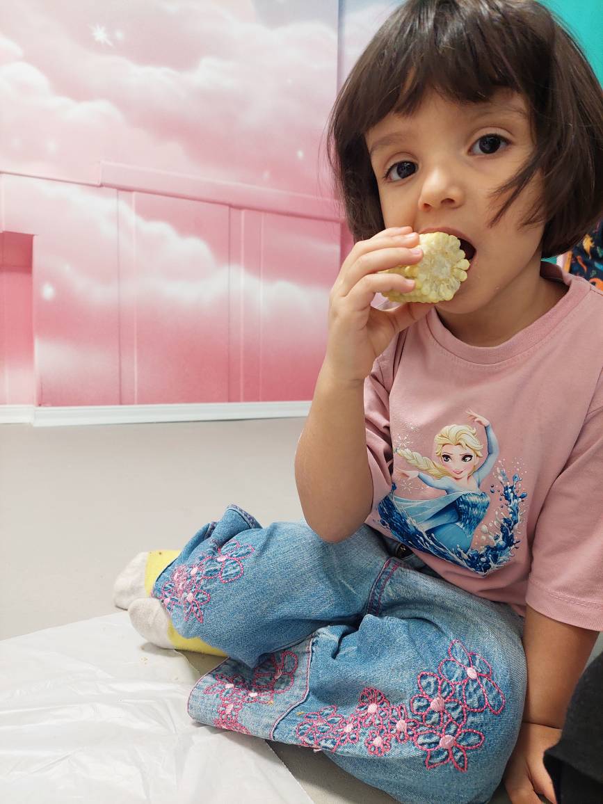 بعد از شستن دست ها مون به سراغ میان وعده های خوشمزه مون رفتیم.🌽🌽😋