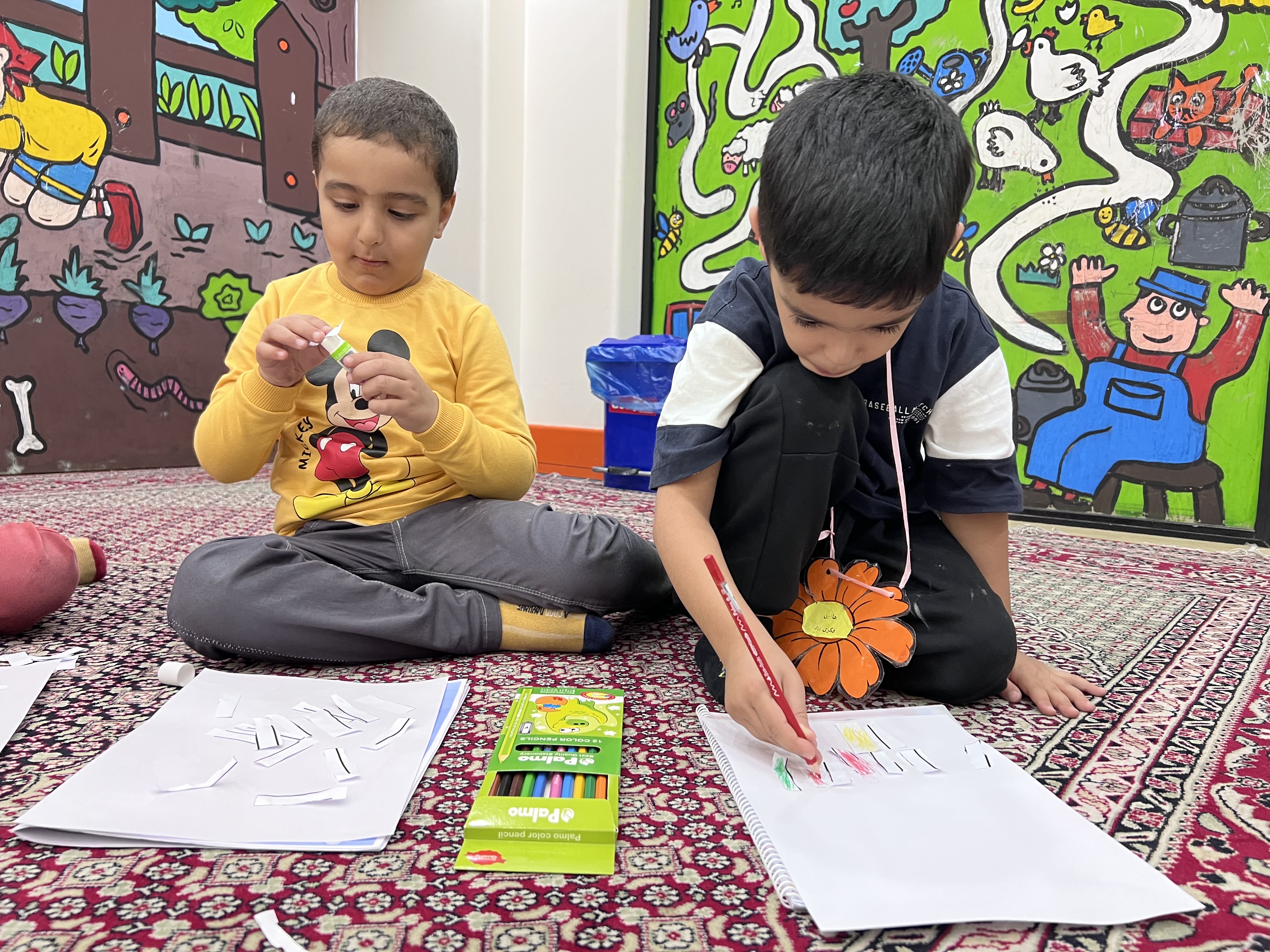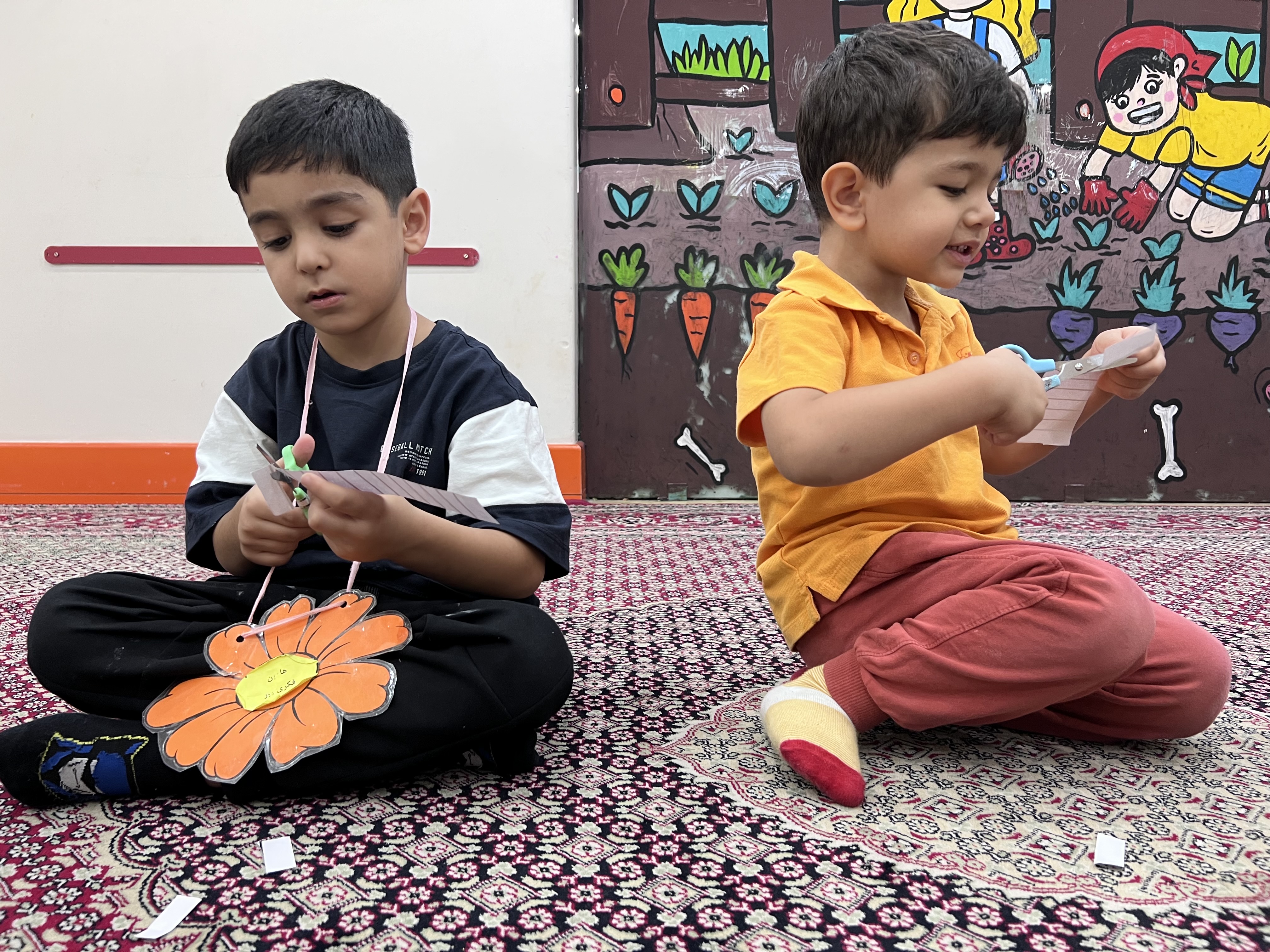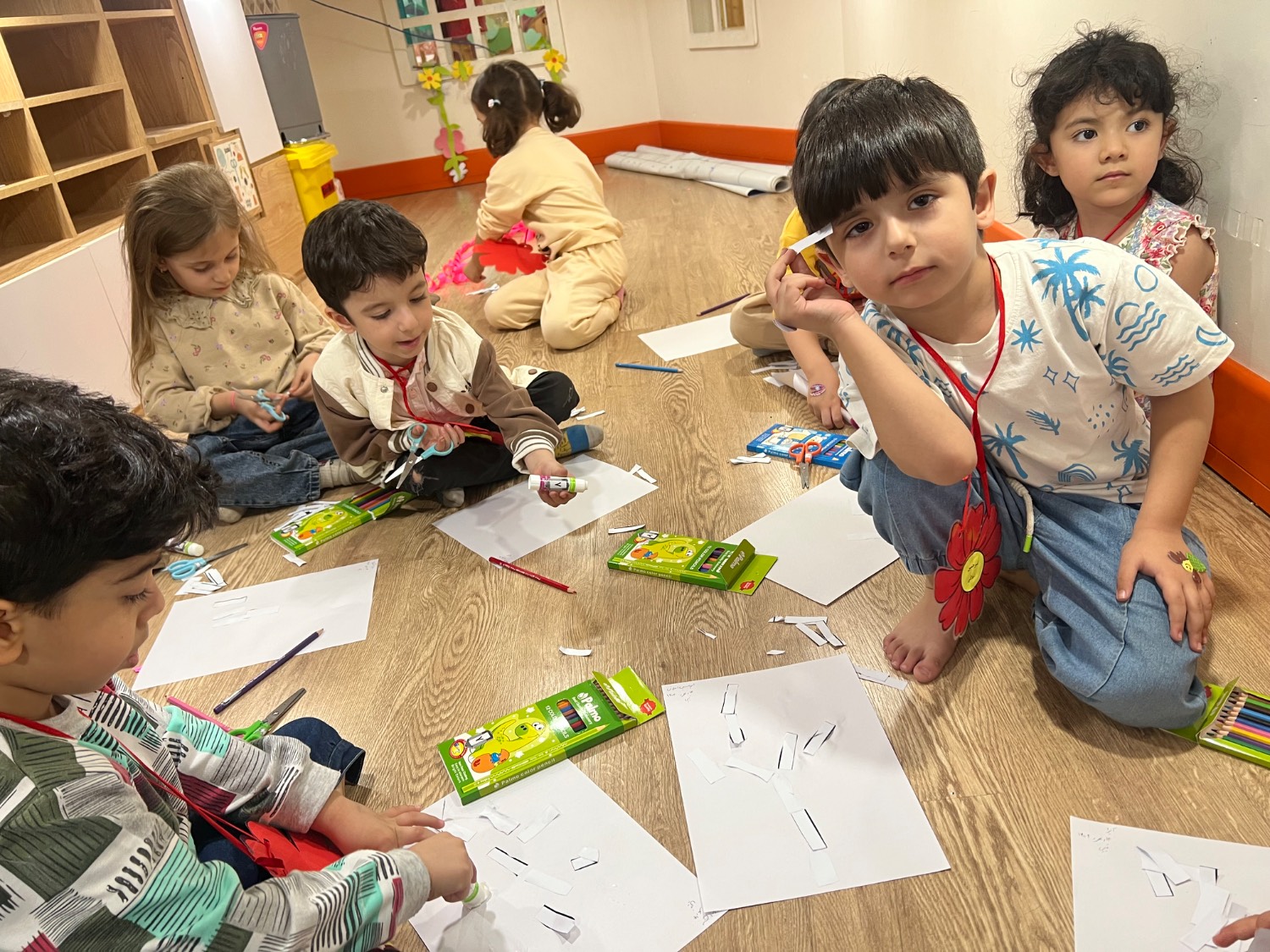 ایستگاه دوم قیچی و دست ورزی بود که دخترا و پسرای مشکوتی با کلی انرژی و حال خوب رفتن به سراغش اول برش خط صاف رفتیم و کلاژش کردیم بعدم کوشانامه دست ورزی رو باهم انجام دادیم✂️✏️