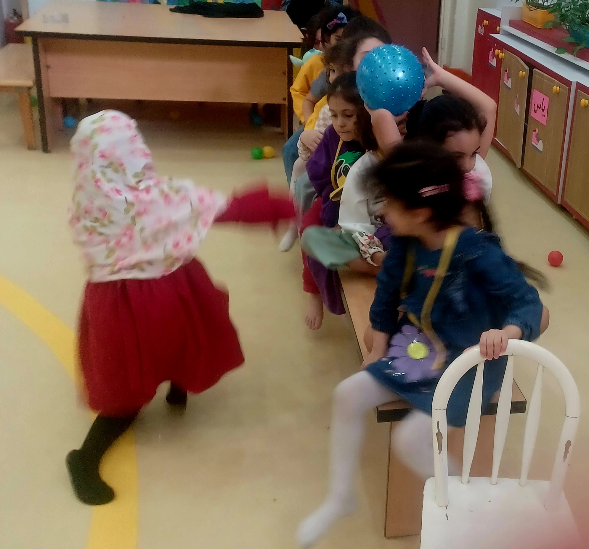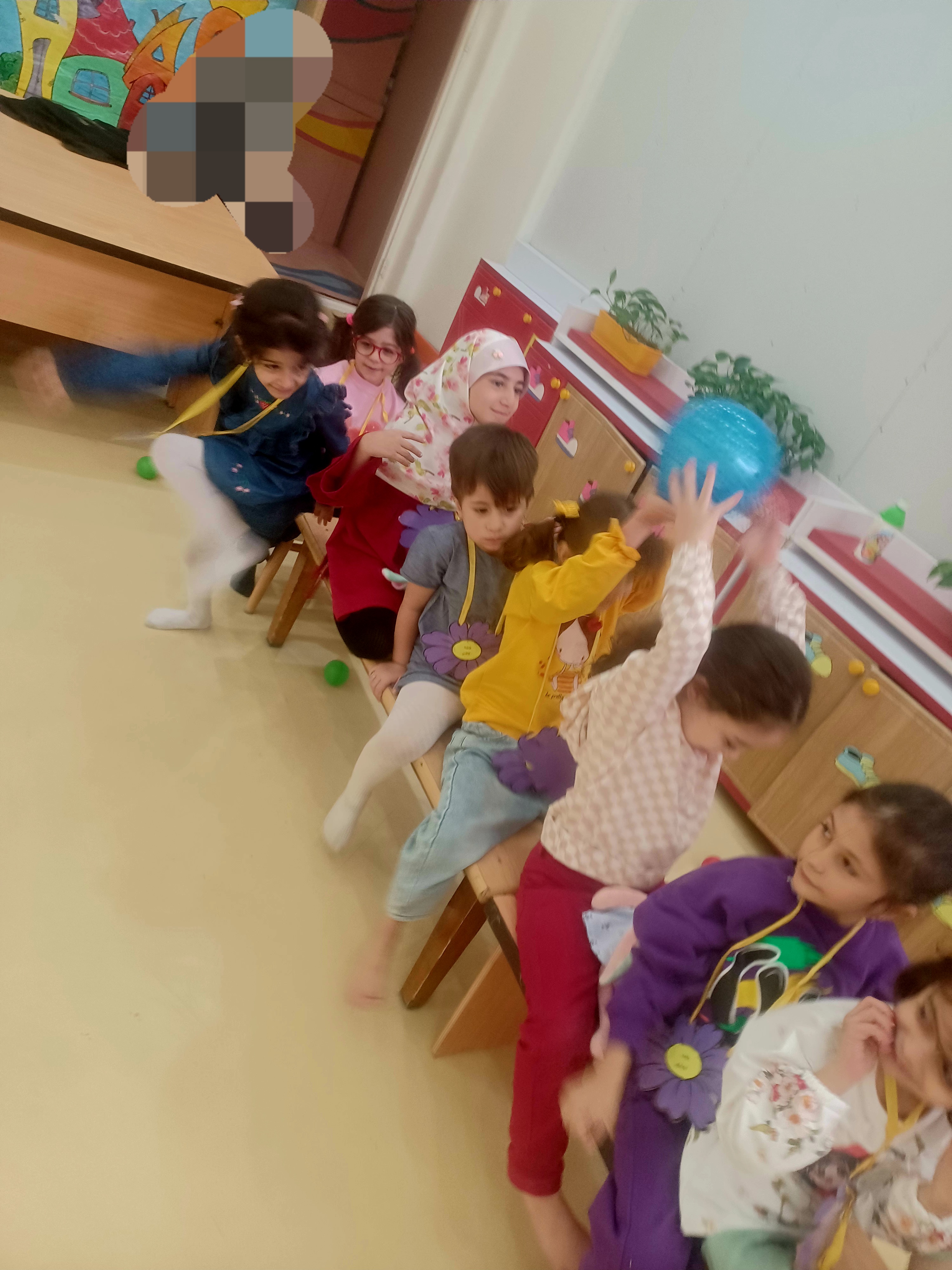 👈بازی خلاق: بازی توپ و صندلی بچهها به صورت دا یره وار مینشینند روبرو ی هم یکی از صندل ی ها به صورت برعکس گذاشته م ی شودو یه بچه رو ی آن مینشیند باز ی اینطور آغاز م ی شود که بچهها ی دی گر توپ را دست به دست م ی کنندتا به ابتدا برسد و آن بچه از پشت صندل ی ها همزمان با دست به دست شدن توپ م ی دود هر کدام زودتر به صندل ی برسد برنده است یا بچه ها بصورت پشت سر هم مینشینند و توپ را بین خودشان بصورت توضیحات ذکر شده رد و بدل میکنند