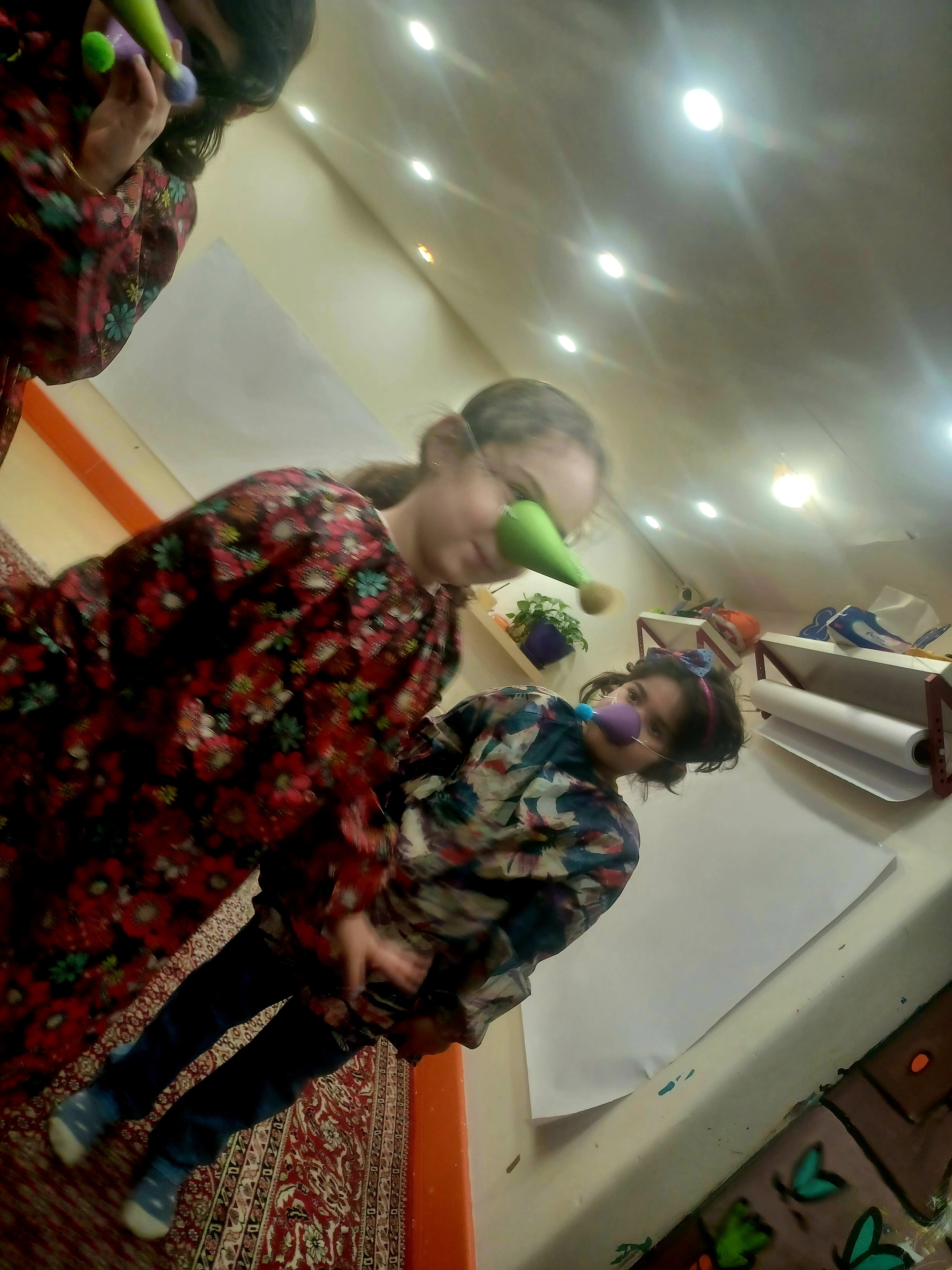 👈دنیای رنگ در خدمت خاله ملینا یک هنرمند و نقاش حرفه ایی هستیم که به کمک دماغ دلقکی شروع به نقاشی کردن میکنیم بدون استفاده از دست فقط با دماغ دلقکی خیلی باحاله تازه من یکمم با دستمون نقاشی رو کامل کردیم