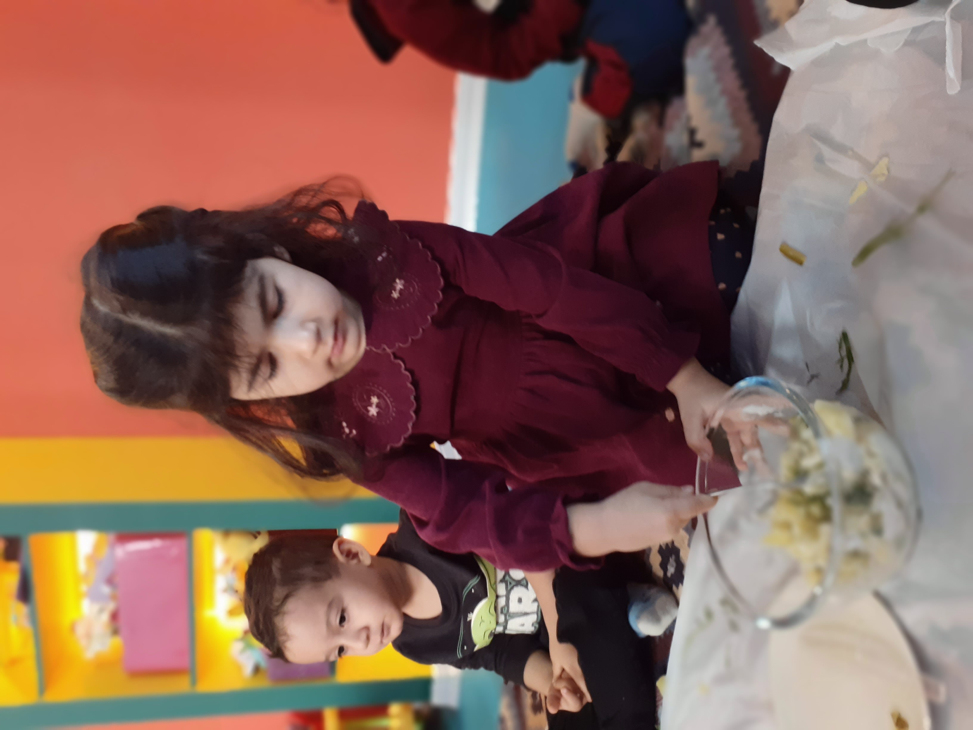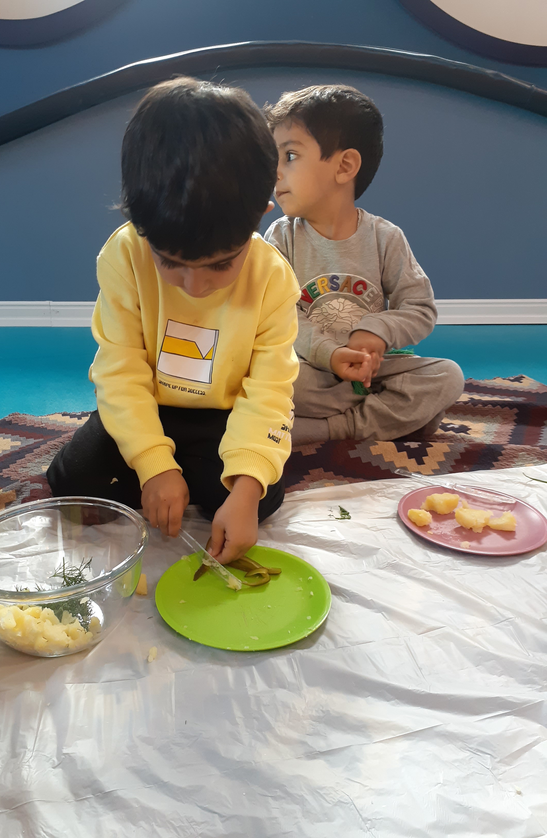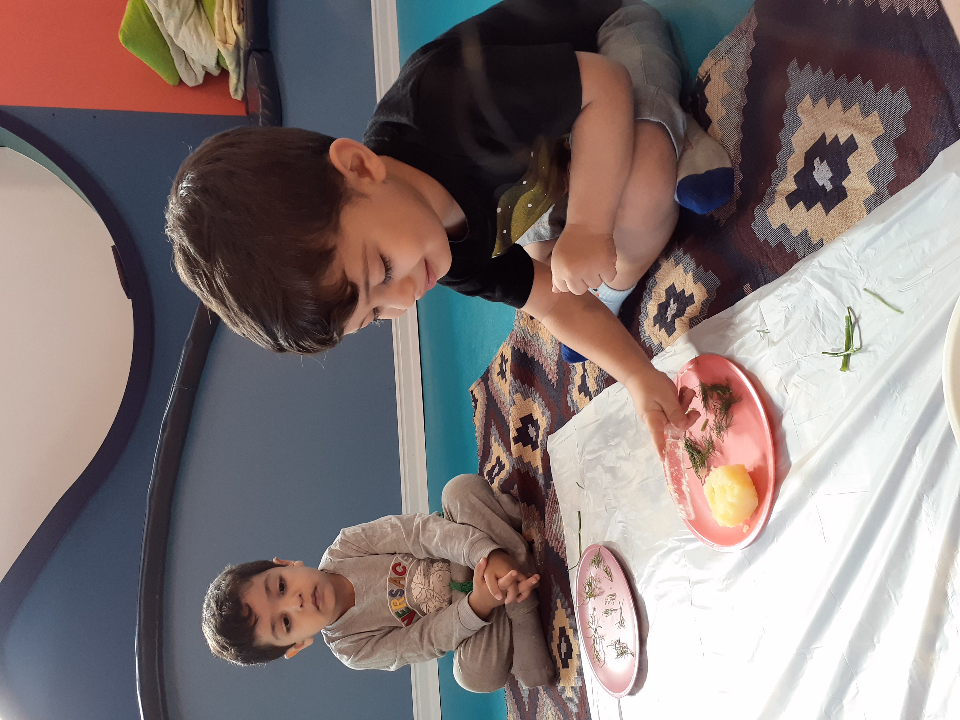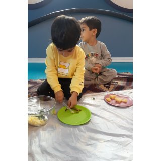بعدش کلاس آشپزی داشتیم که بچه های گلم با دستای کوچولوشون سبزی شوید رو پاک کردند . سیب زمینی آب پز ، خیار شور رو خورد کردند و همه رو داخل کاسه ریختیم و با اضافه کردن سس مخلوط کردیم و در آخر دستپخت خودشون رو میل کردند😍