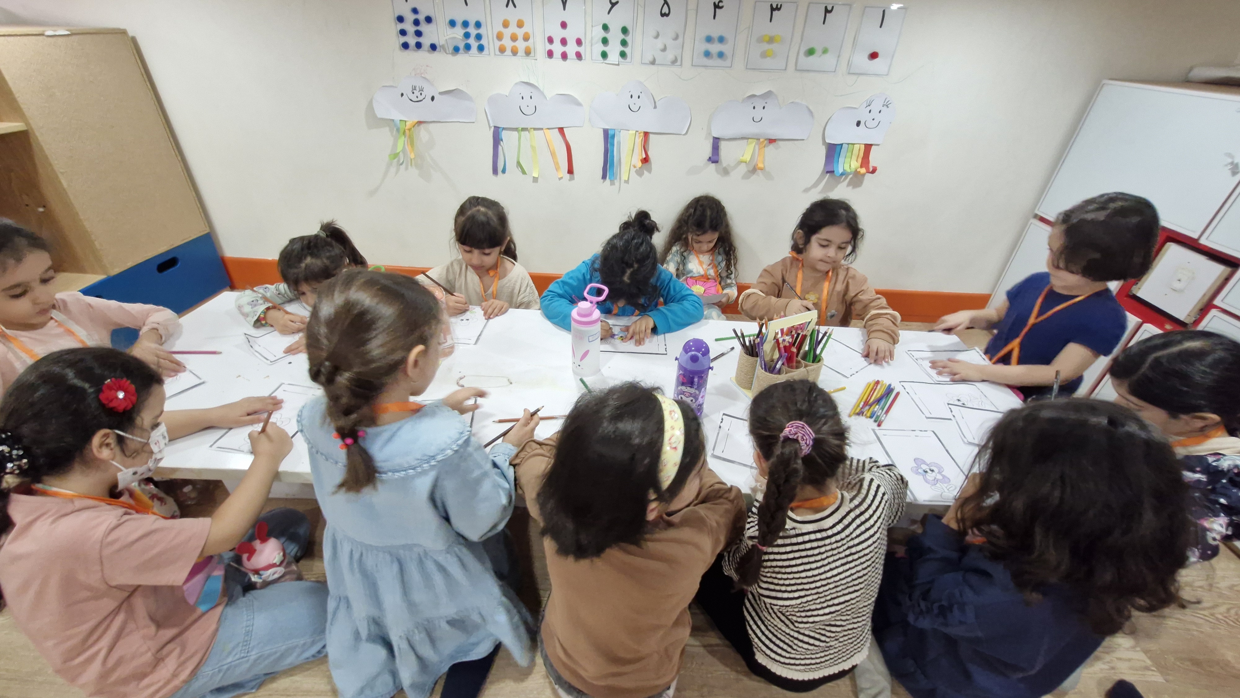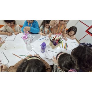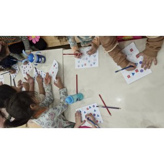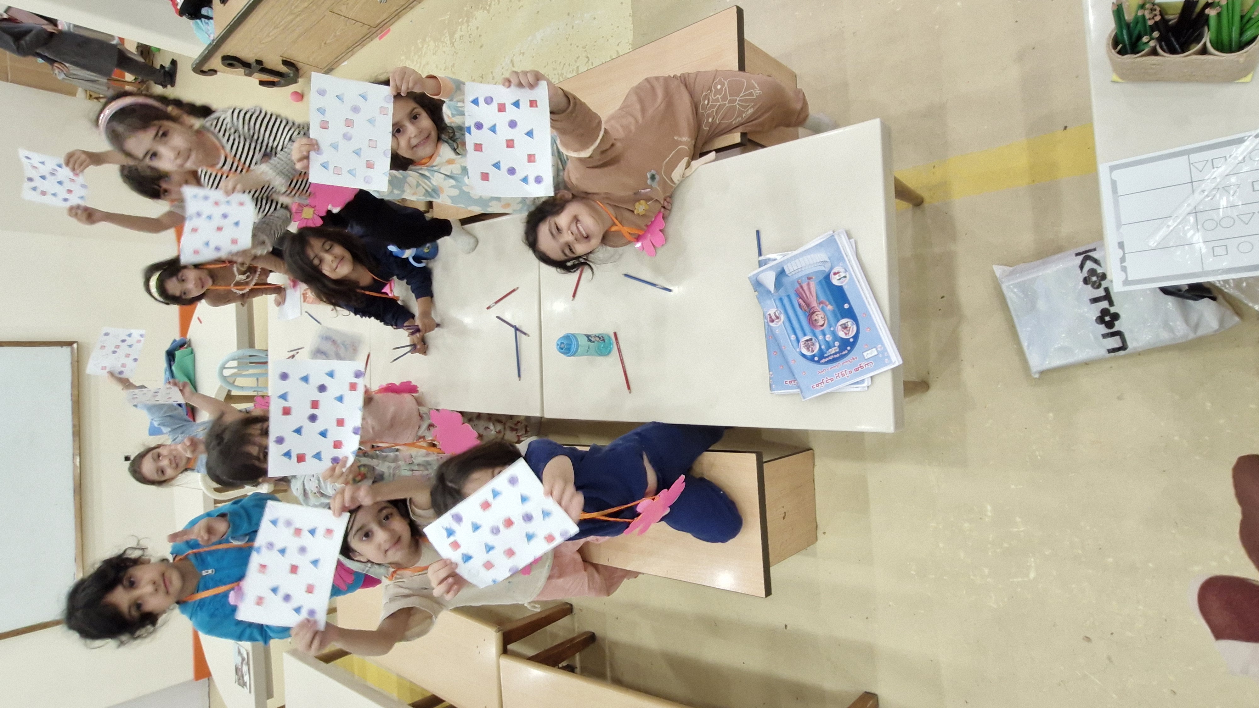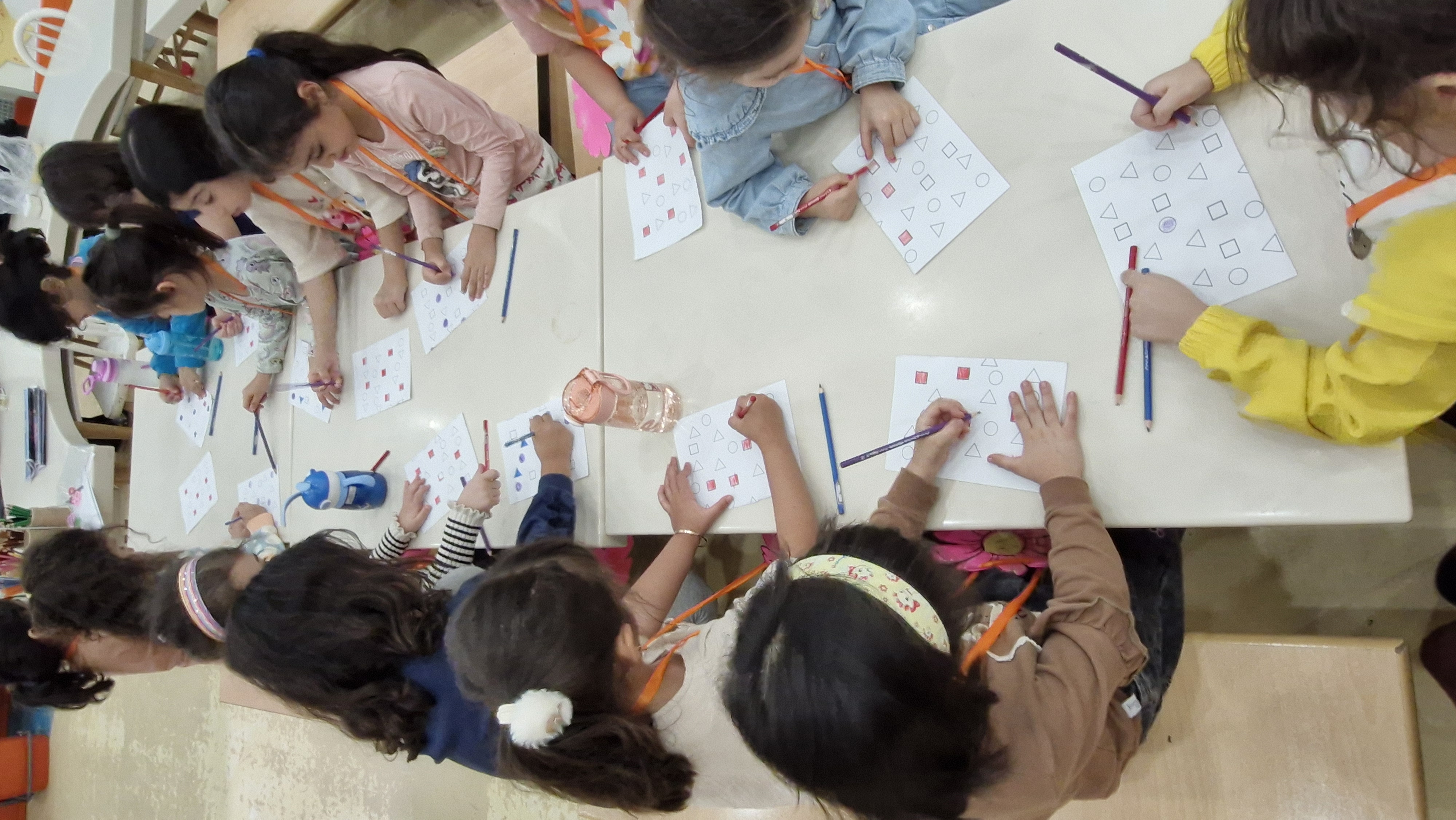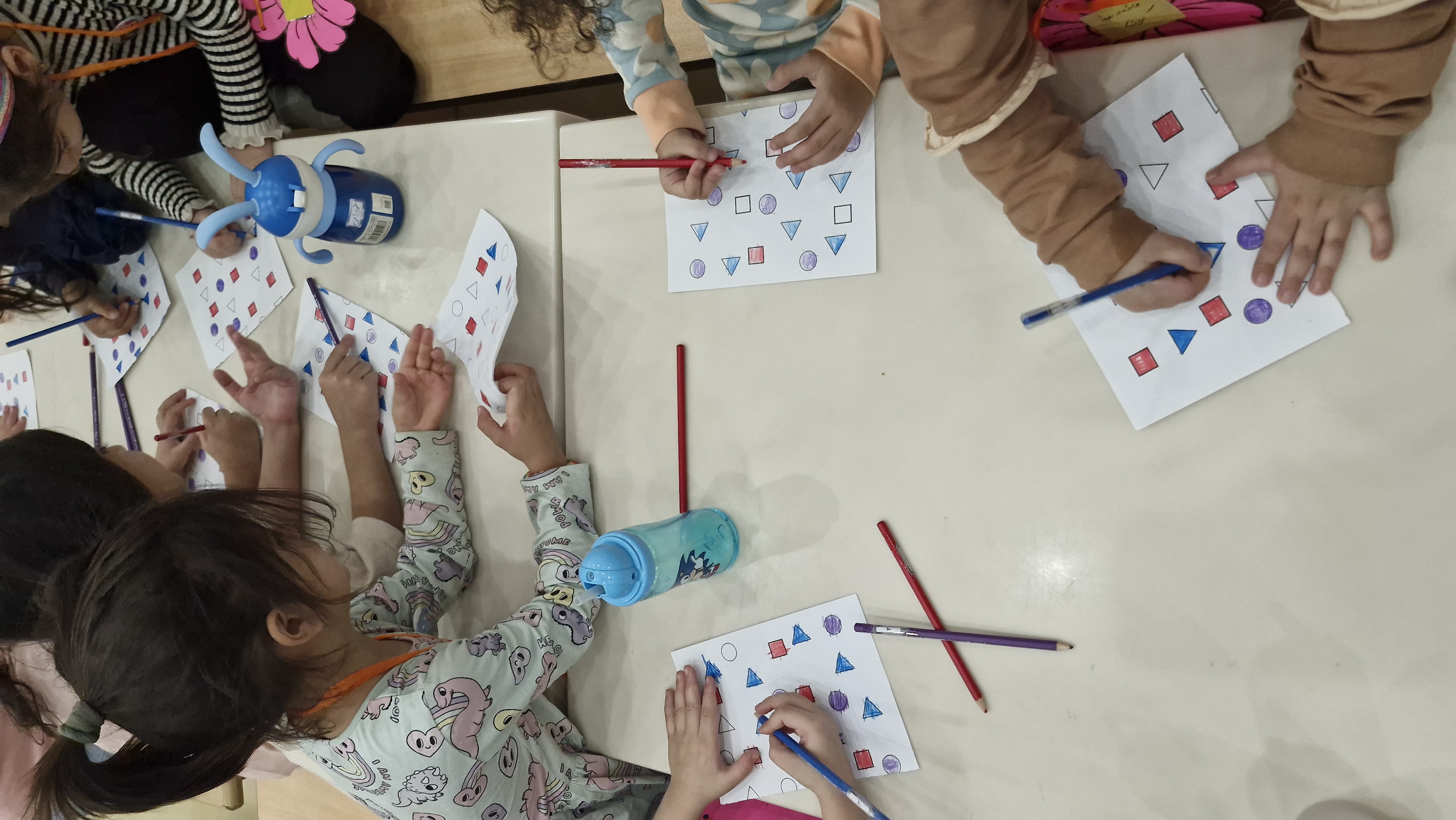 🌸 زنگ ریاضی مطابق با الگویی که خاله میگفت اشکال هندسی مربع دایره مثلث را رنگ میکردیم