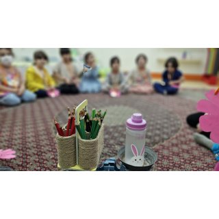 با کلی وسیله مثل قمقمهها و برگههای خاله