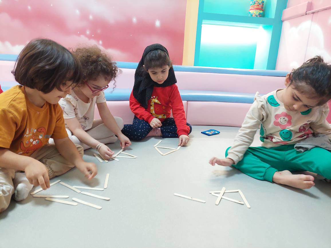 مهندسان کوچک : درست کردن اشکال هندسی ( مربع ،مثلث) و شناخت آنها.