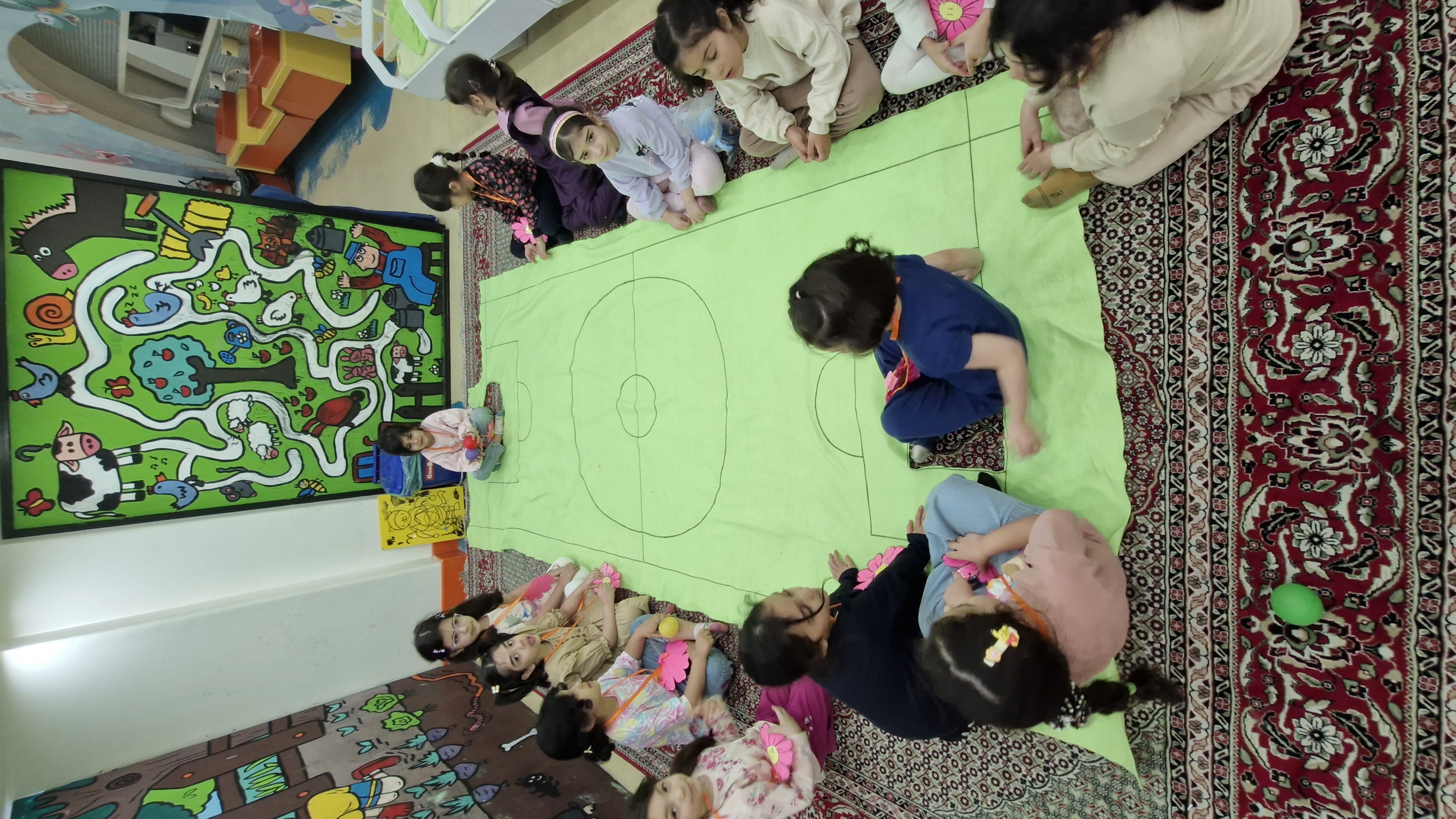 🌸کلاس بعدی بچهها گروه بندی شدند و با فوتبال نمدی سعی کردند بهم گل بزنند