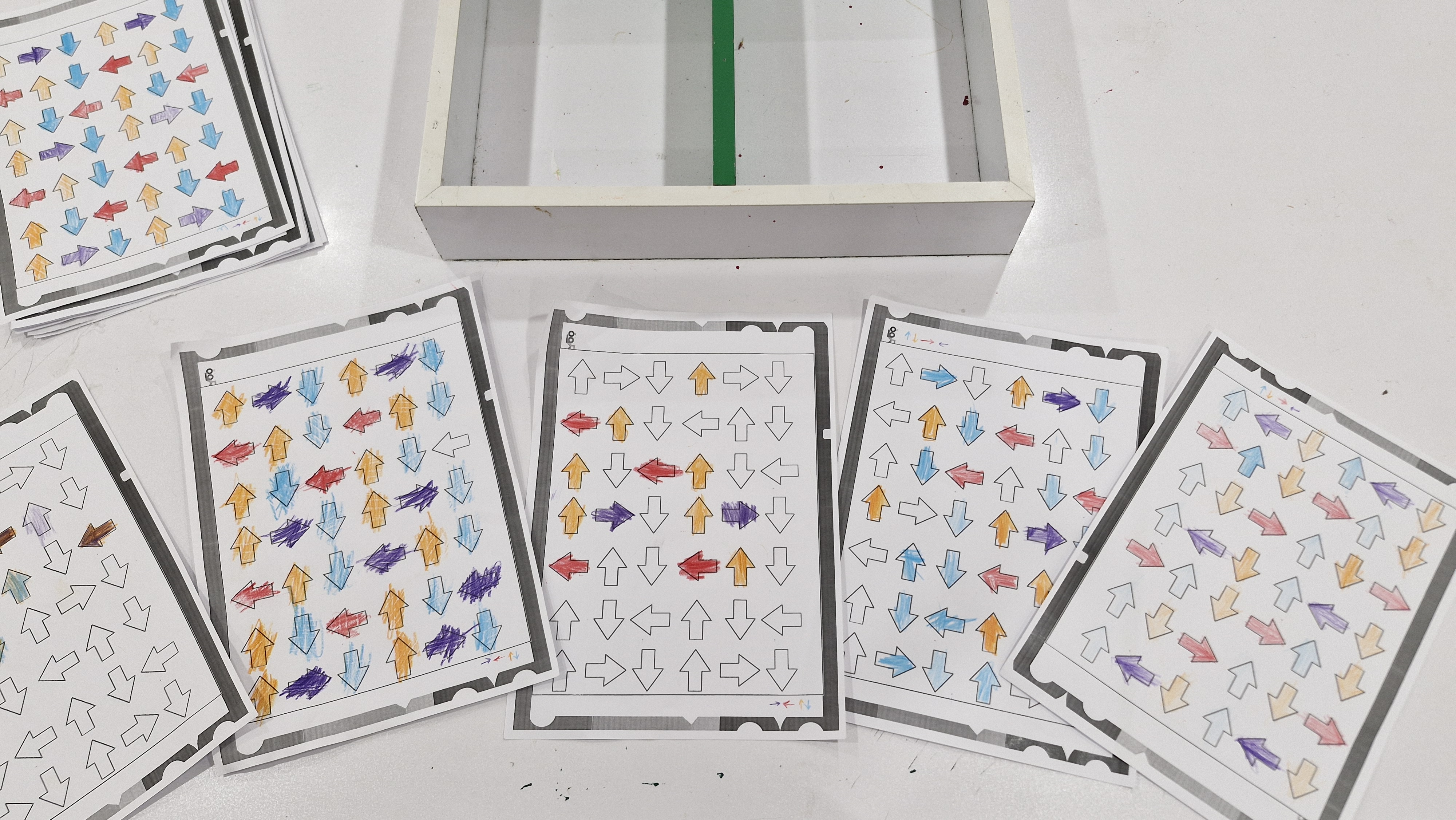 🌸ایستگاه اول ذهن خلاق داشتیم با الگو فلش های اشاره به سمت های مختلف رو رنگ کردیم⬆️⬇️⬅️➡️