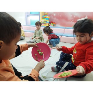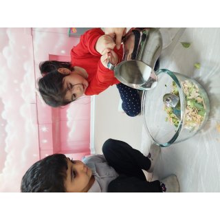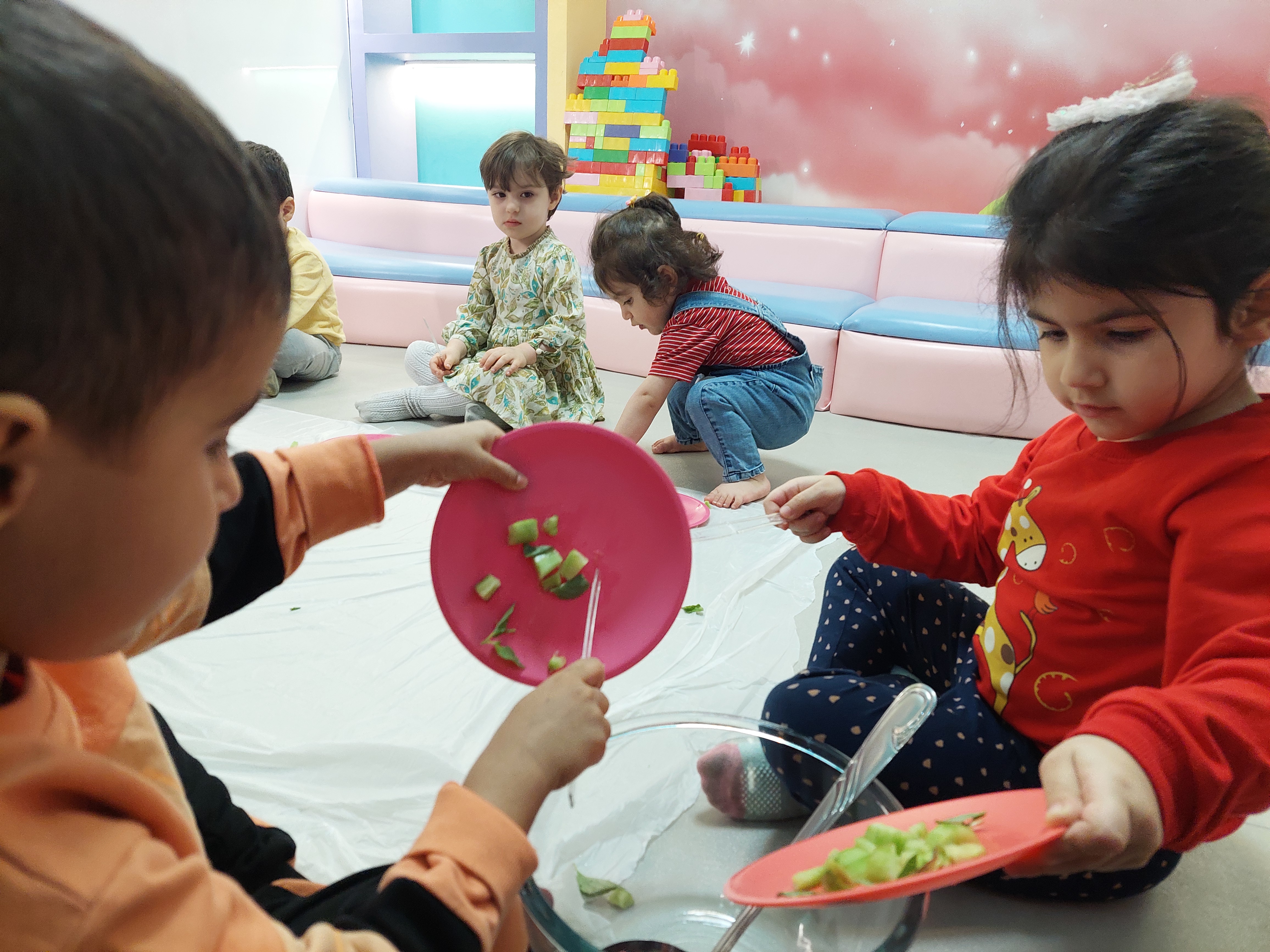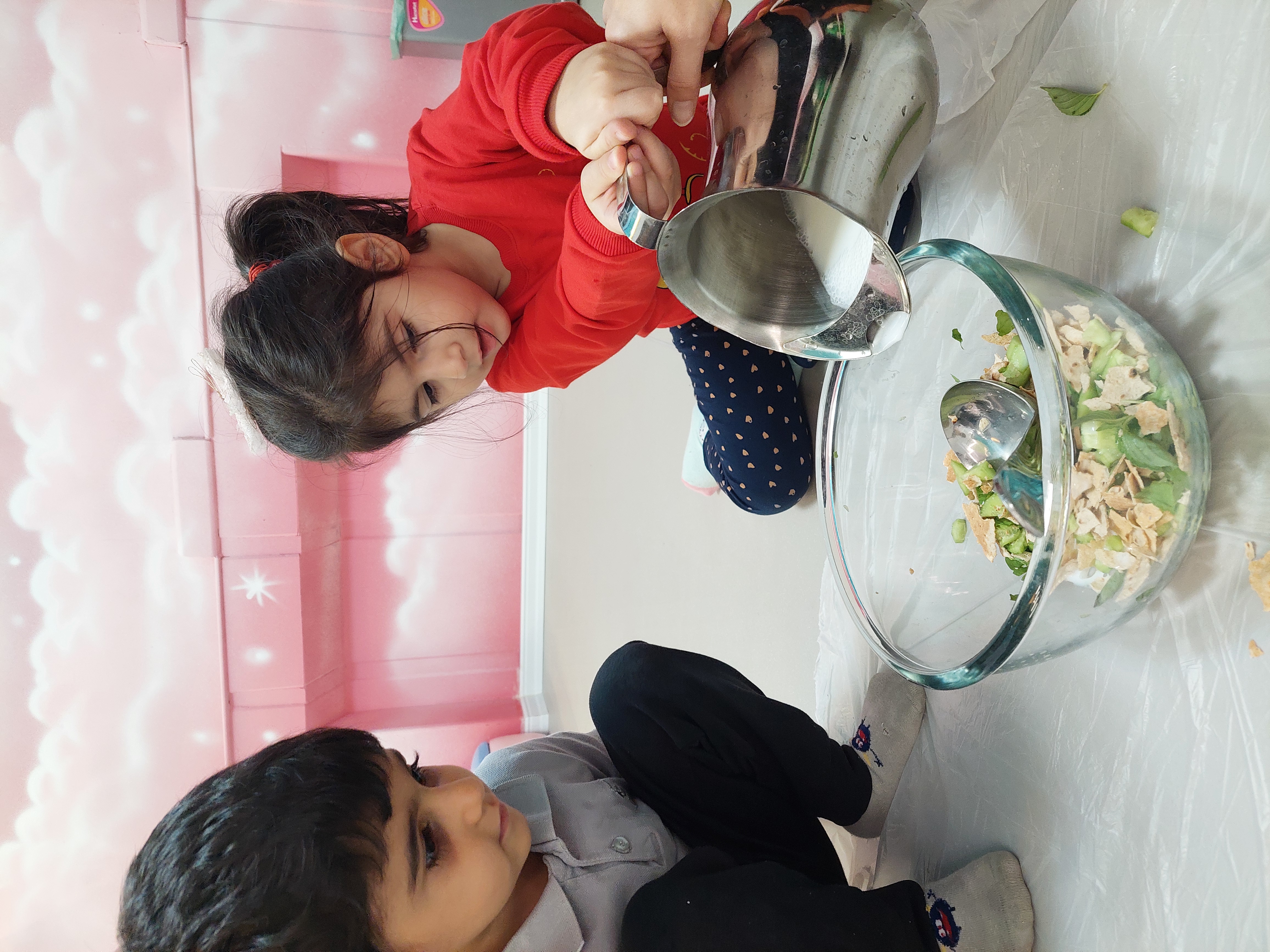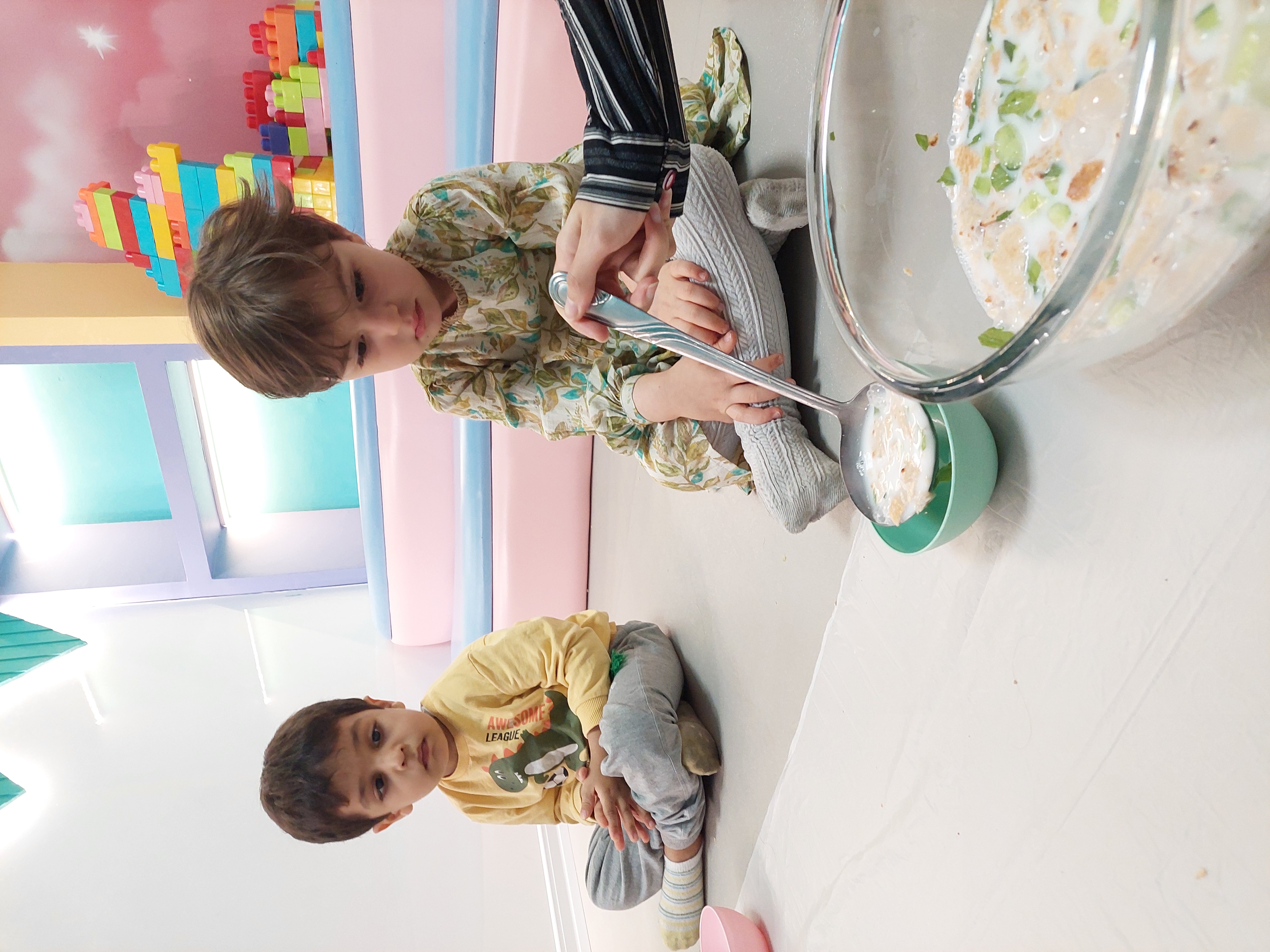 بعد نوبت رسید به میان وعده بچه ها که همون آبدوغ خیاری بود که خودشون درست کردند😋