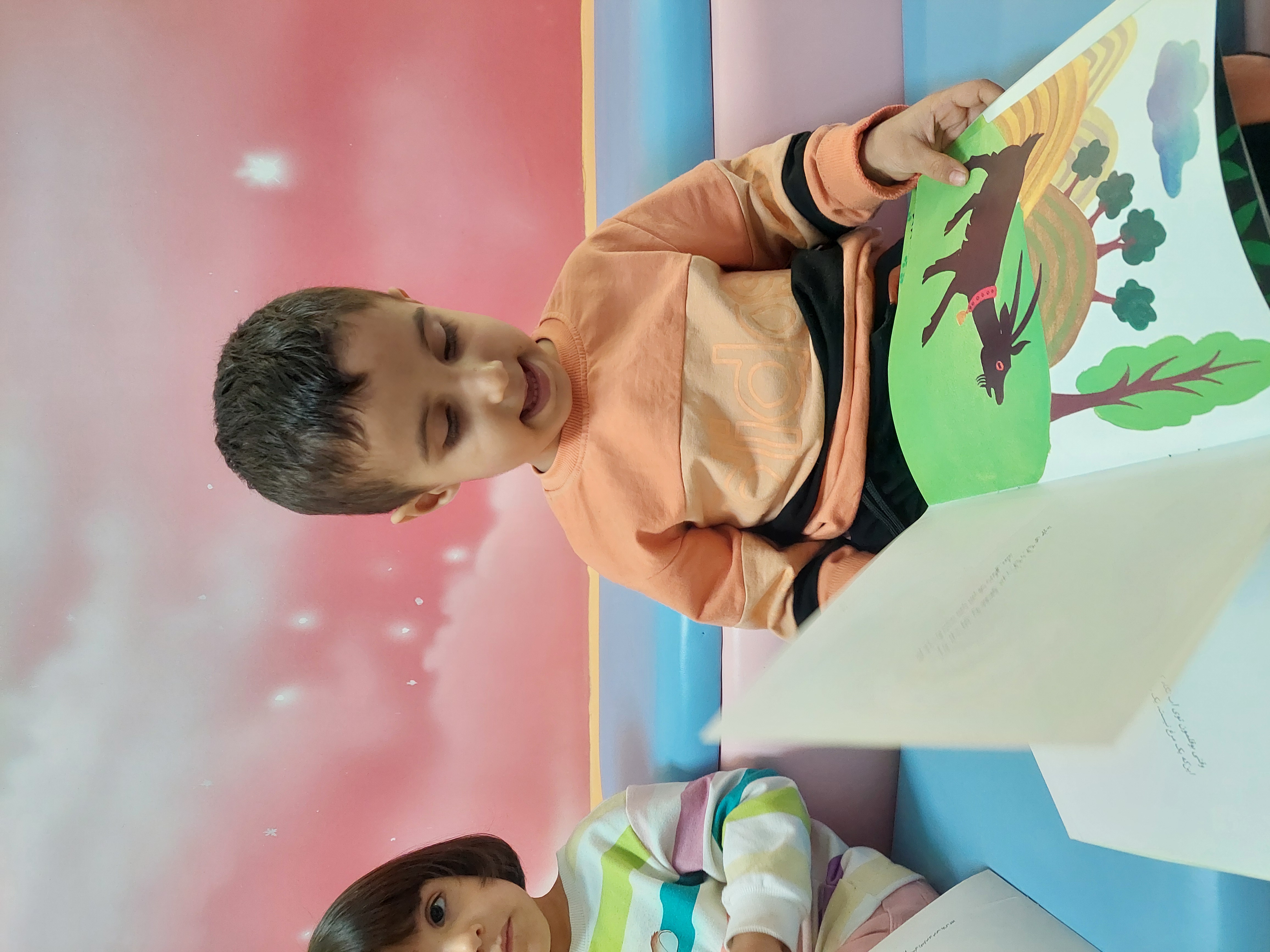 بعد پرانرژی رفتیم سراغ فعالیت بعدیمون که کلاس خاله نادره جان بود که ابتدا یک کتاب داستان برای لاله ها خونده شد سپس شخصیت های داستان رو نقاشی کردند و نمایش اجرا کردند