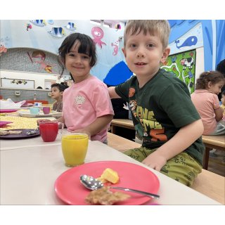 بعدش رفتیم صبحانه چای و نون کره عسل به به 😋🥖🧈🍯🫖☕️