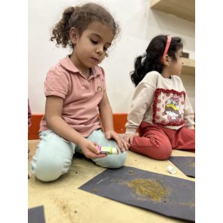 ایستگاه بعدی دنیای رنگ بود که با حضور خاله ملینای هنرمند انجام شد و یه خانواده نارنگی کشیدیم با اکلیل و نمک خوراکی 🍊🍊🍊