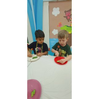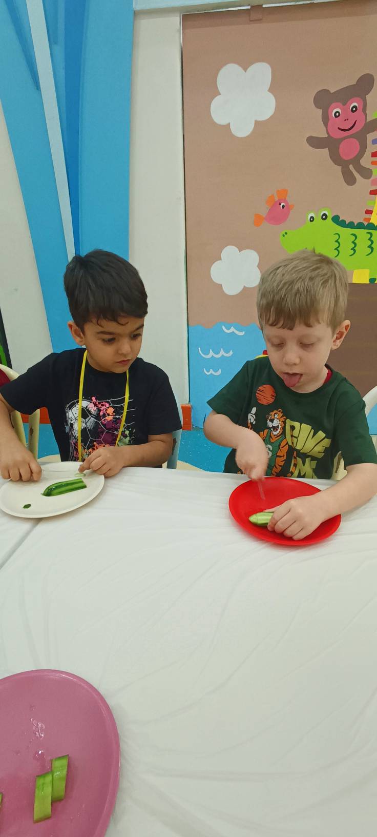 امروز بعد از صبحگاه جذاب و میل کردن کره عسل که یه صبحانه خوشمزه و پرانرژی😋😍همگی سراشپز شدیم و رفتیم سراغ اشپزی و اب دوغ خیار درست کردیم 🧑🍳