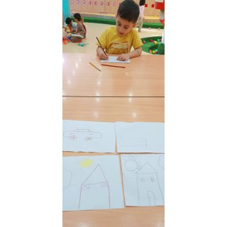 بعدهم نقاشی بازی😍 خیلی جدید بود اول خاله نقاشی کشید بعد هم دونه دونه نقاش شدیم و سعی کردیم مثل خاله نقاشی بکشیم .🌈