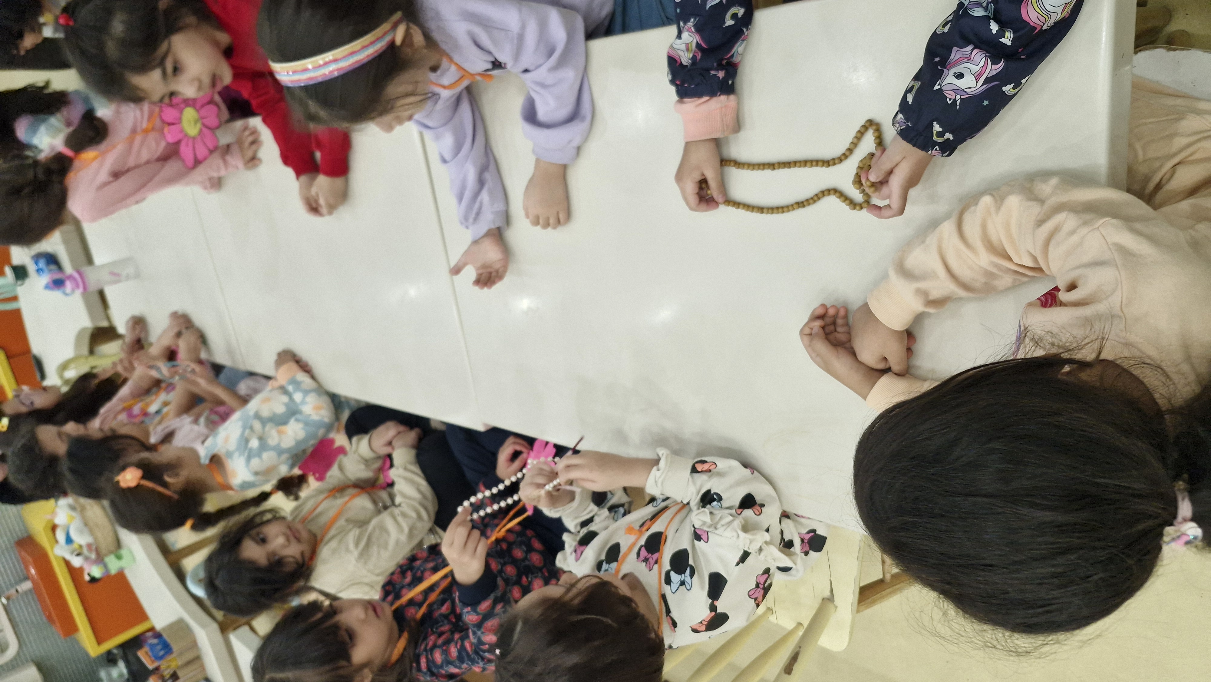🌸کلاس بعدی با خاله الهه ذکرهای سبحان الله و الحمدلله و لاحول و لا قوه الا بالله رو تمرین کردیم هر کدوم از ذکرها به رنگ توپ مخصوص داشت و خاله میگفت ذکر سبحان الله توپشرو نشون میدادیم و باهاشون بازی کردیم و با تسبیح آشنا شدیم