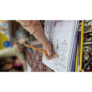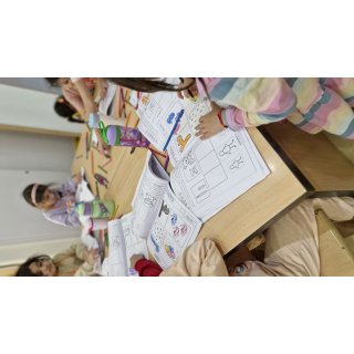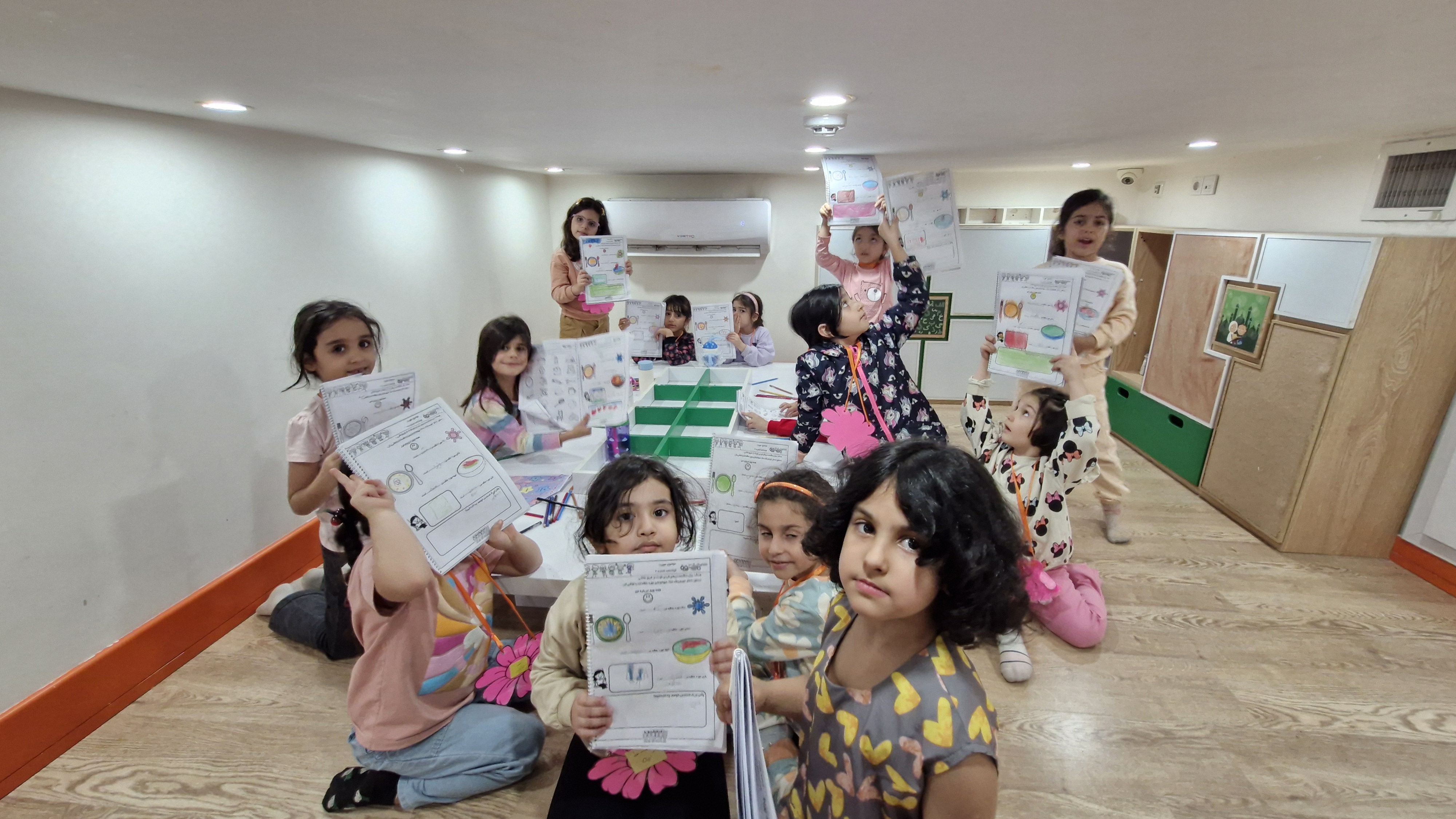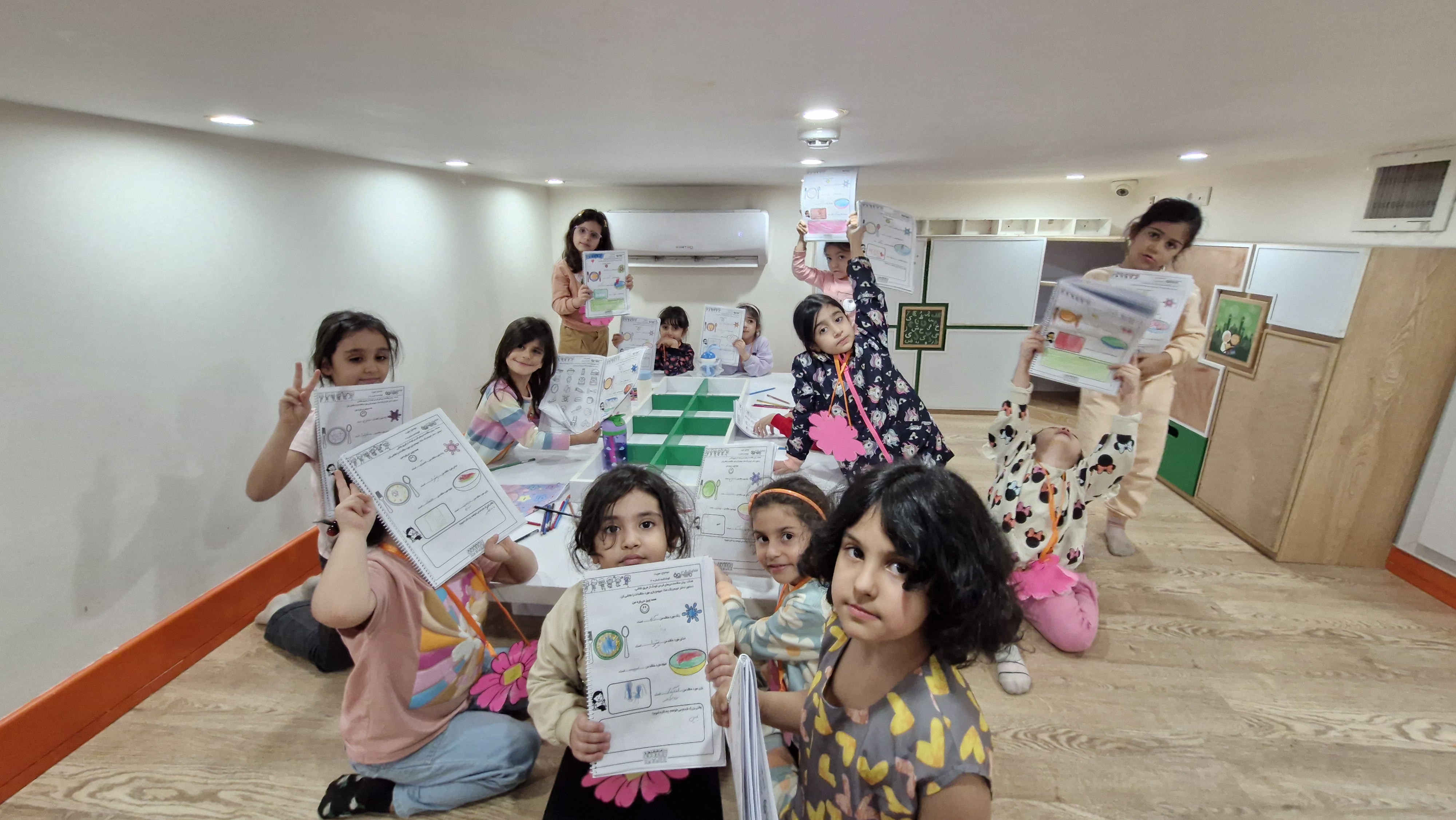 به آینه نگاه میکردیم خودمون رو معرفی میکردیم و میوه و غذا و رنگ و بازی مورد علاقهمون رو میگفتیم در آخر شغلی را که دوست داریم در آینده داشته باشیم رو به خاله گفتیم و در کاربرگ مون ثبت کردیم