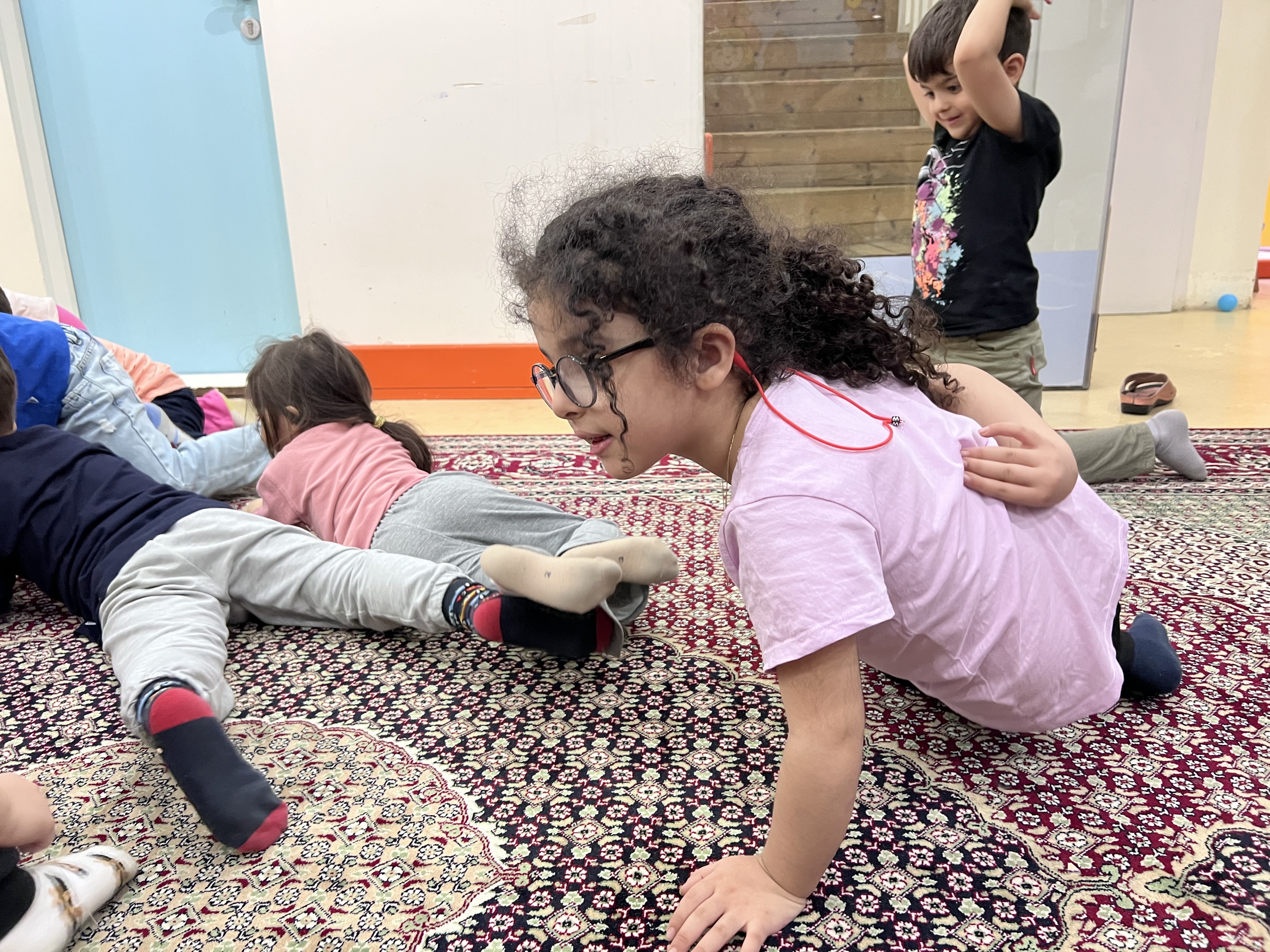 و بعدش رفتیم پیش خاله هانیه مهربون و صبحگاه رو کنارشون بودیم ، بازی کردیم، شعر خوندیم، ایت الکرسی خوندیم و ورزش کردیم🏅🎤🎼🛝