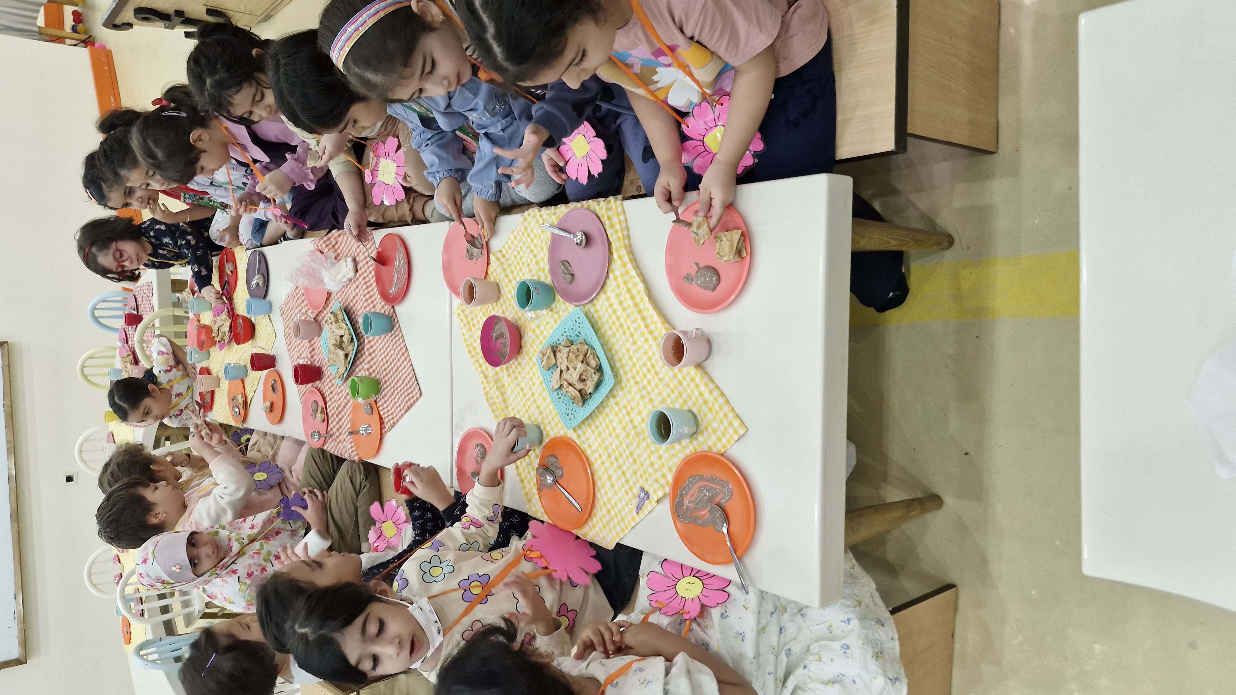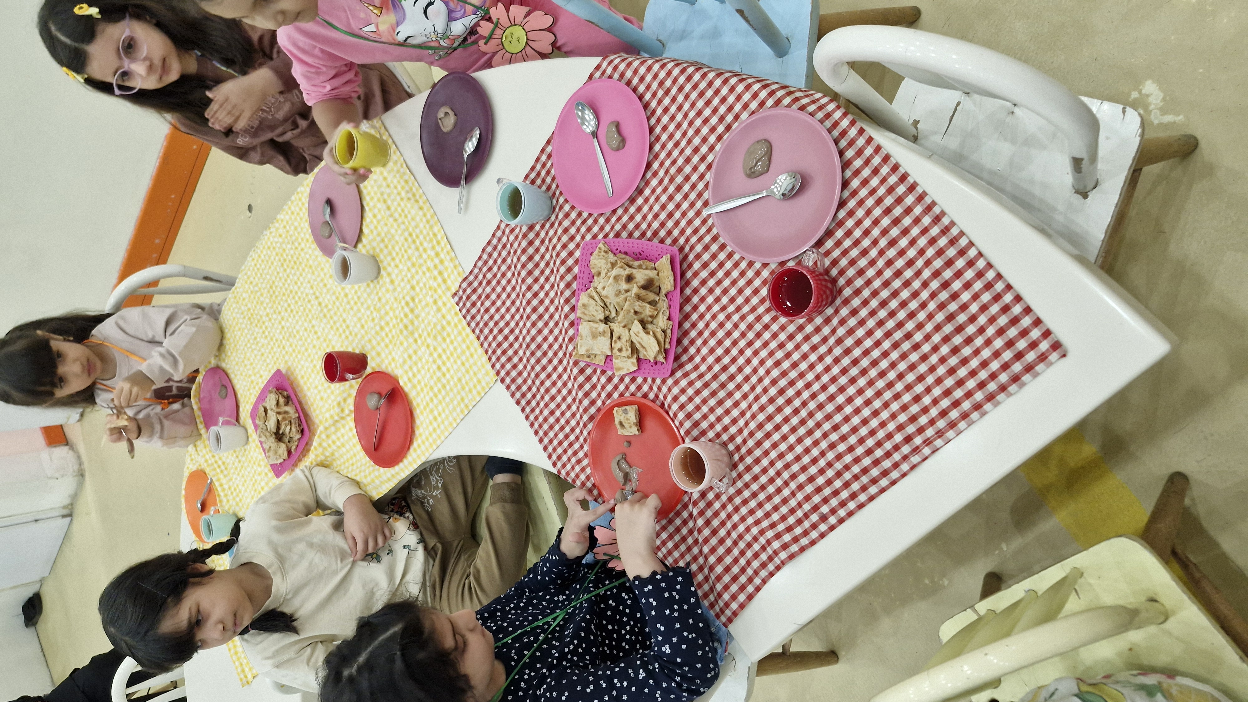 نون و خامه شکلاتی و چایی... بچهها حسابی خوردن و انرژی گرفتن 😋