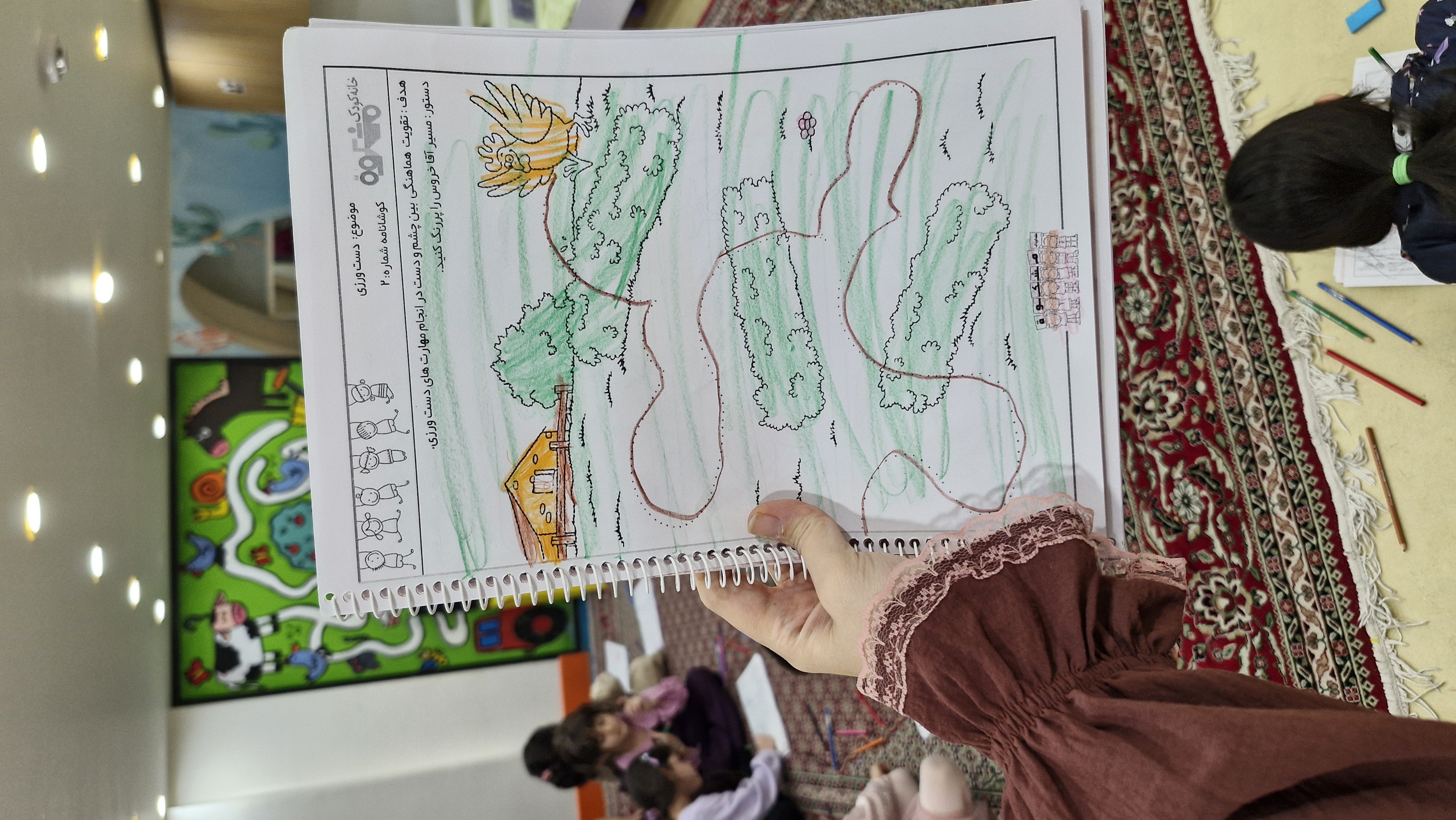 🌸کلاس بعدی دستورزی داشتیم...کاربرگ حل کردیم که تمرین مون وصل کردن نقطه چینها بود