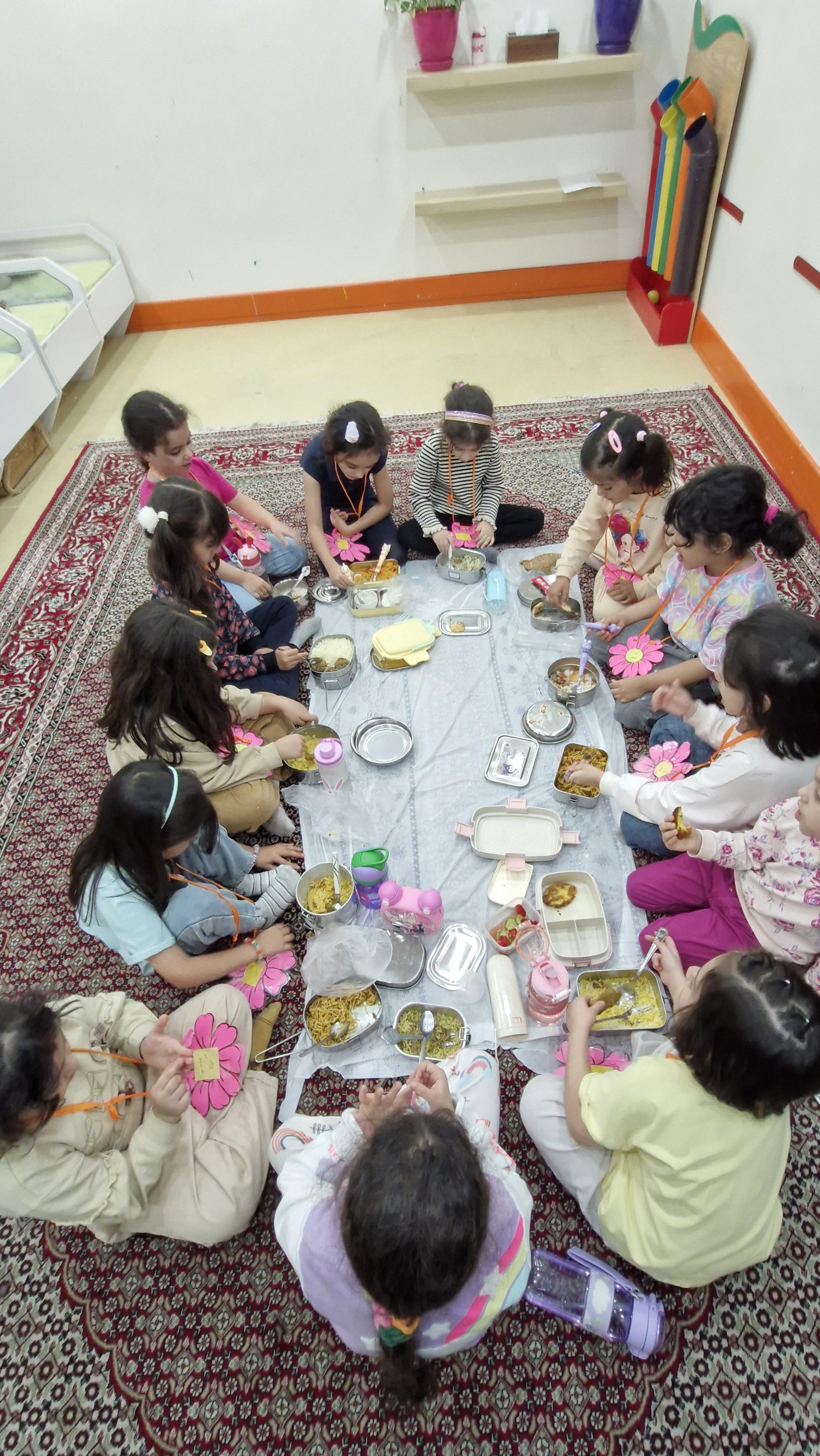 🌸ایستگاه اول بچهها نون و پنیر و خیار🍞🥒 خوردن که حسابی انرژی بگیرند😋🤸🏻♀️