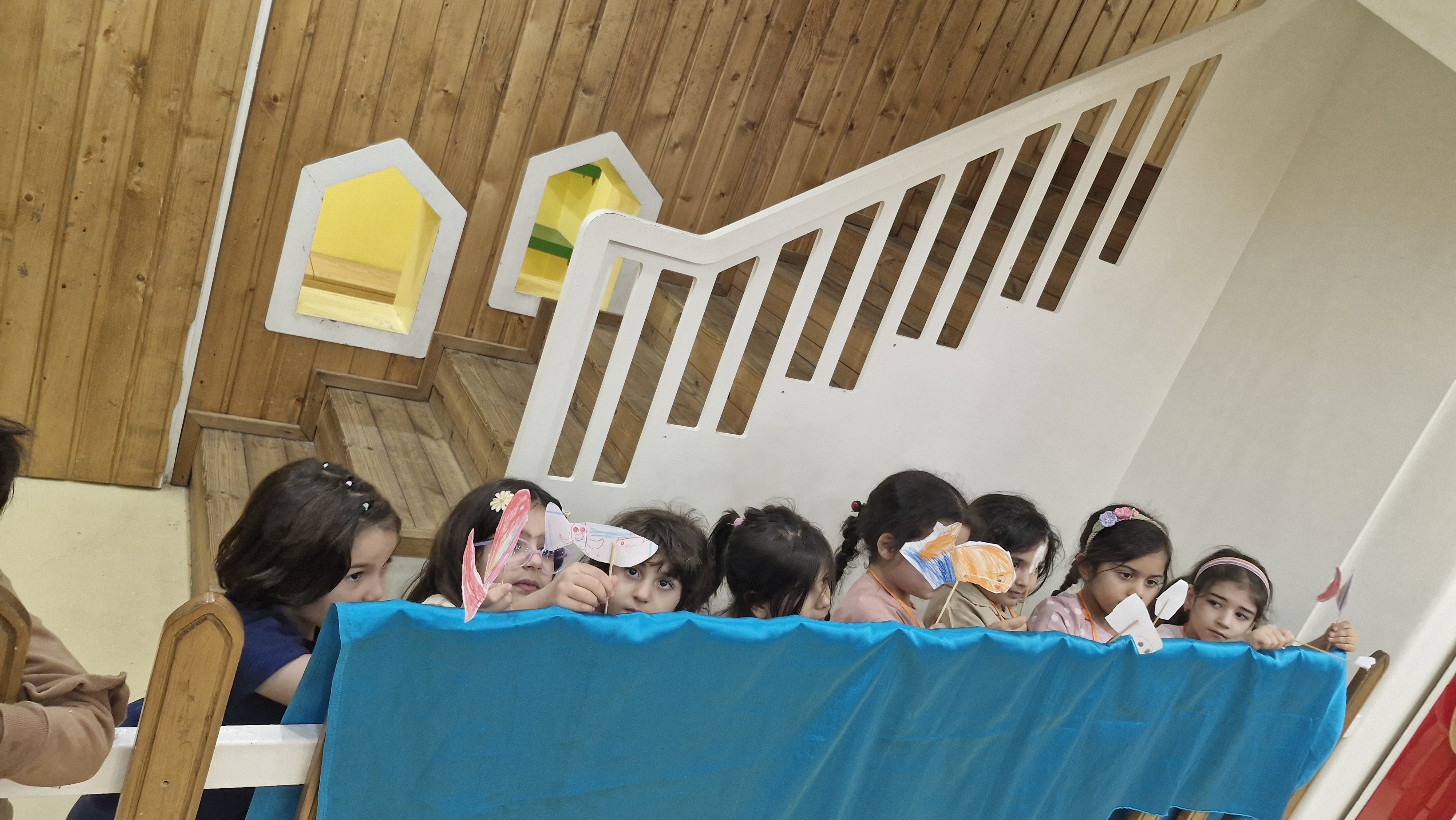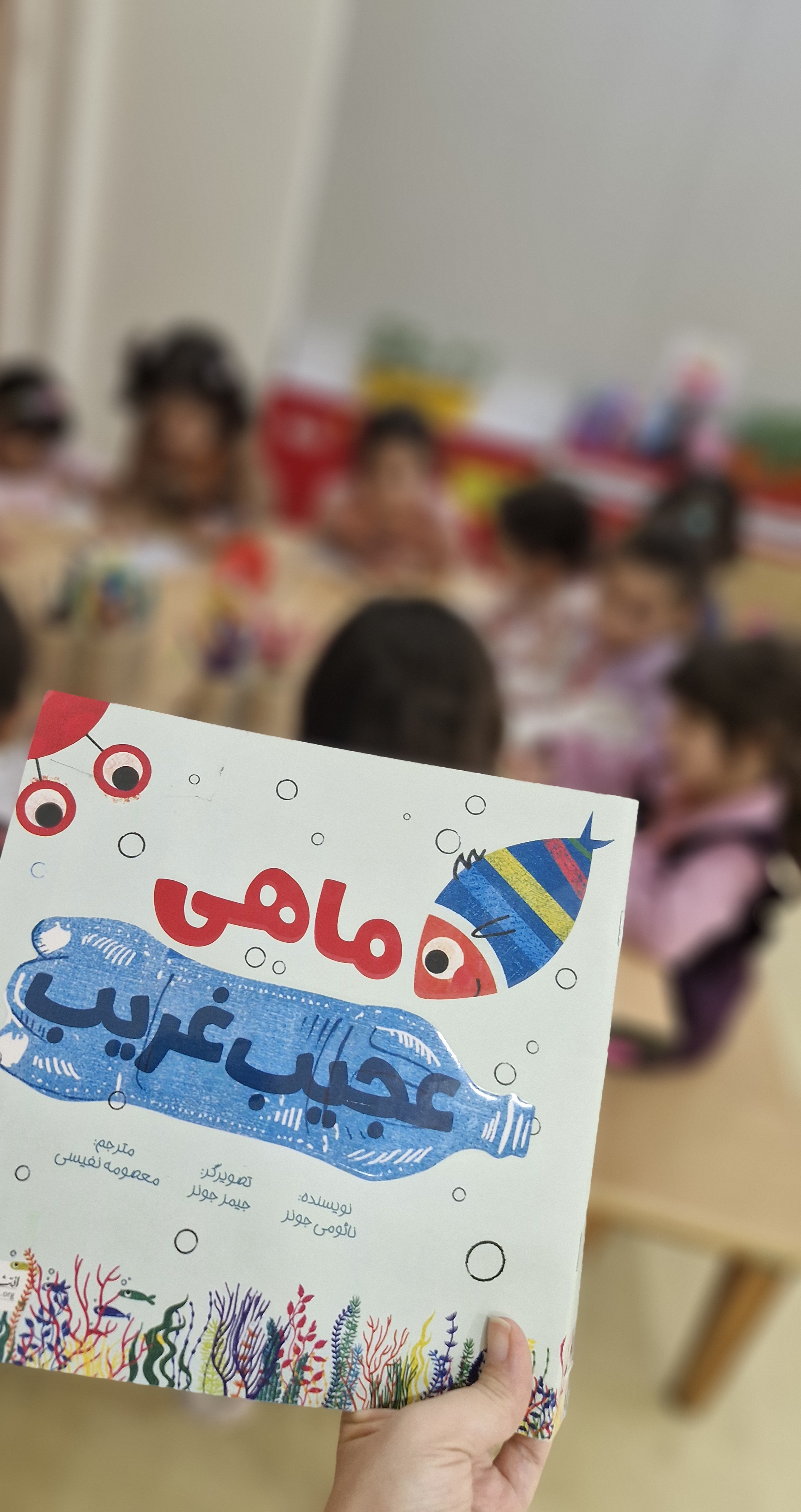🌸بعد با خاله نادره نمایش خوانی داشتیم، داستان ماهی عجیب و غریب رو برامون تعریف کردن نقاشیش رو کشیدیم و بریدیم و نمایش ماهی ها رو در دریا اجرا کردیم