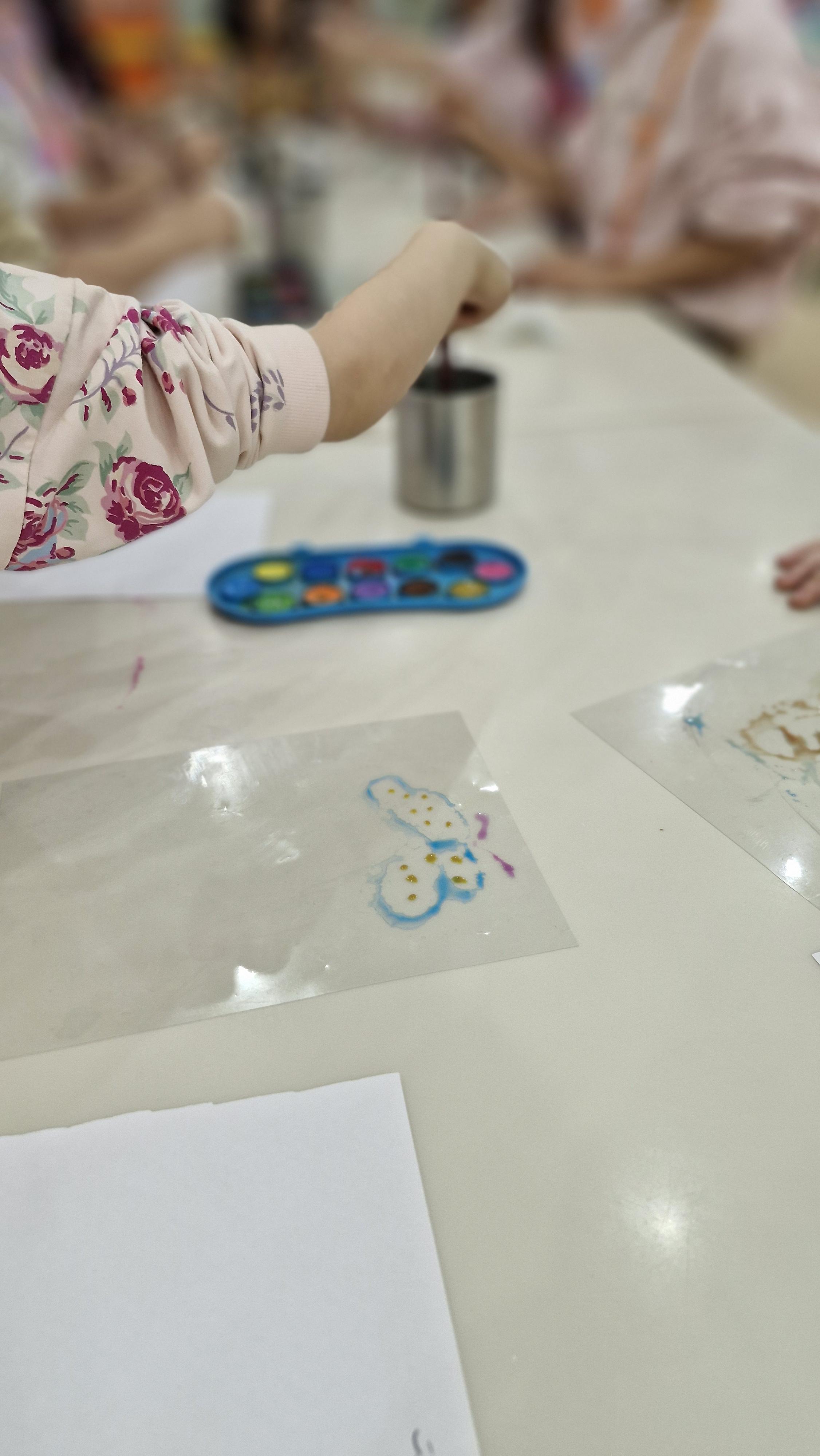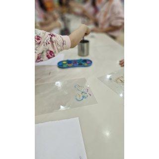 خاله یه درس جدید به ما داد و اون هم چاپ نقاشی بود. ابتدا ما نقاشی را روی طلق میکشیدیم و بعد برگه را به آن میچسباندیم و