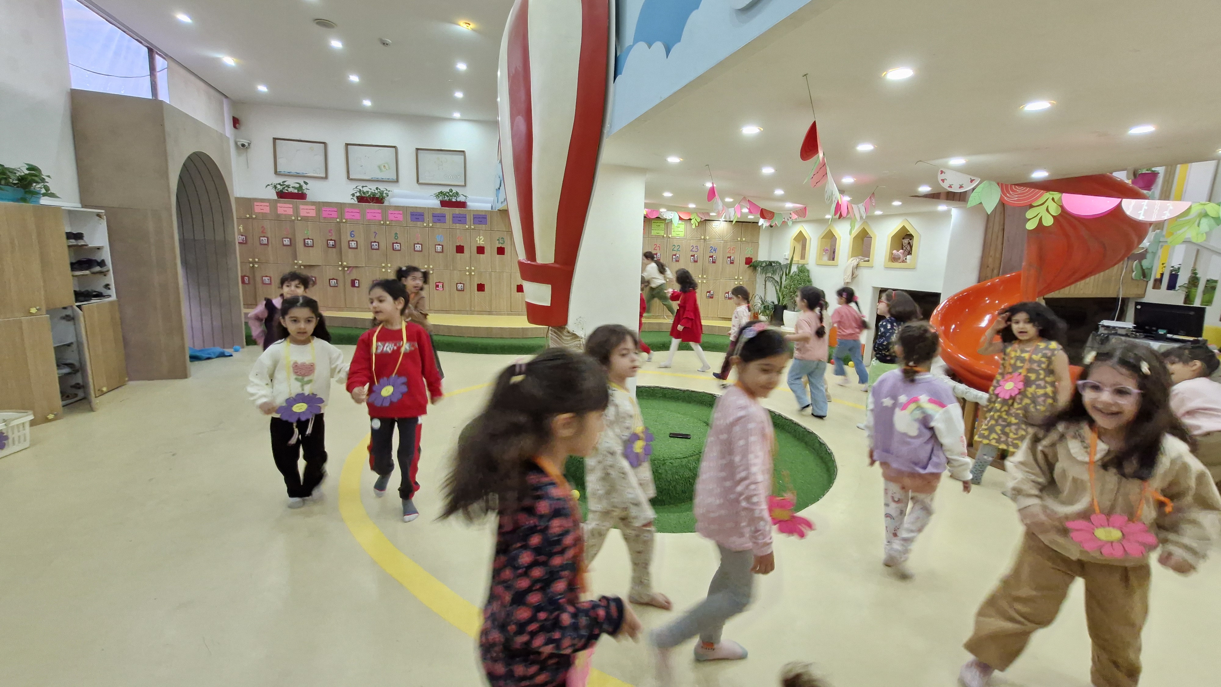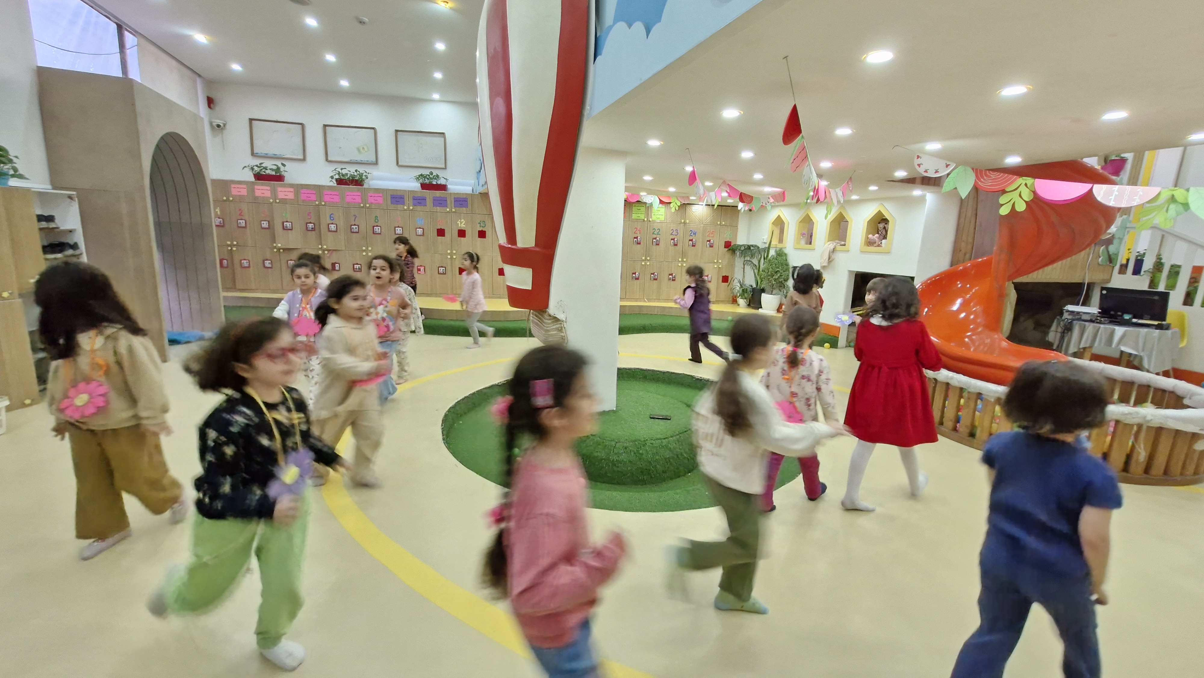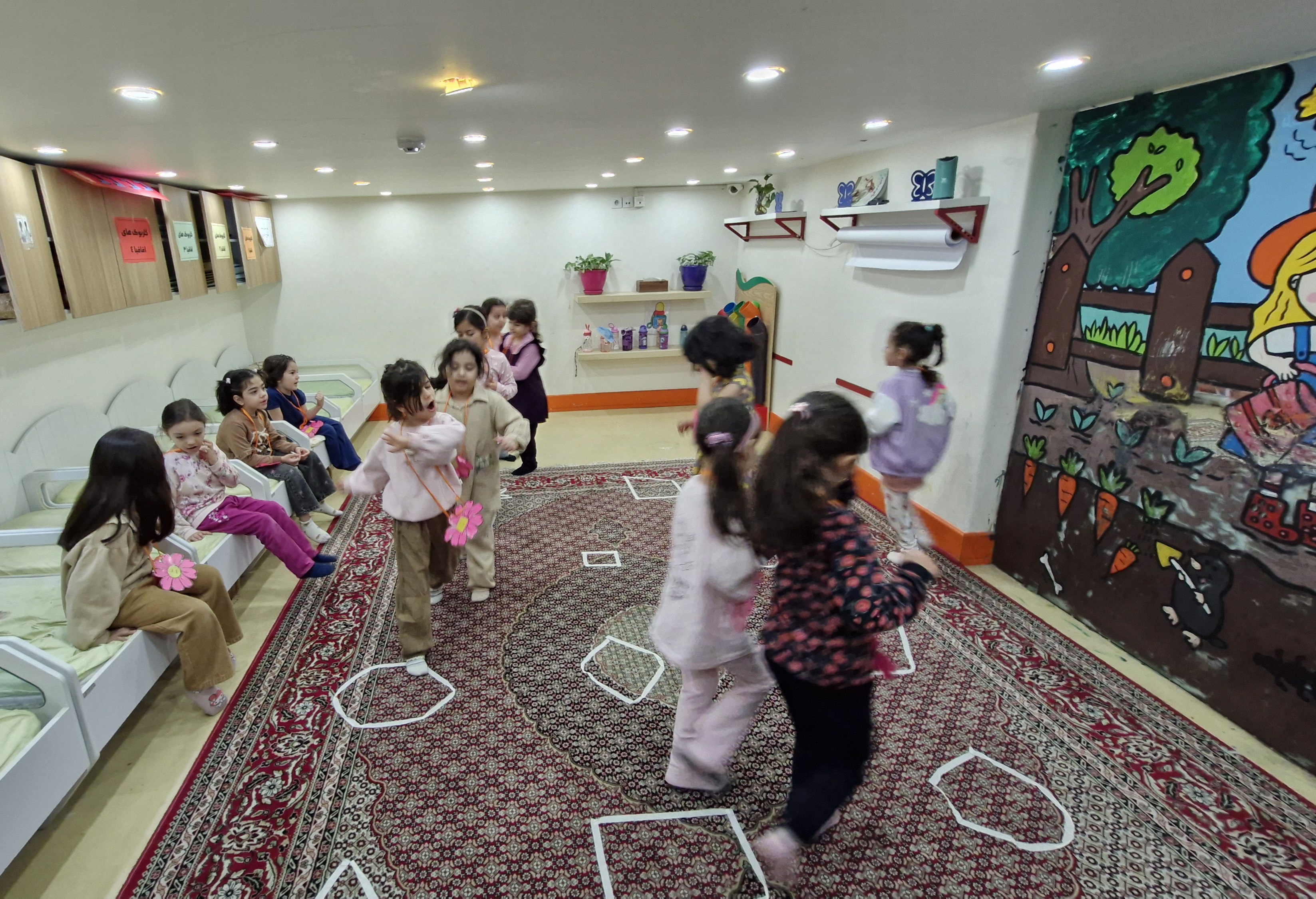 🌸کلاس اولی که داشتیم باید در کلاس میدویدیم و و با قطع شدن آهنگ داخل شکلهایی که روی زمین آماده شده بود میایستادیم و اگر کسی با تاخیر یا روی زمین یا فرش ایستاده بود و یا اگر خاله گفته بود روی یک پا بچهها بایستند و اشتباه بود فرد مینشست و بازی ادامه پیدا میکرد تا ۱ تا دو نفر هنوز ایستاده بودند