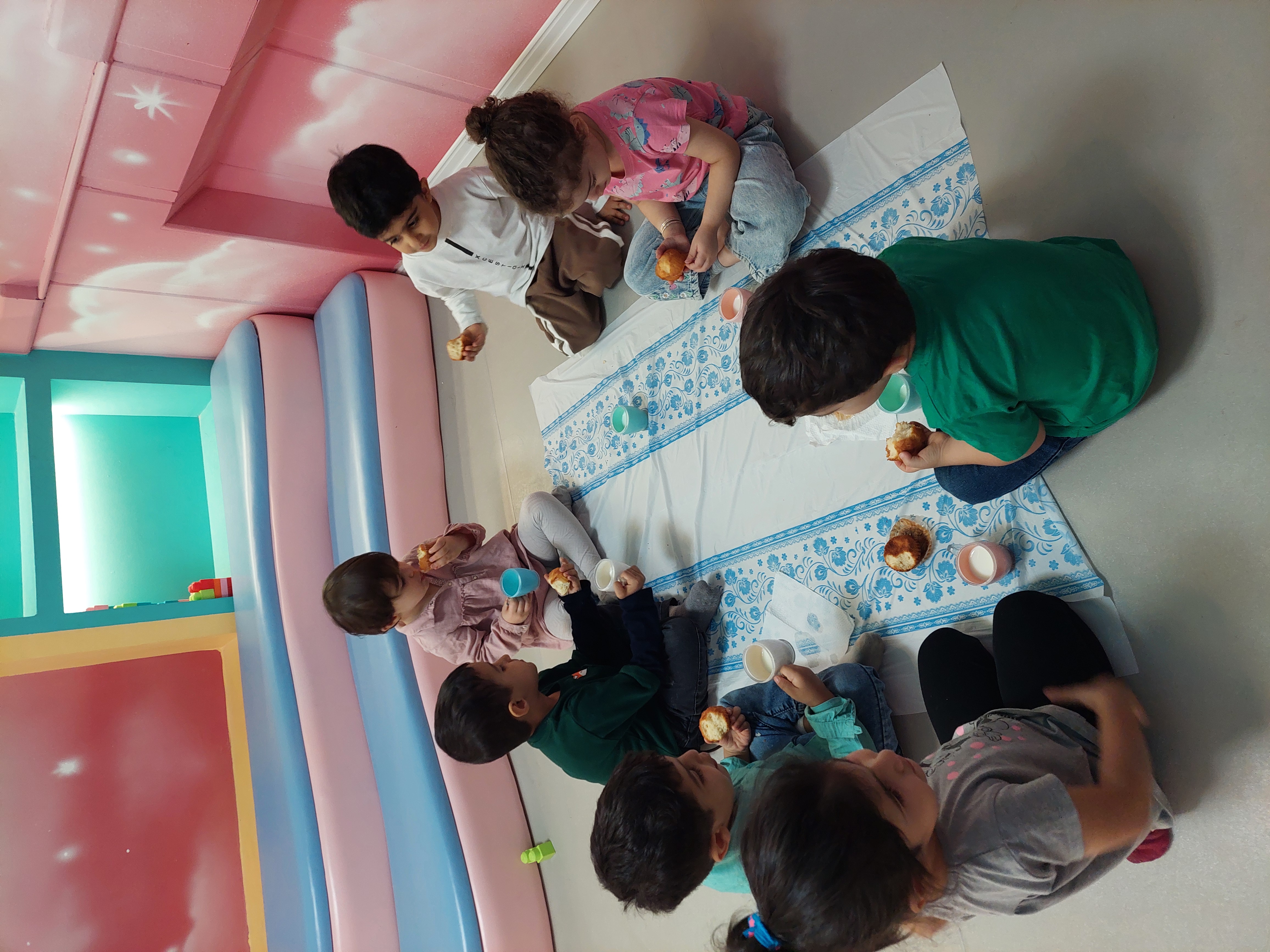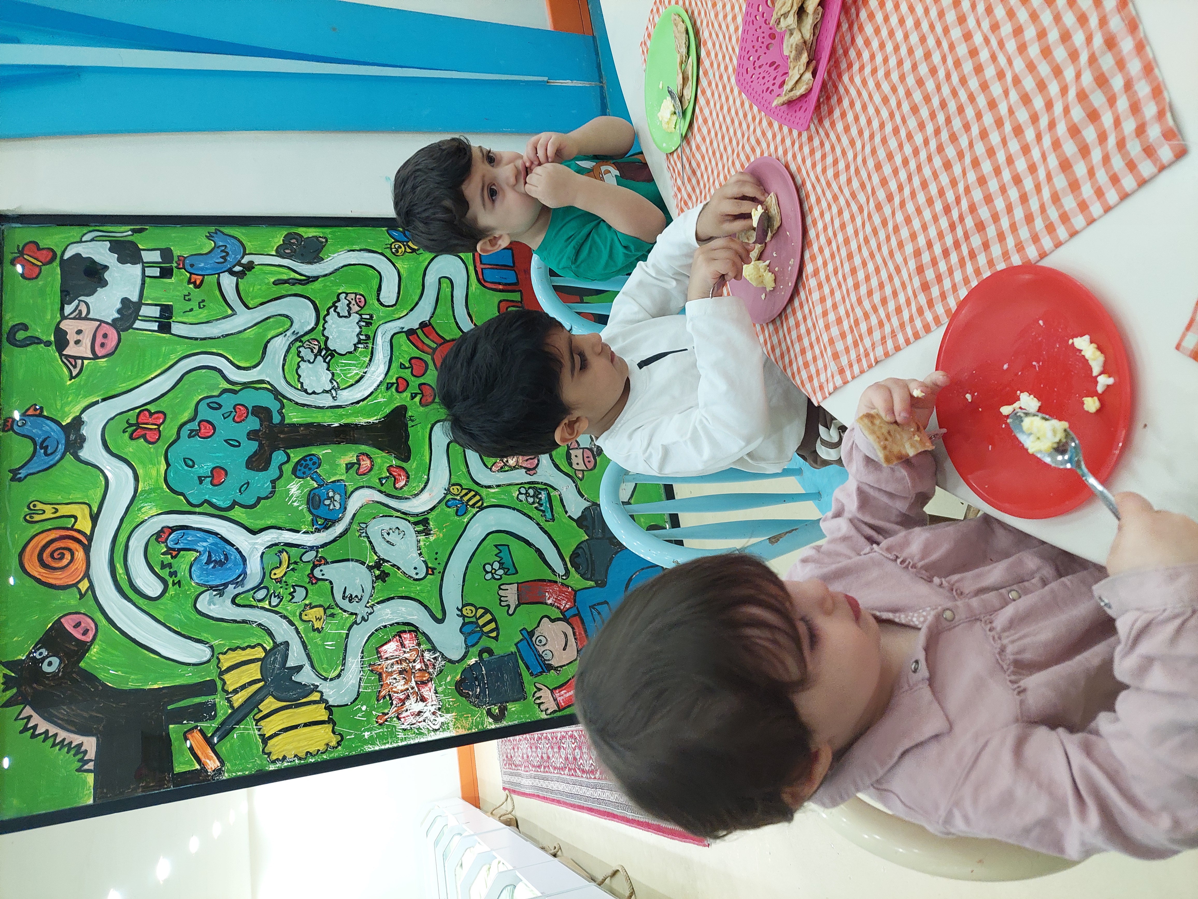 بعد نوبت رسید به میان وعده بچه ها که کیک و شیر بود😋🥛🥧