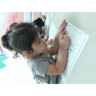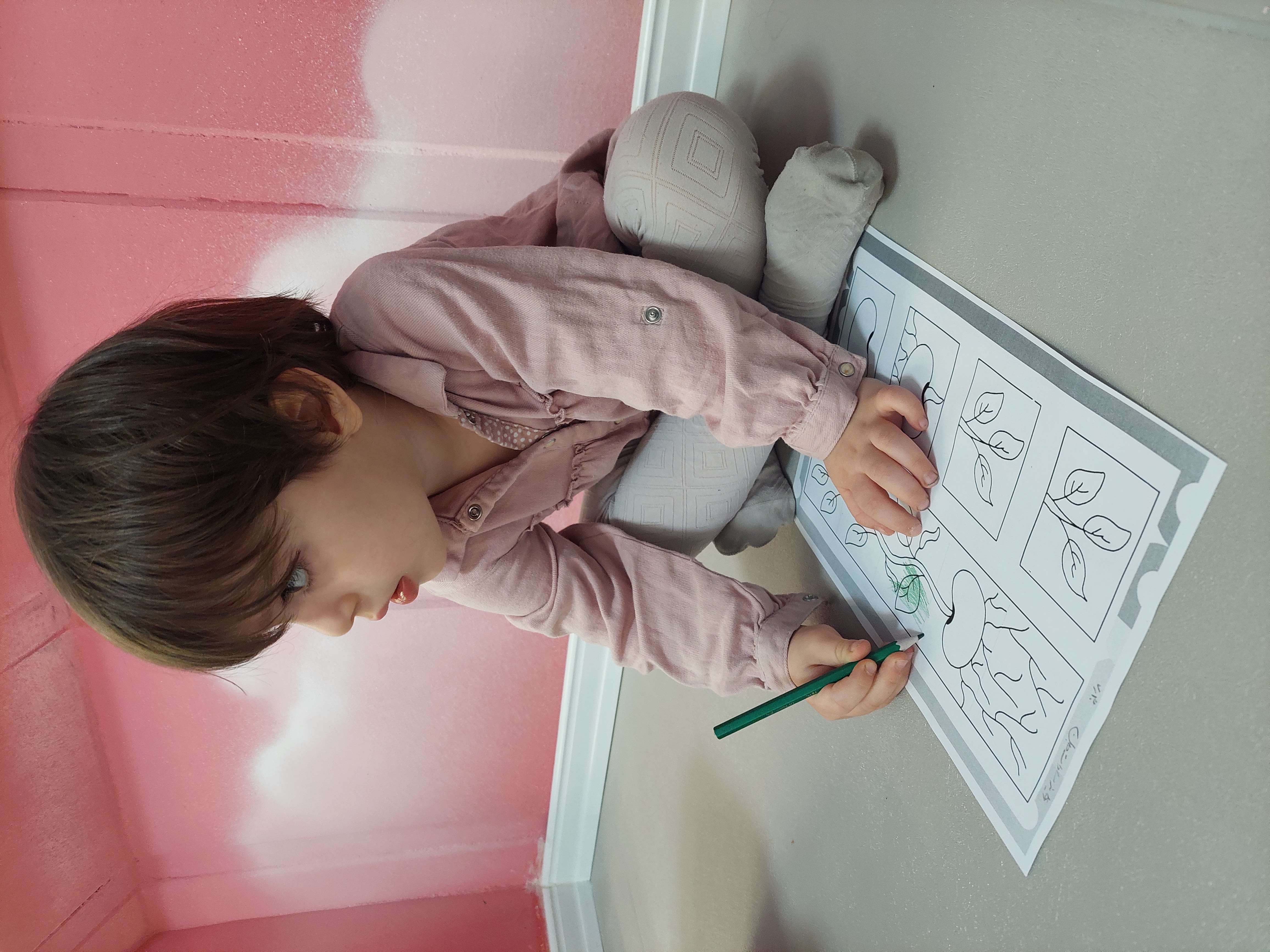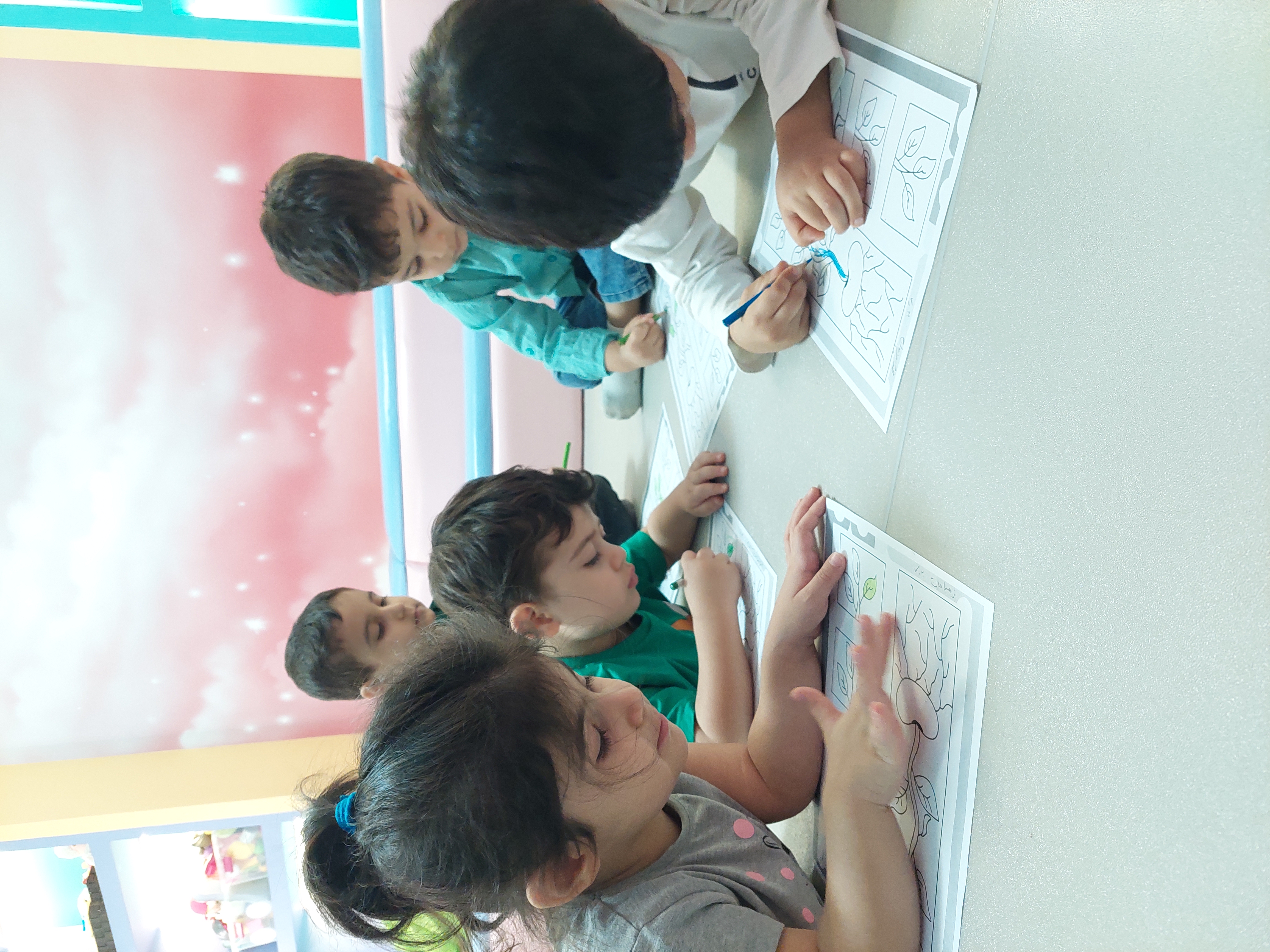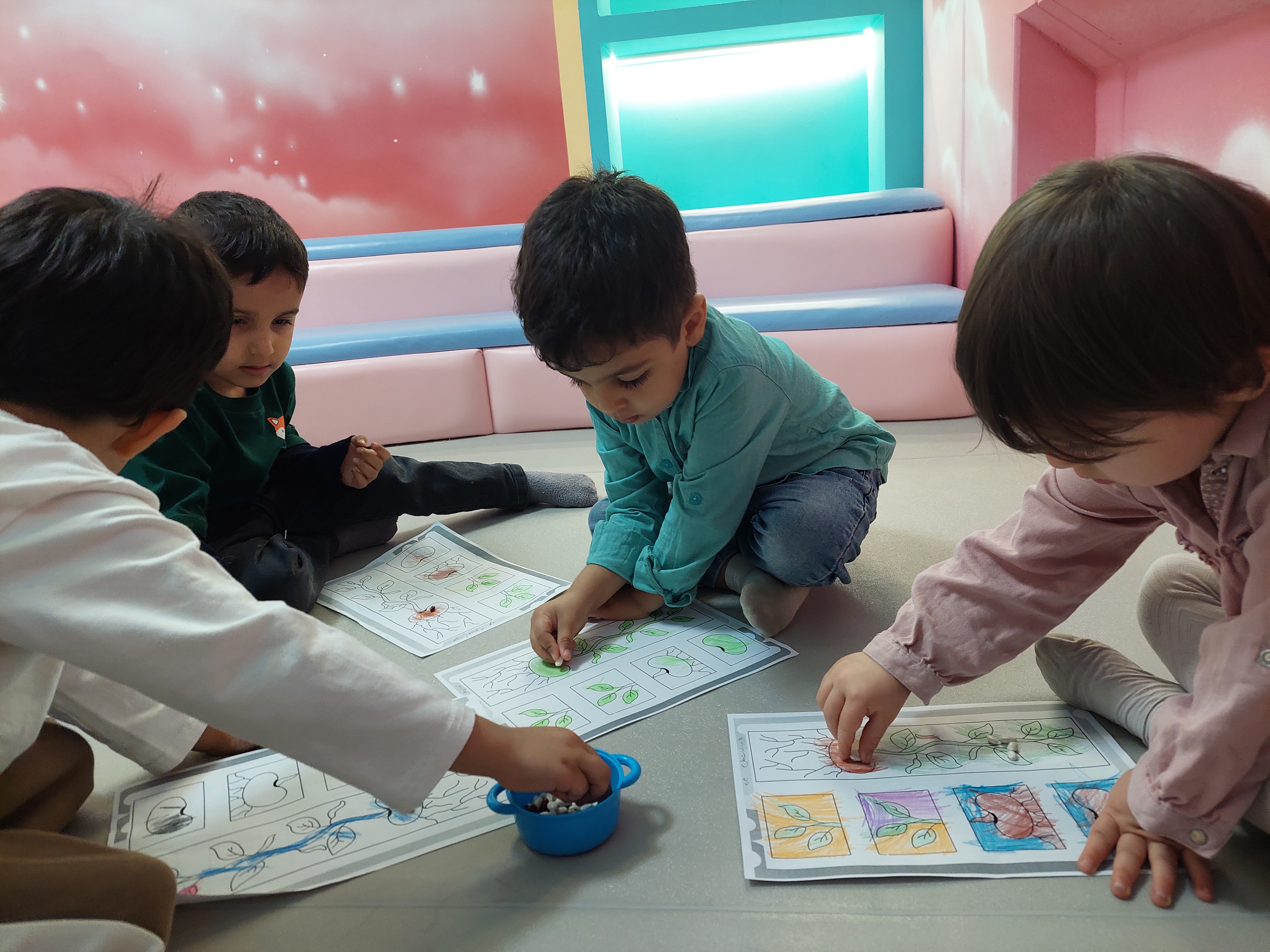 بعد رفتیم سراغ فعالیت پژوهشمون که درمورد رشد لوبیا بود، ابتدا کاربرگ مربوطه رنگ آمیزی شد سپس دانه های لوبیا را به صورت کلاژ بر روی لوبیاهای کاربرگ چسباندیم🌱