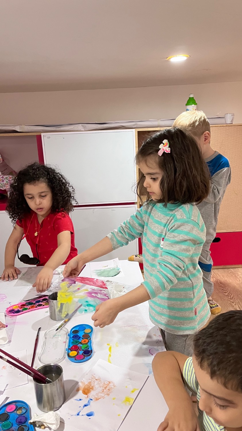 ایستگاه بعدی دنیای رنگ بود که با حضور خاله ملینای هنرمند انجام شد و یه چاپ با طلق بی رنگ انجام دادیم🖌️