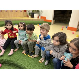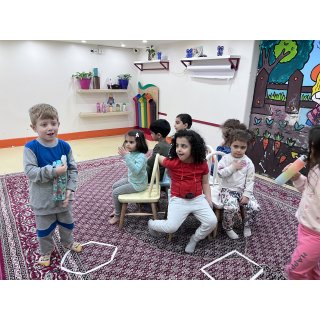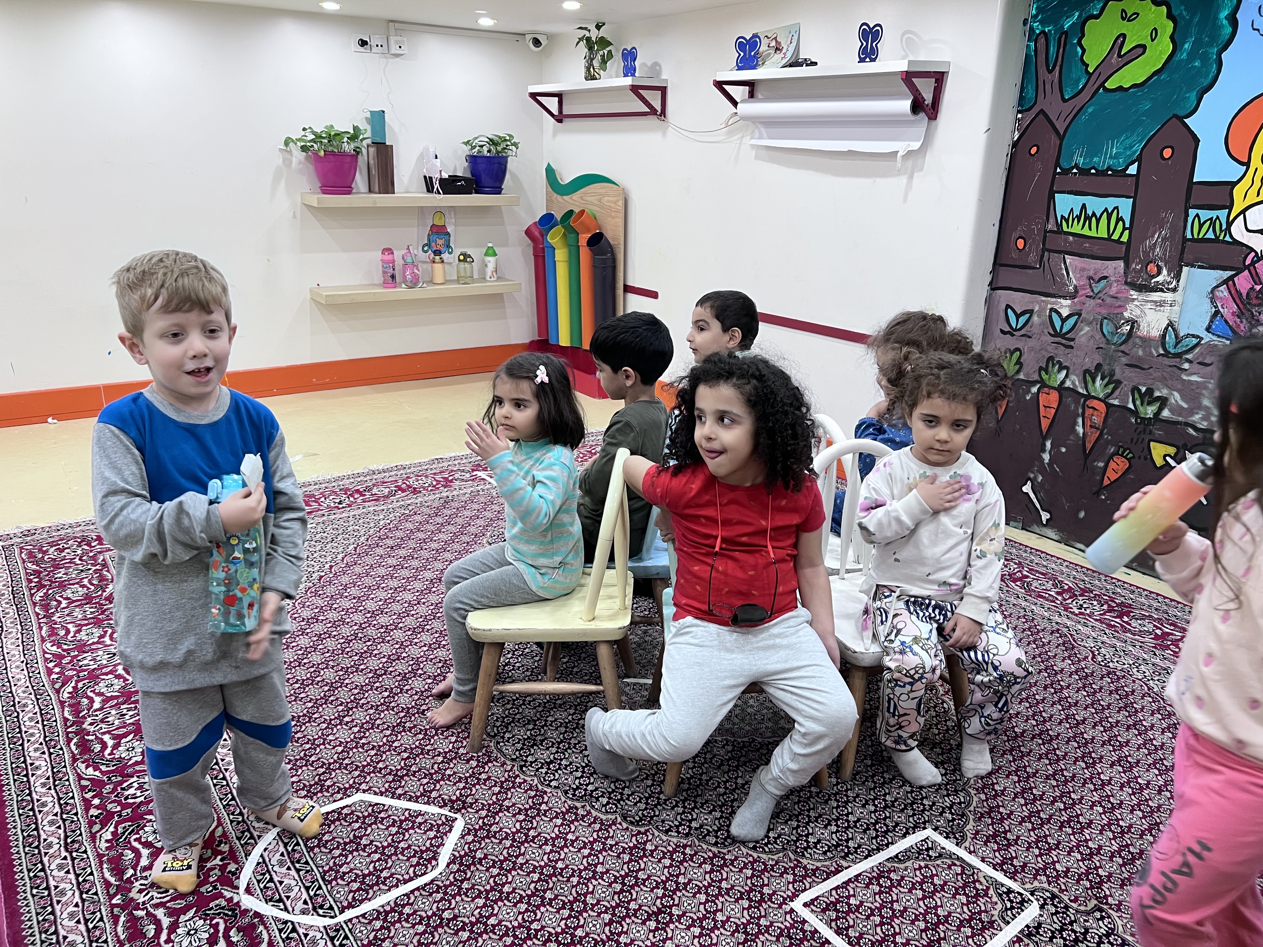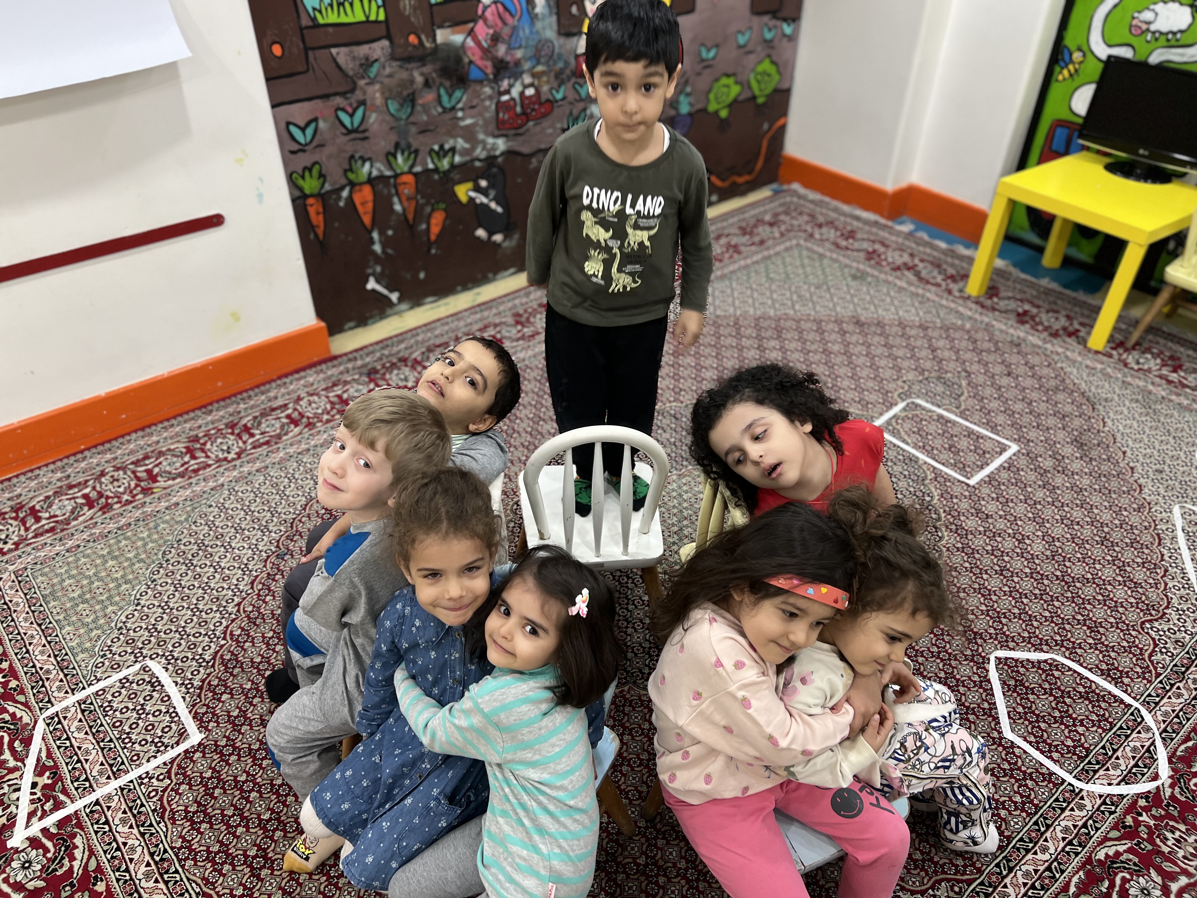 ایستگاه مهارت های زندگی صندلی بازی کردیم ولی با این تفاوت که باید به دوستاشون جا میدادن و مهربونی میکردن ⛳️