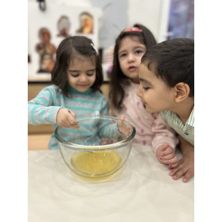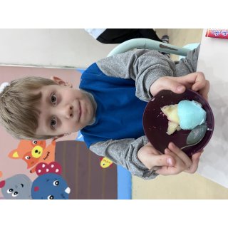 که امروز باهم ژله بستنی خوشمزه درست کردیم و گذاشتیم یخچال تا ببنده 🥣