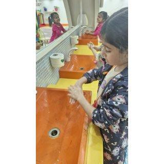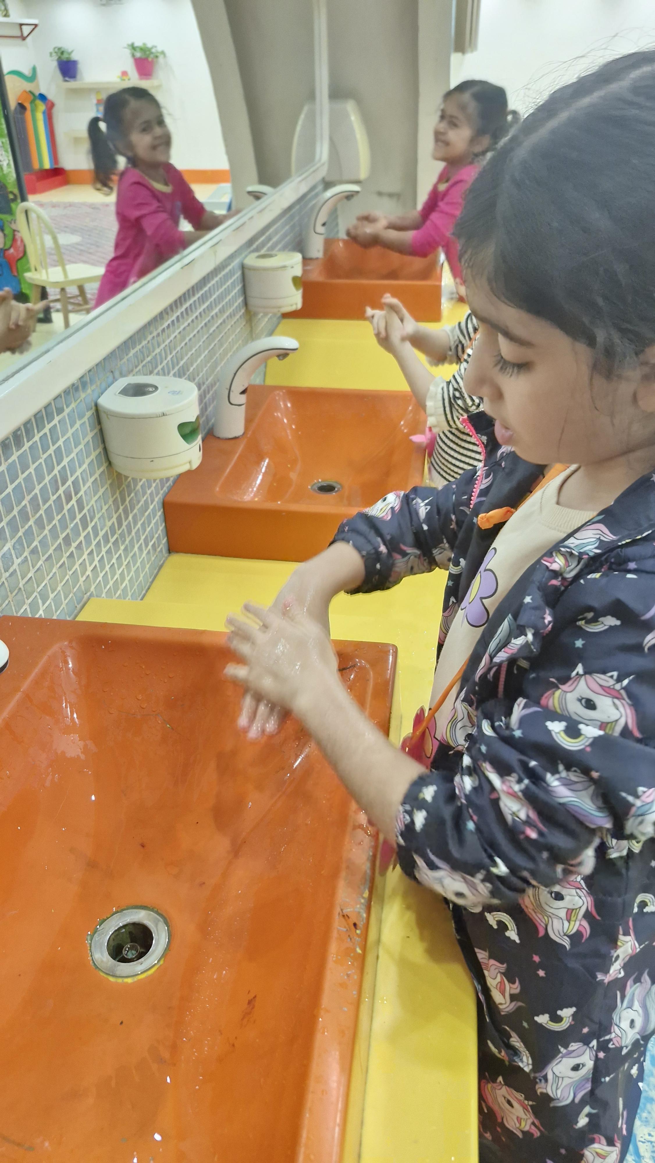 🌸کلاس بعدی کاپوچین بازی کردیم و نحوه درست دست شستن را یاد گرفتیم و جلوی خاله دست هایمان را شستیم تا اگر ایرادی دارد برطرف شود و برای ناهار تمیز باشد✨