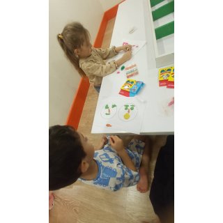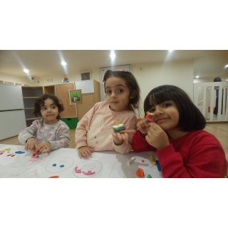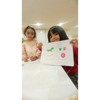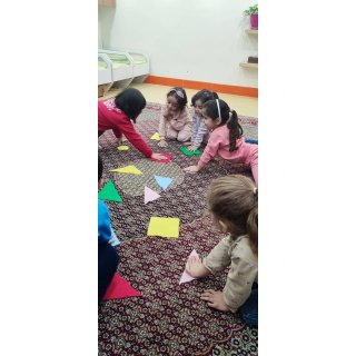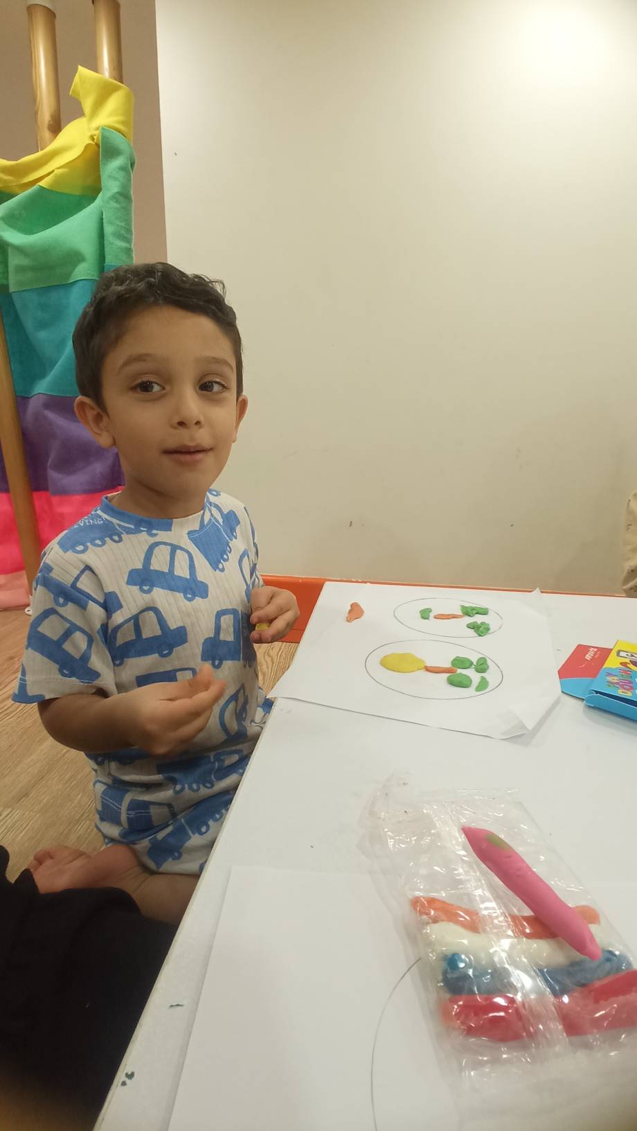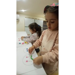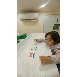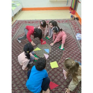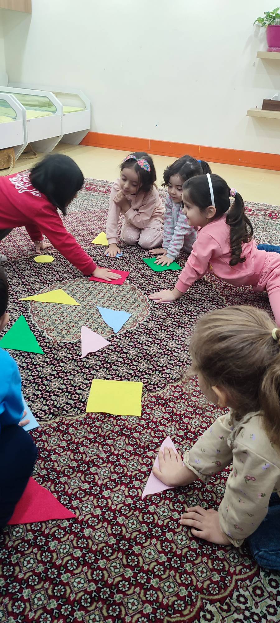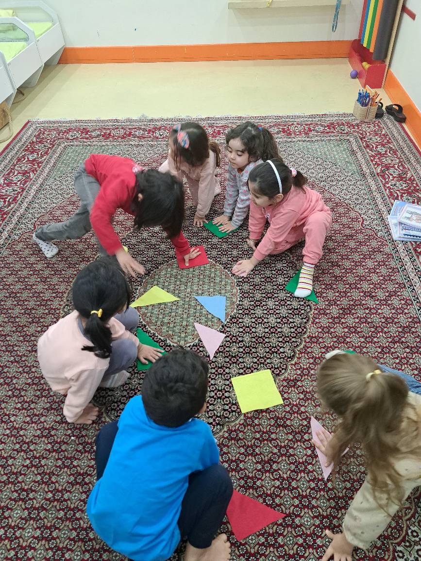 سپس با اشکال هندسی و رنگ ها بازی کردیم تا دقت و تمرکز افرایش پیدا کنه.