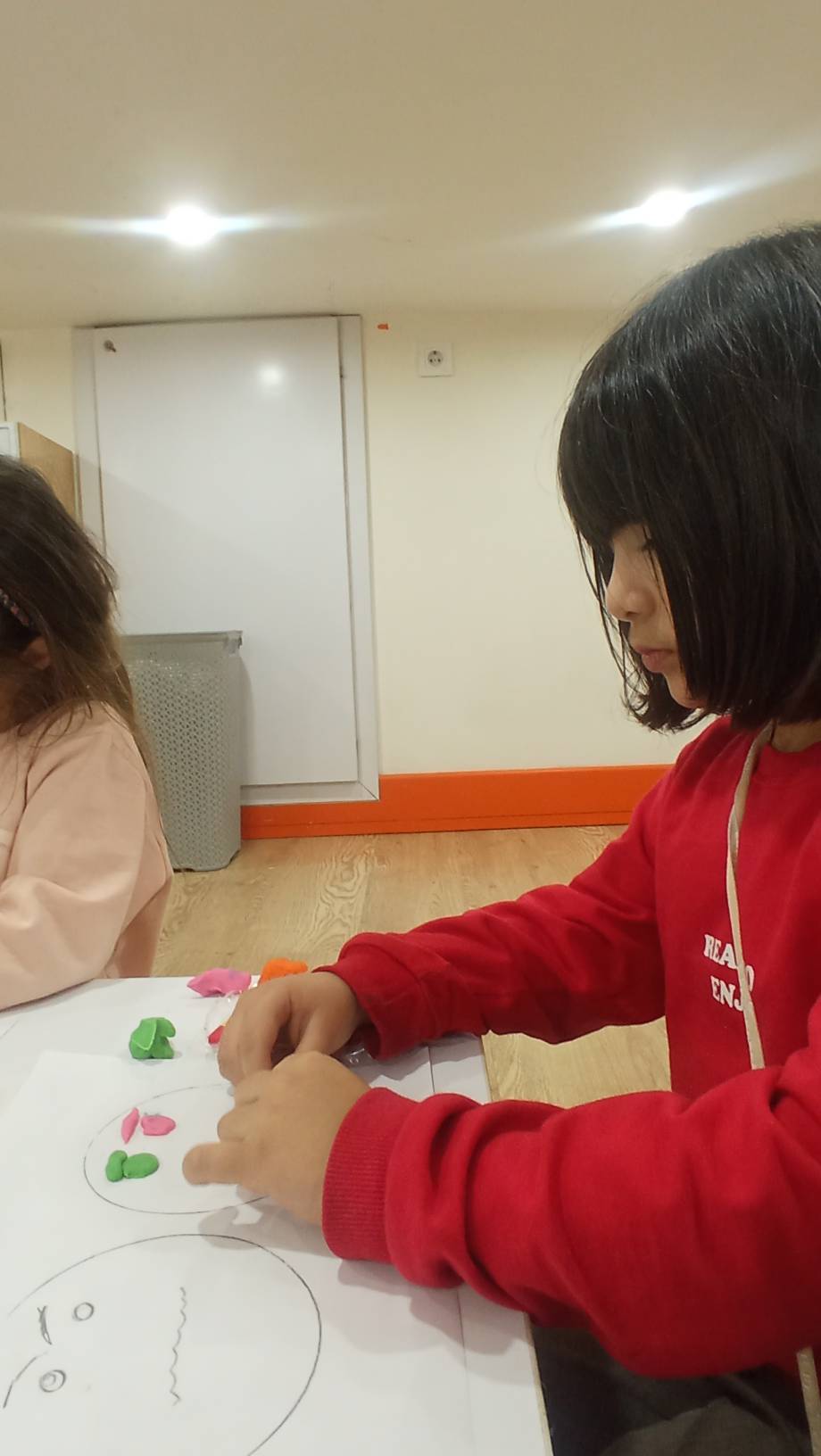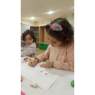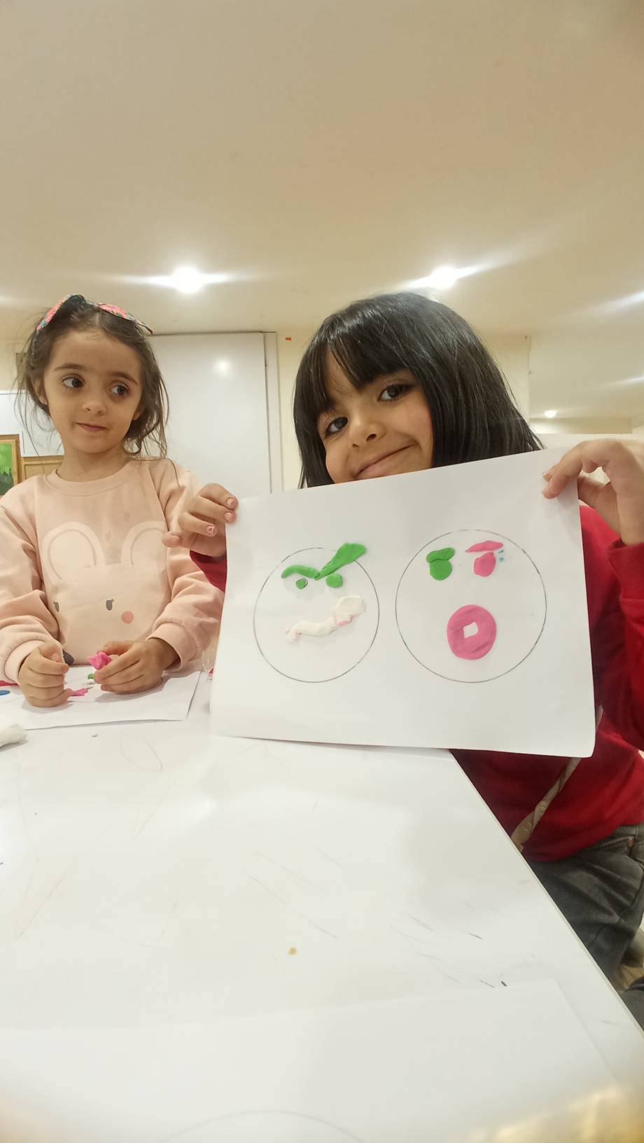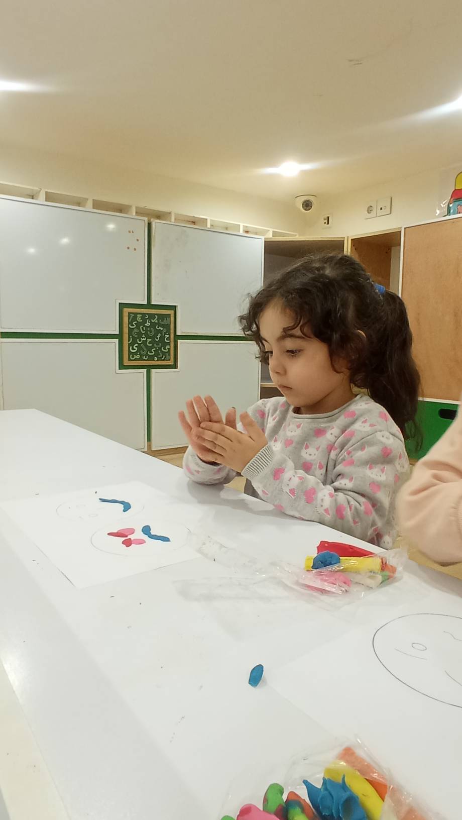 حالا که خوب انرژی گرفتیم وقت این بود که با خمیر های رنگی صورتک های احساسات ( شادی ،غم، ترسو خشم) رو درست کنیم .