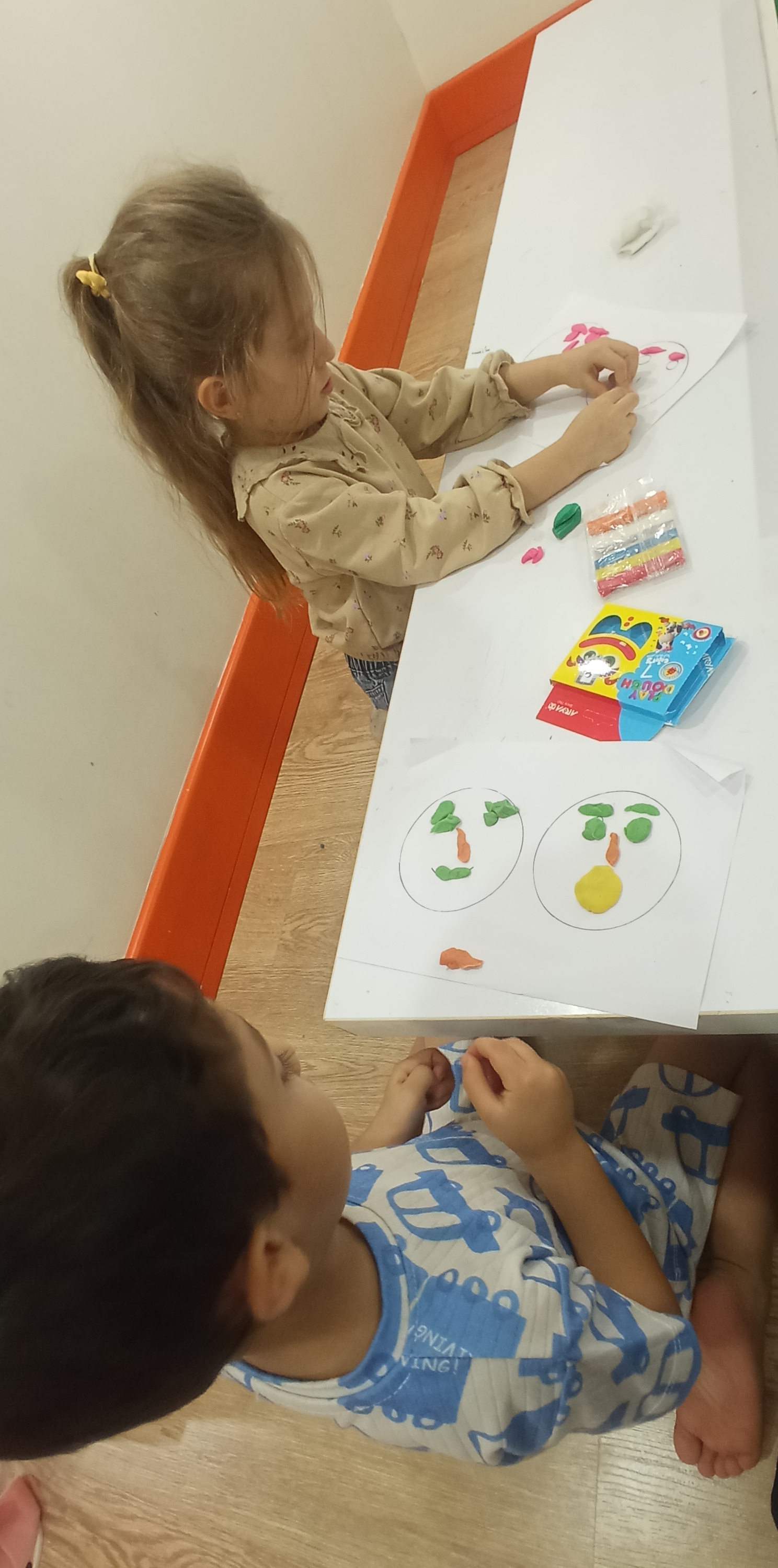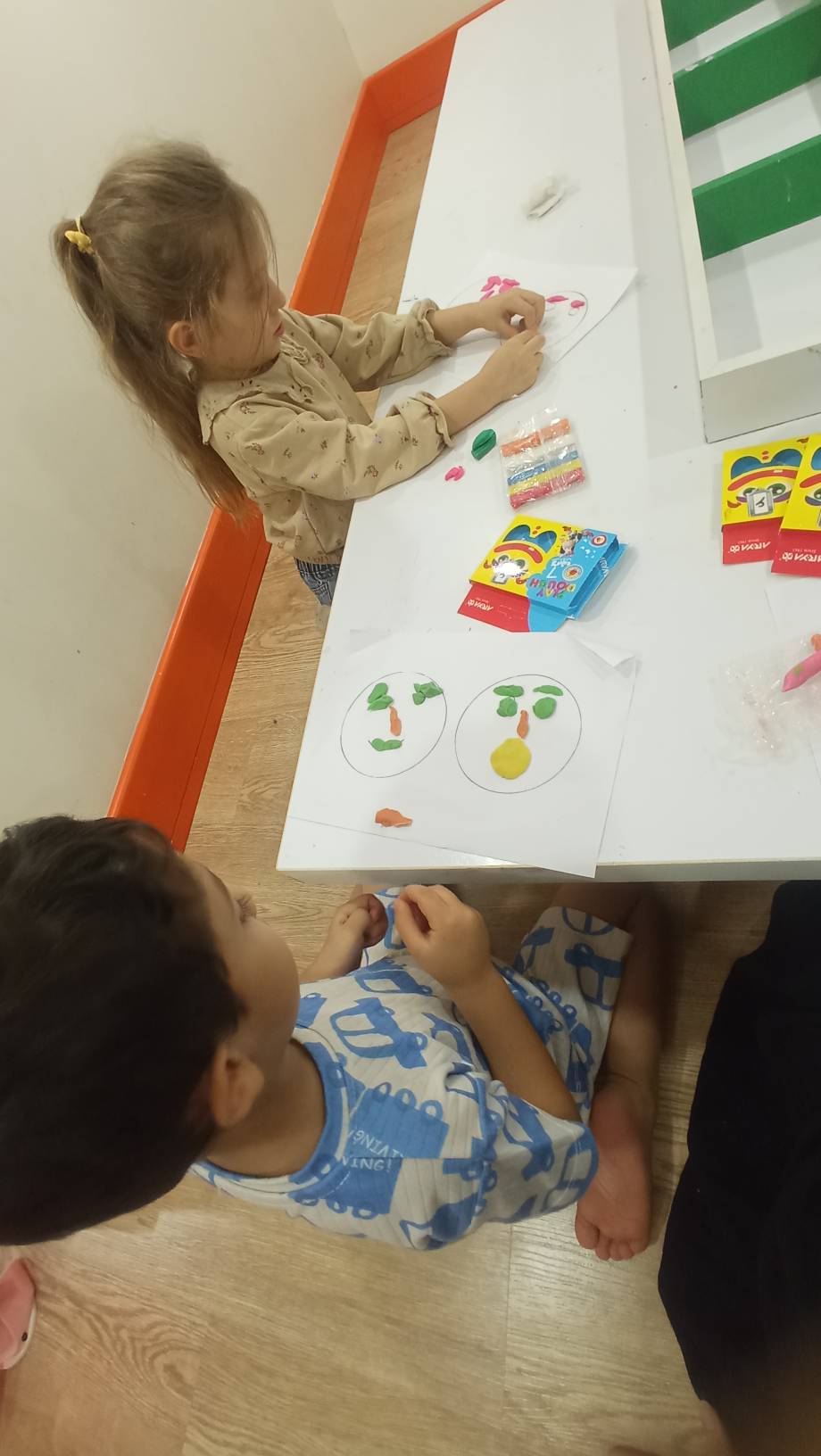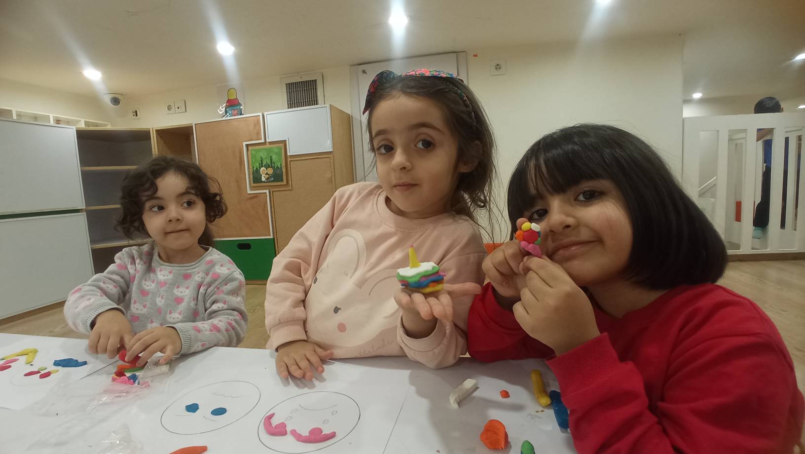 حالا که خوب انرژی گرفتیم وقت این بود که با خمیر های رنگی صورتک های احساسات ( شادی ،غم، ترسو خشم) رو درست کنیم .