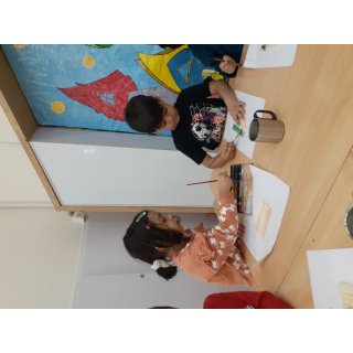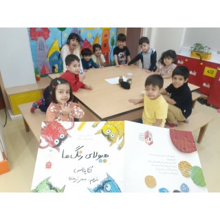 سخن وری : کتاب ( یک توپ برای همه) ،خوانده شد، در مورد چیزایی که در خانه ی کودک برای همه مون هست گفت وگو کردیم و نقاشی کردیم.