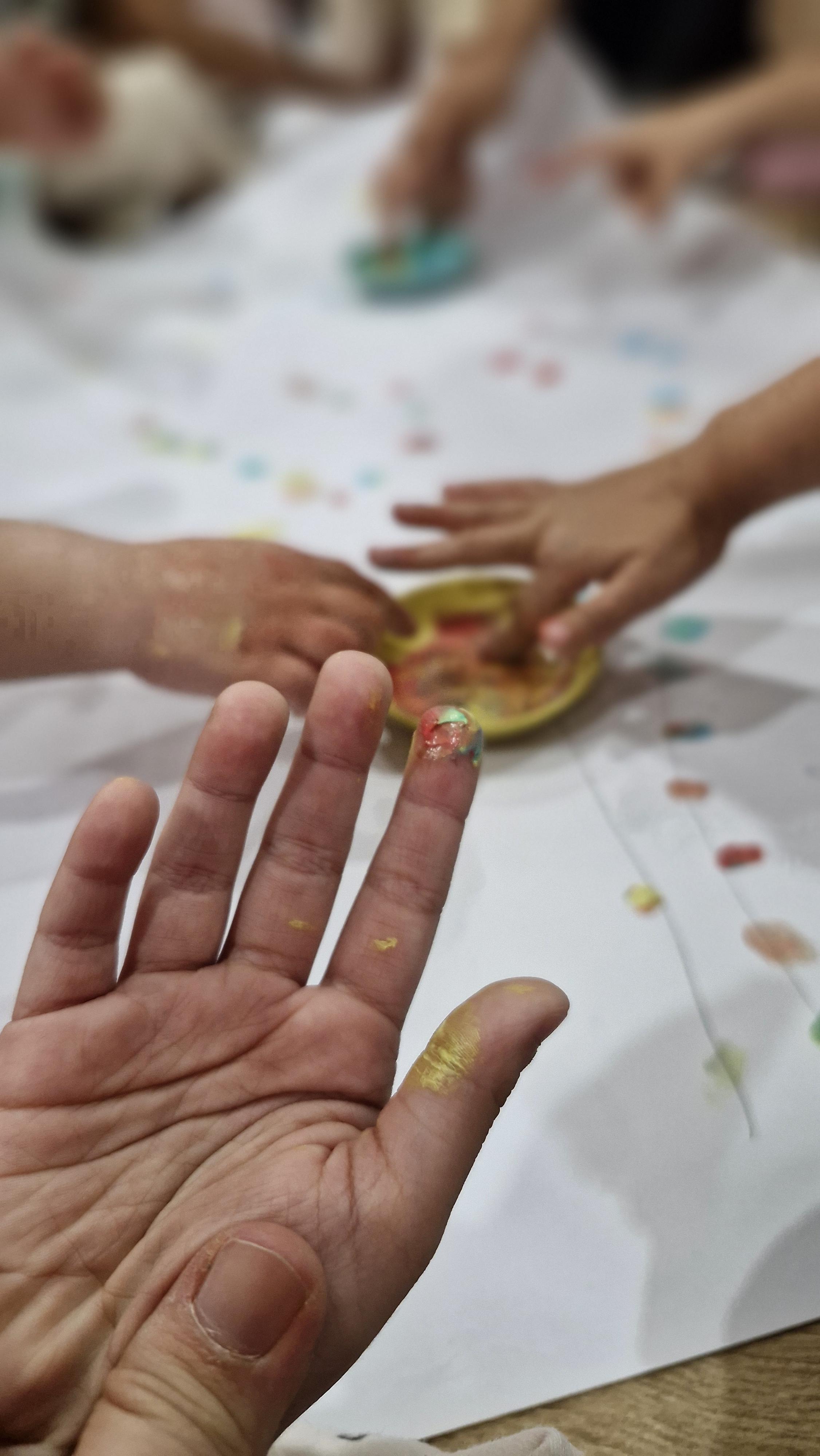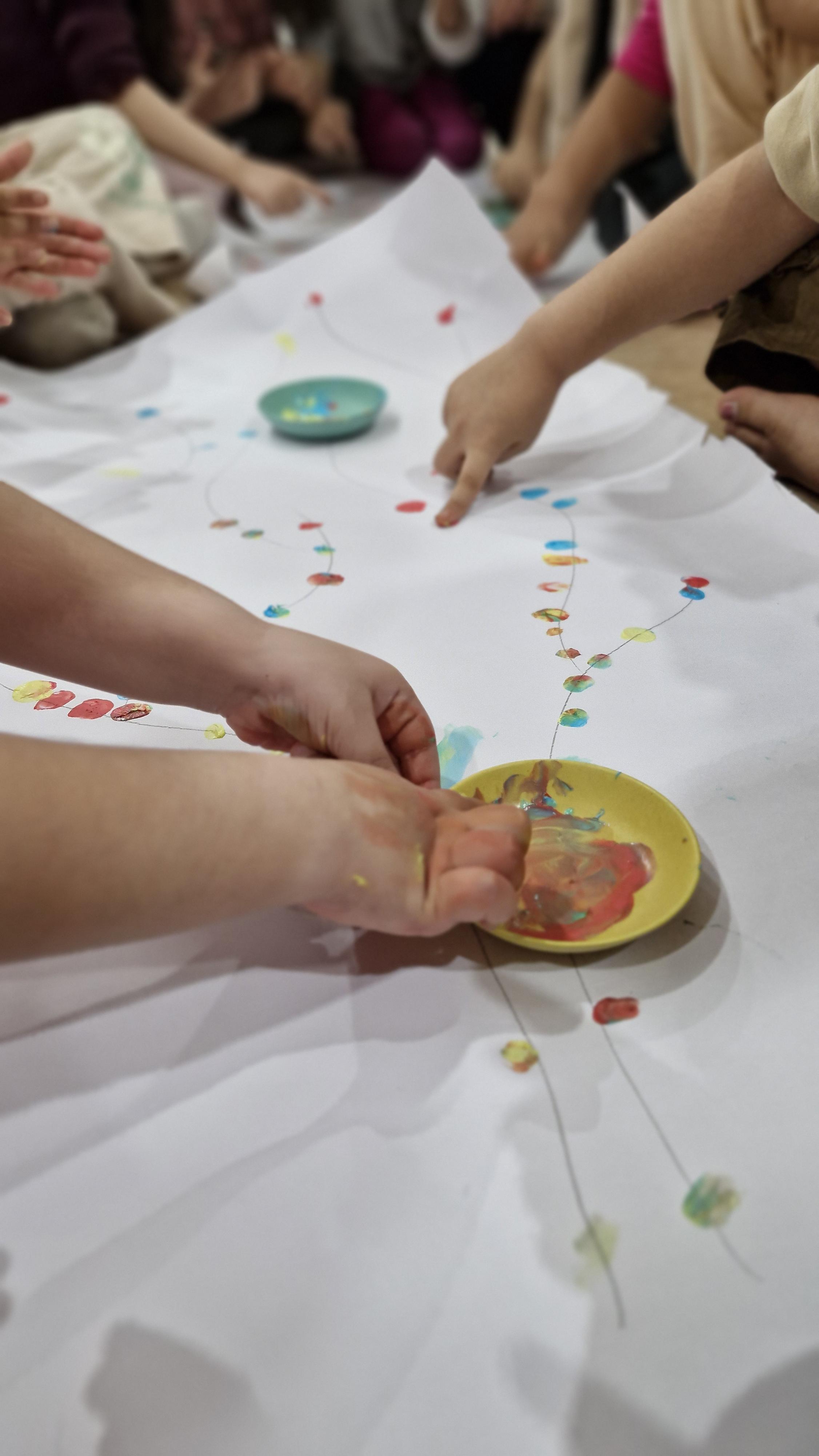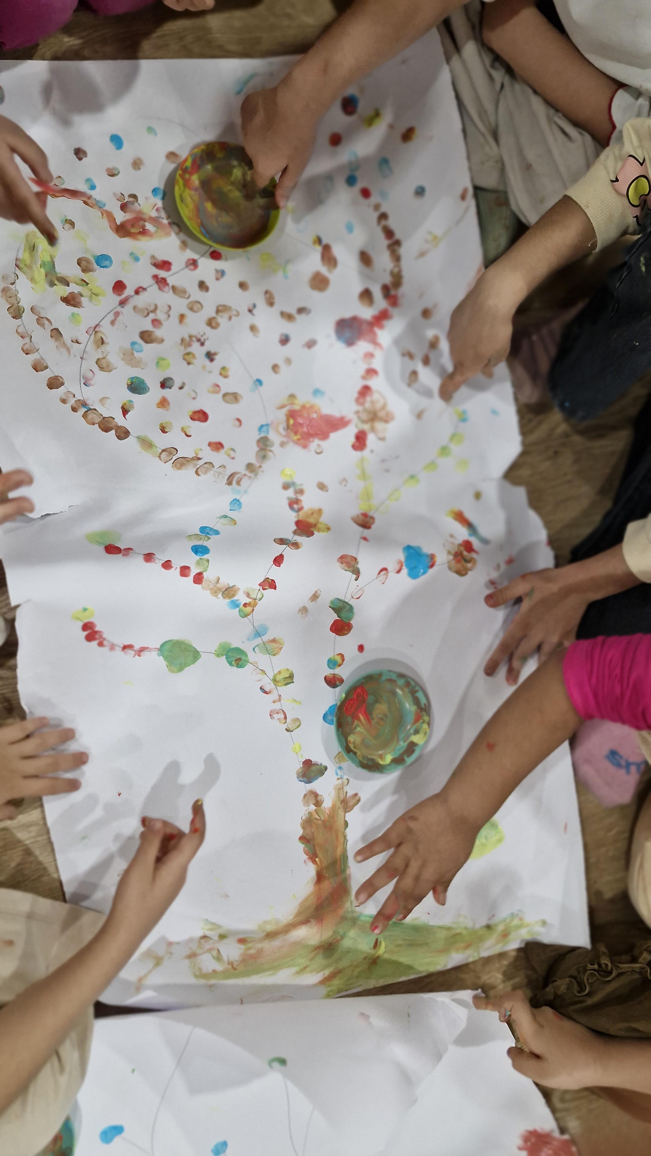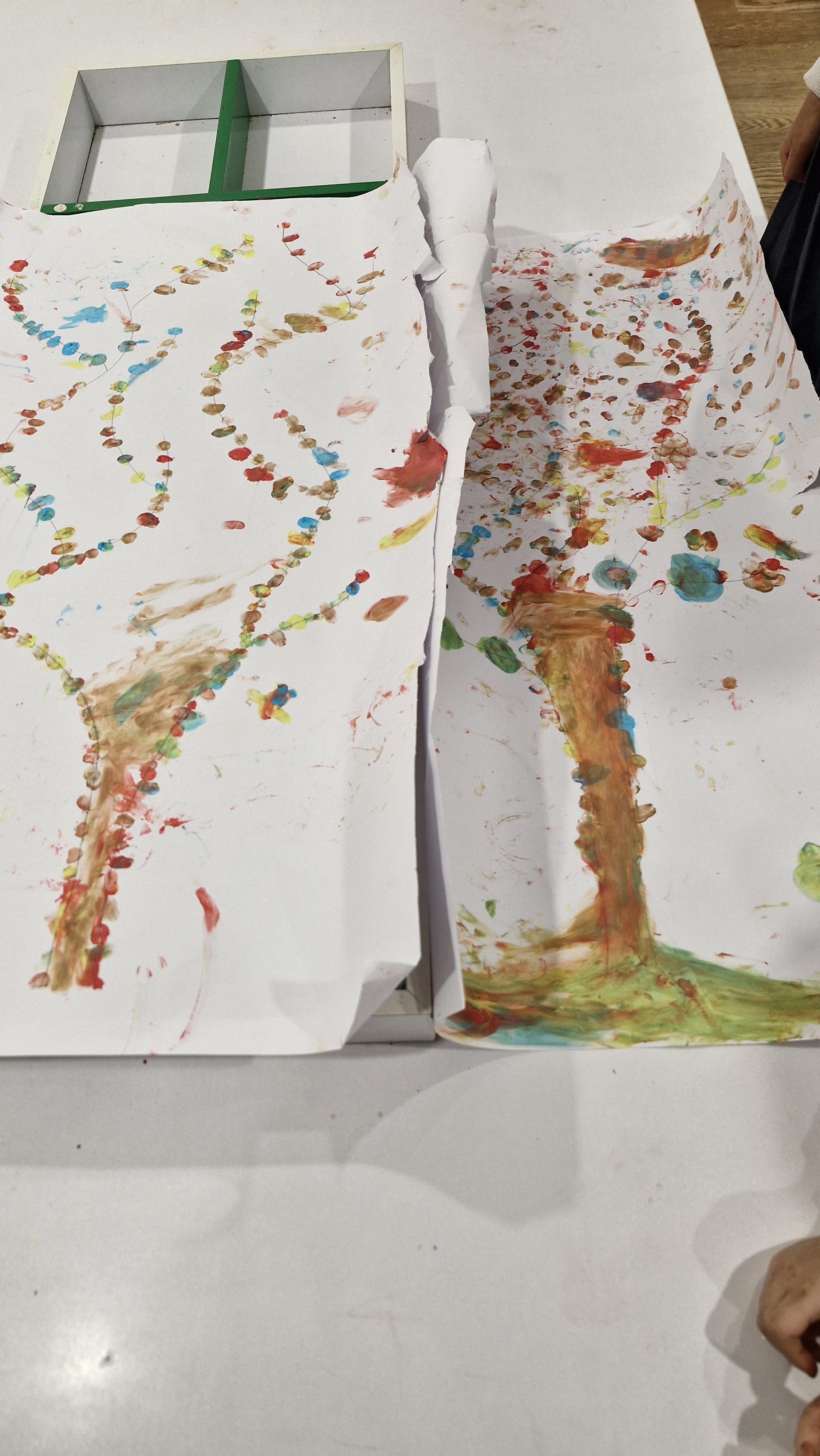 🌸 در این کلاس متوجه شدیم هر فرد اثر انگشت منحصر به فرد خود را دارد و ما با رنگ انگشتی برگهای درخت را کشیدیم🍂🍁
