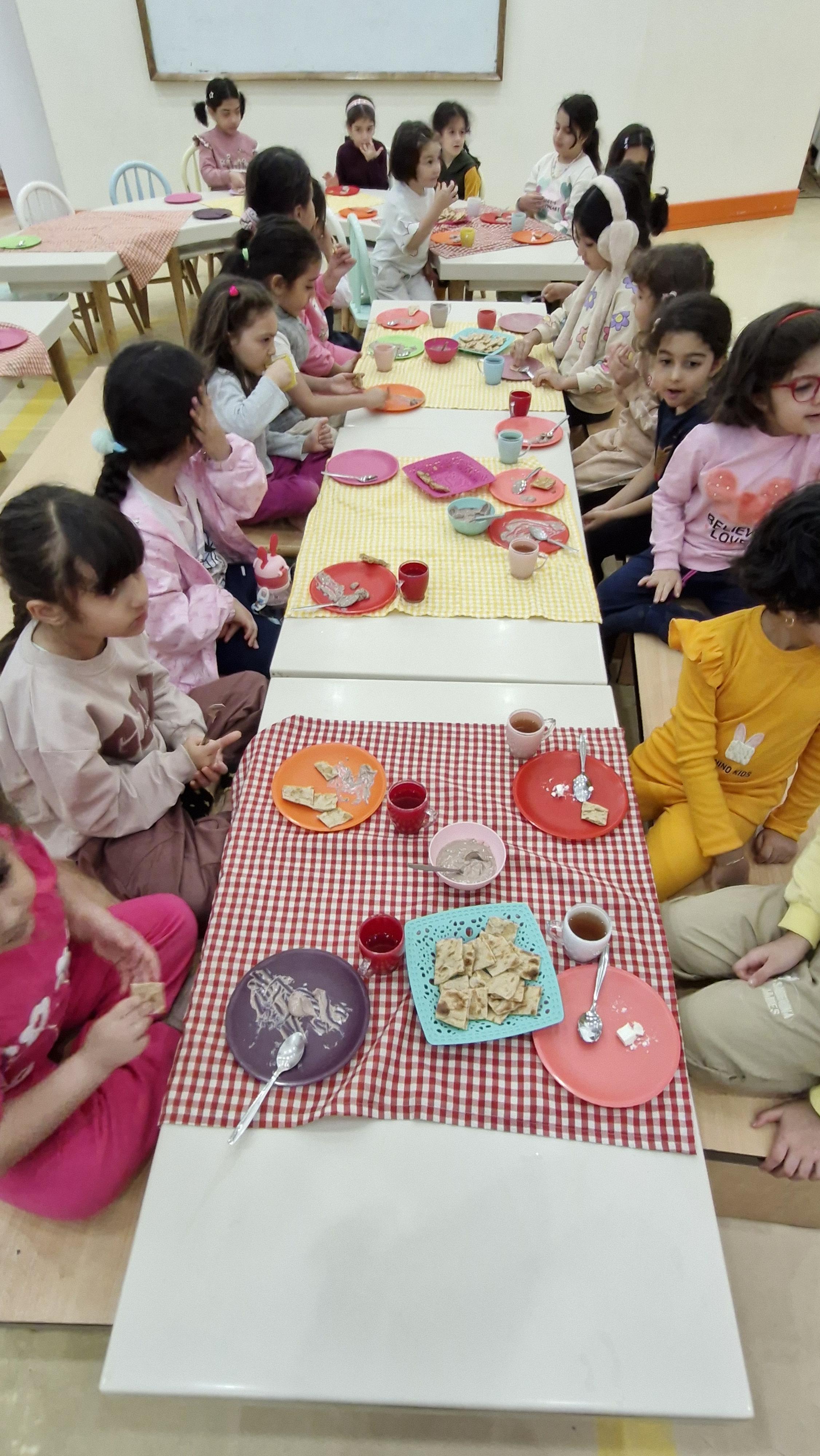 نون و خامه شکلاتی و چایی... بچهها حسابی خوردن و انرژی گرفتن 😋