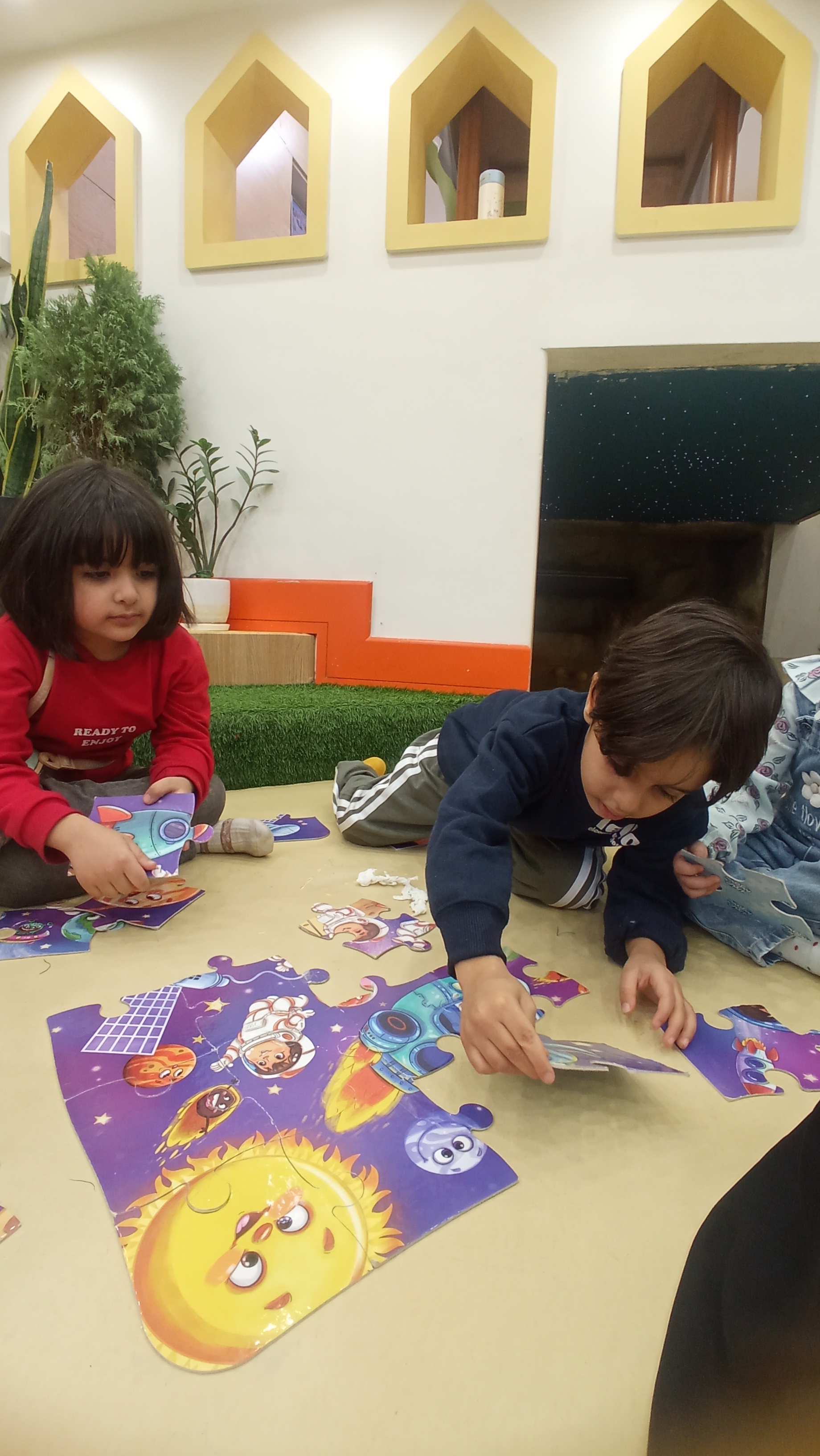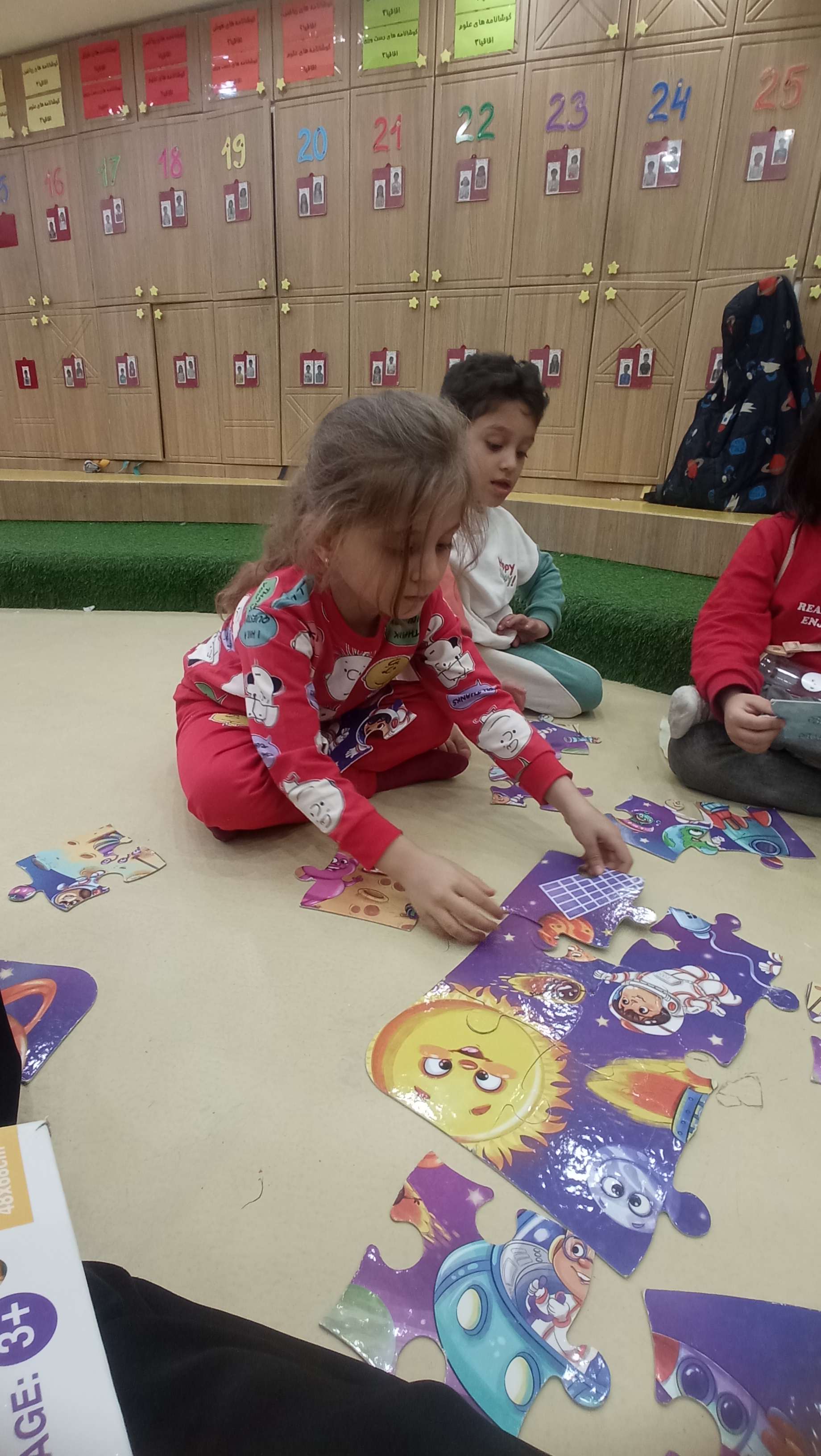 حالا وقتشه که پازل فضانورد بازیگوش رو درست کنیم😁😁🧩🧩بعد پازل وقت توپ بازیهههه🟢🟡🟠