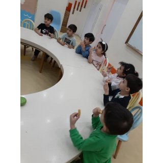 بعد از حضور غیاب و گفتن تاریخ و ایام هفته رفتیم کلاس خاله الهه و به مناسبت ولادت حضرت زینب کلاس پرورشی را برگزار کردیم🎂🍬🎈