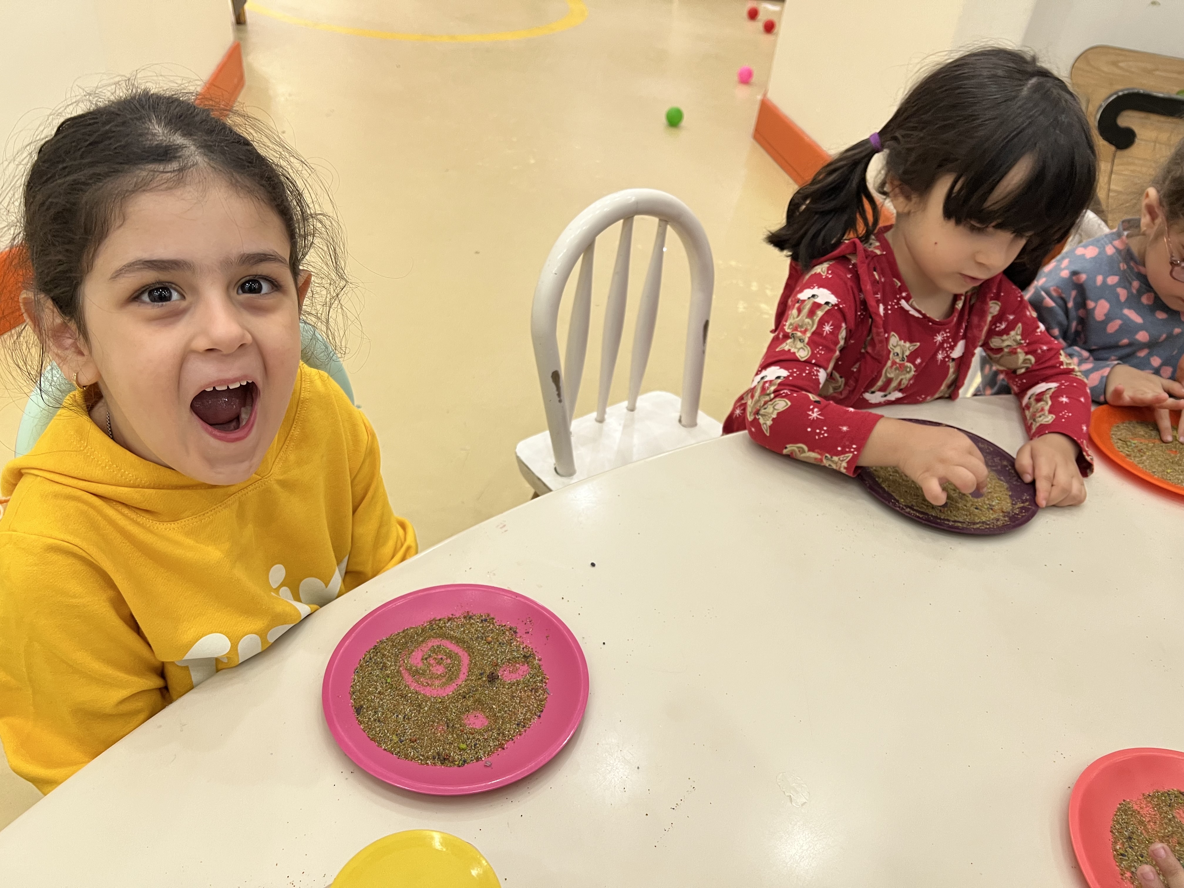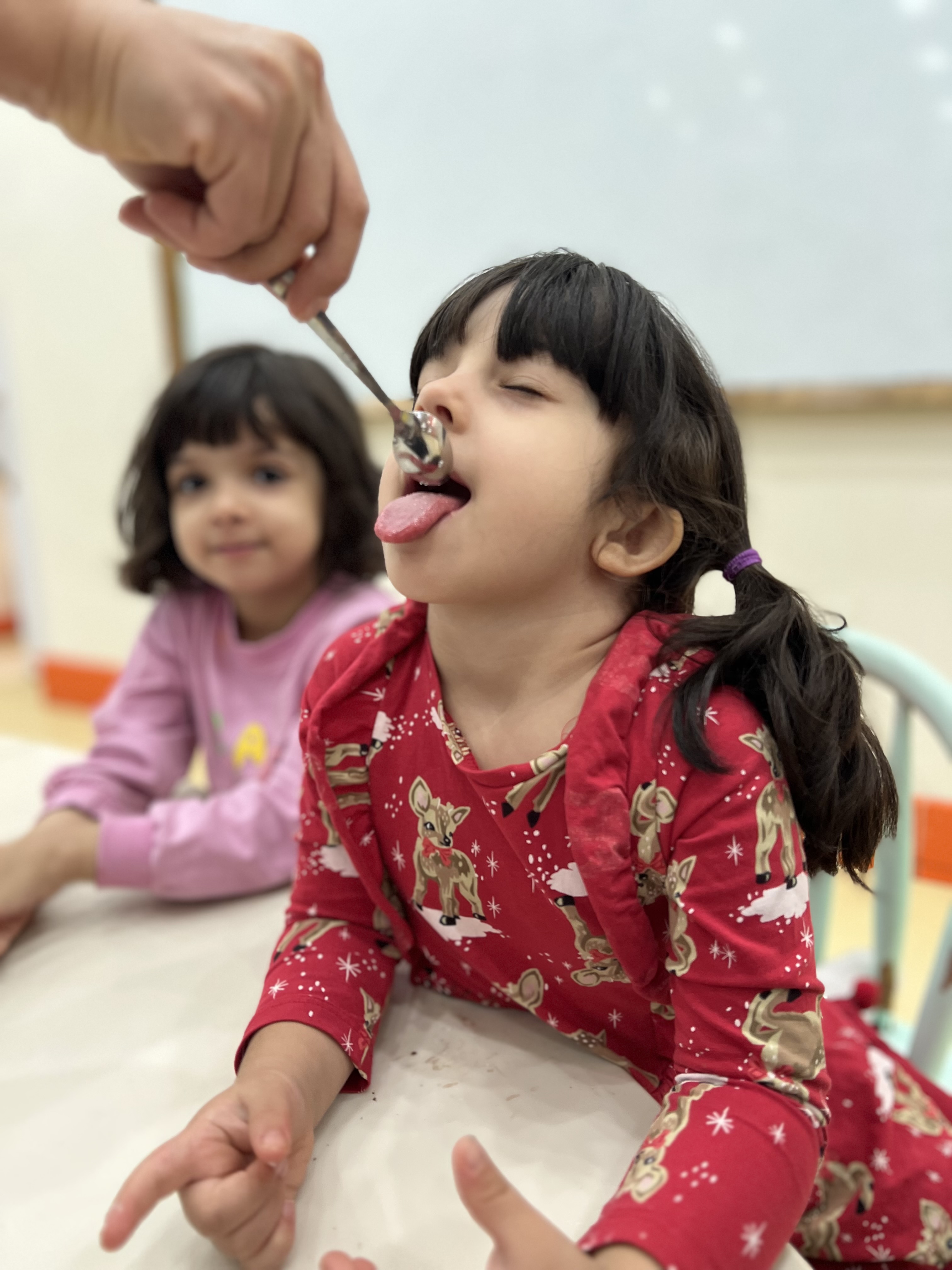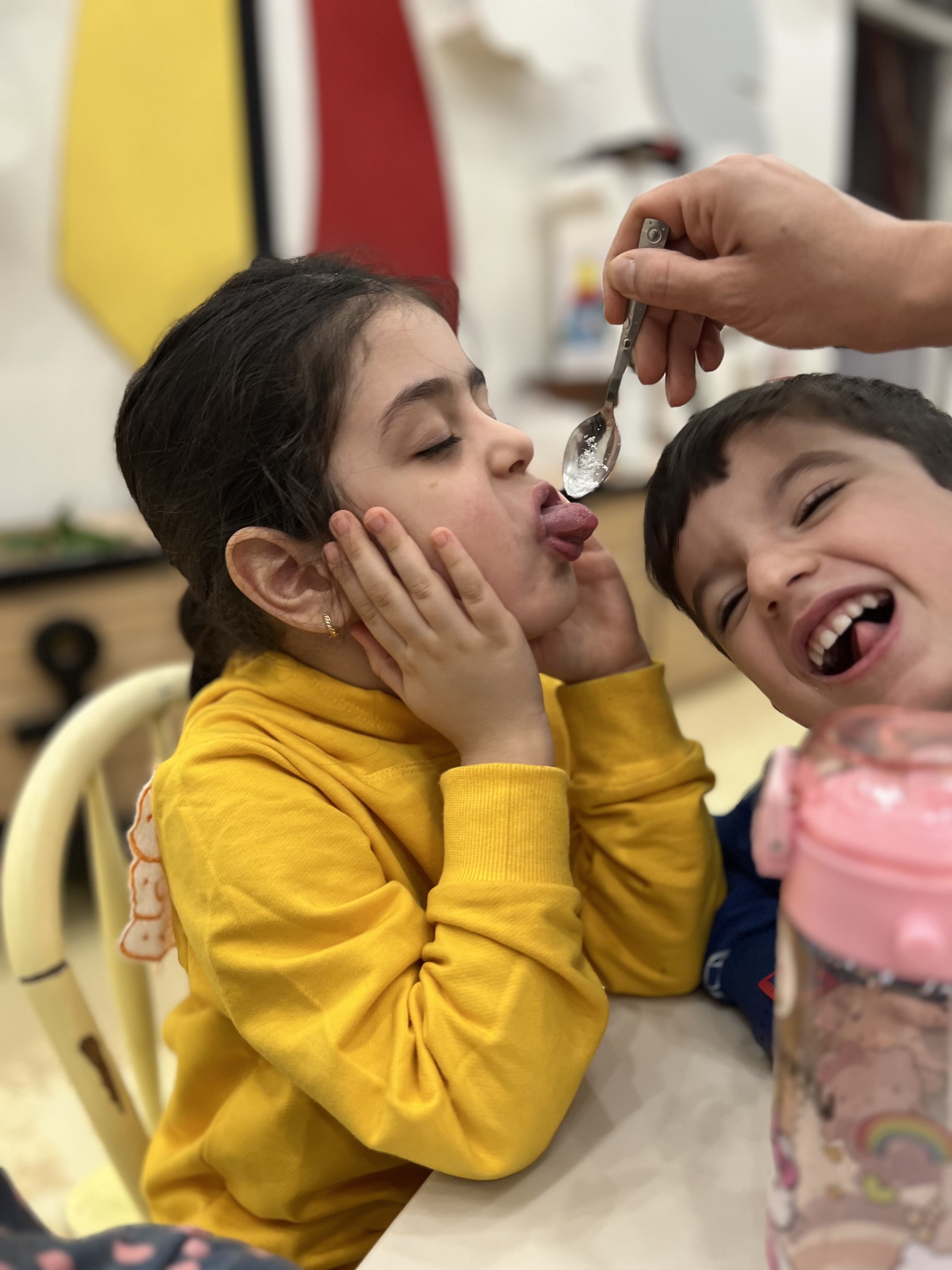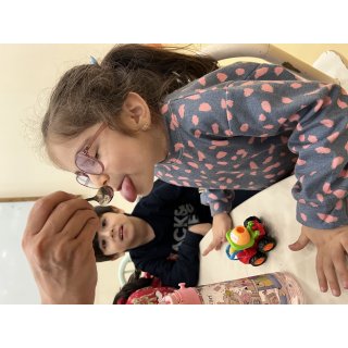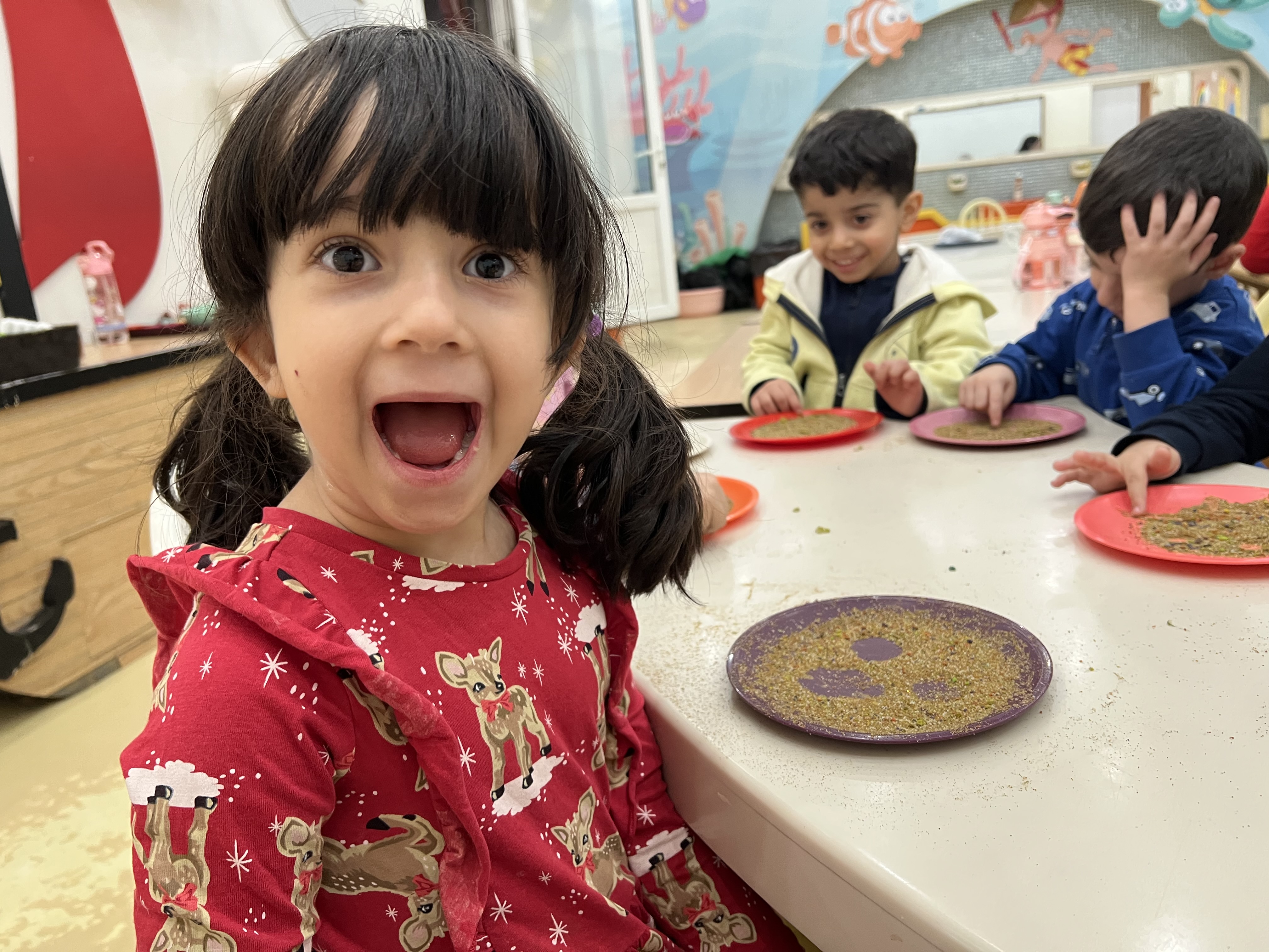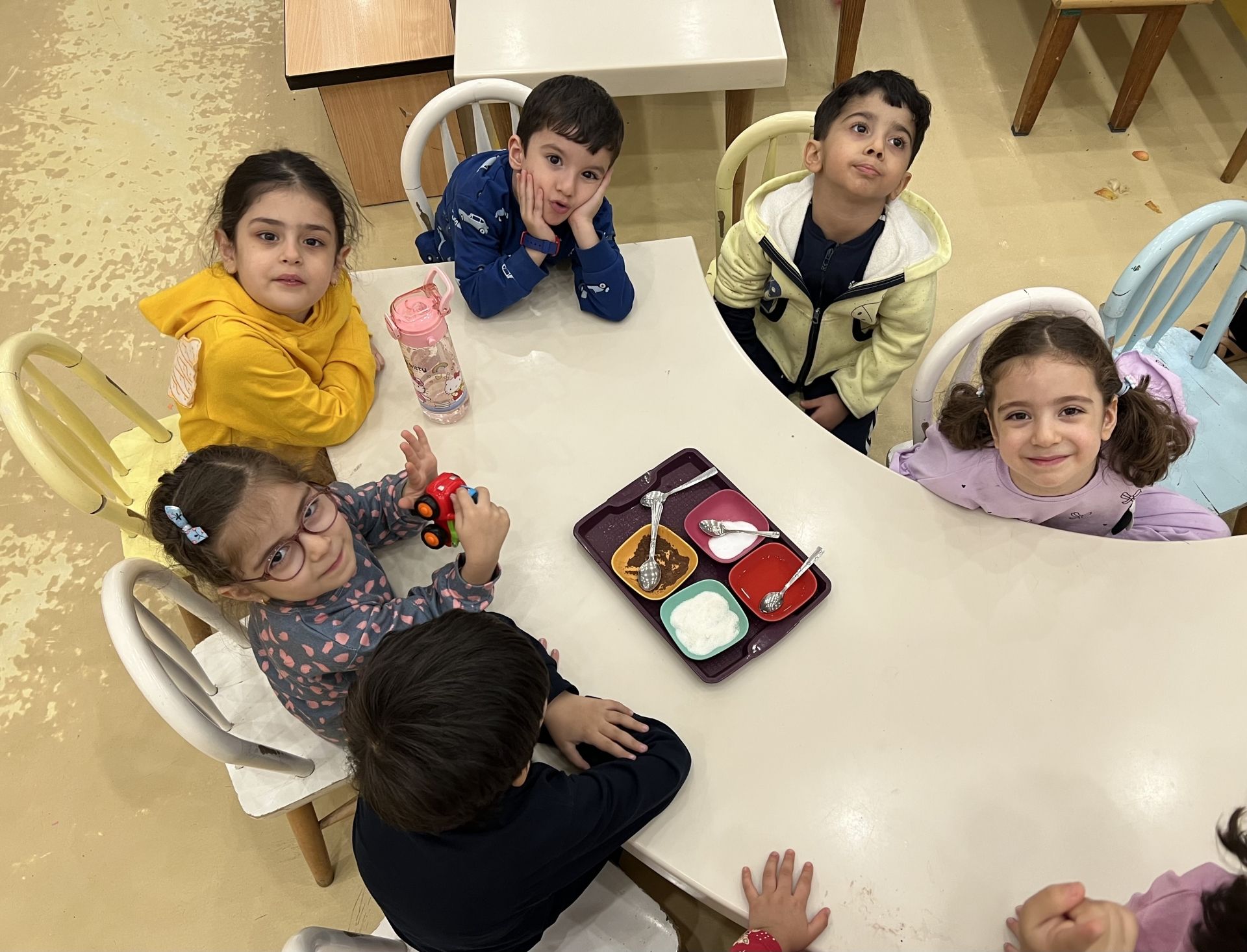 کلاس کاوشگران کوچک که با آزمایش، حس شنوایی🦻🏼 رو شناختیم و با تست یه سری خوراکی با حس چشایی👅 آشنا شدیم و کوشانامه علوم رو کار کردیم.